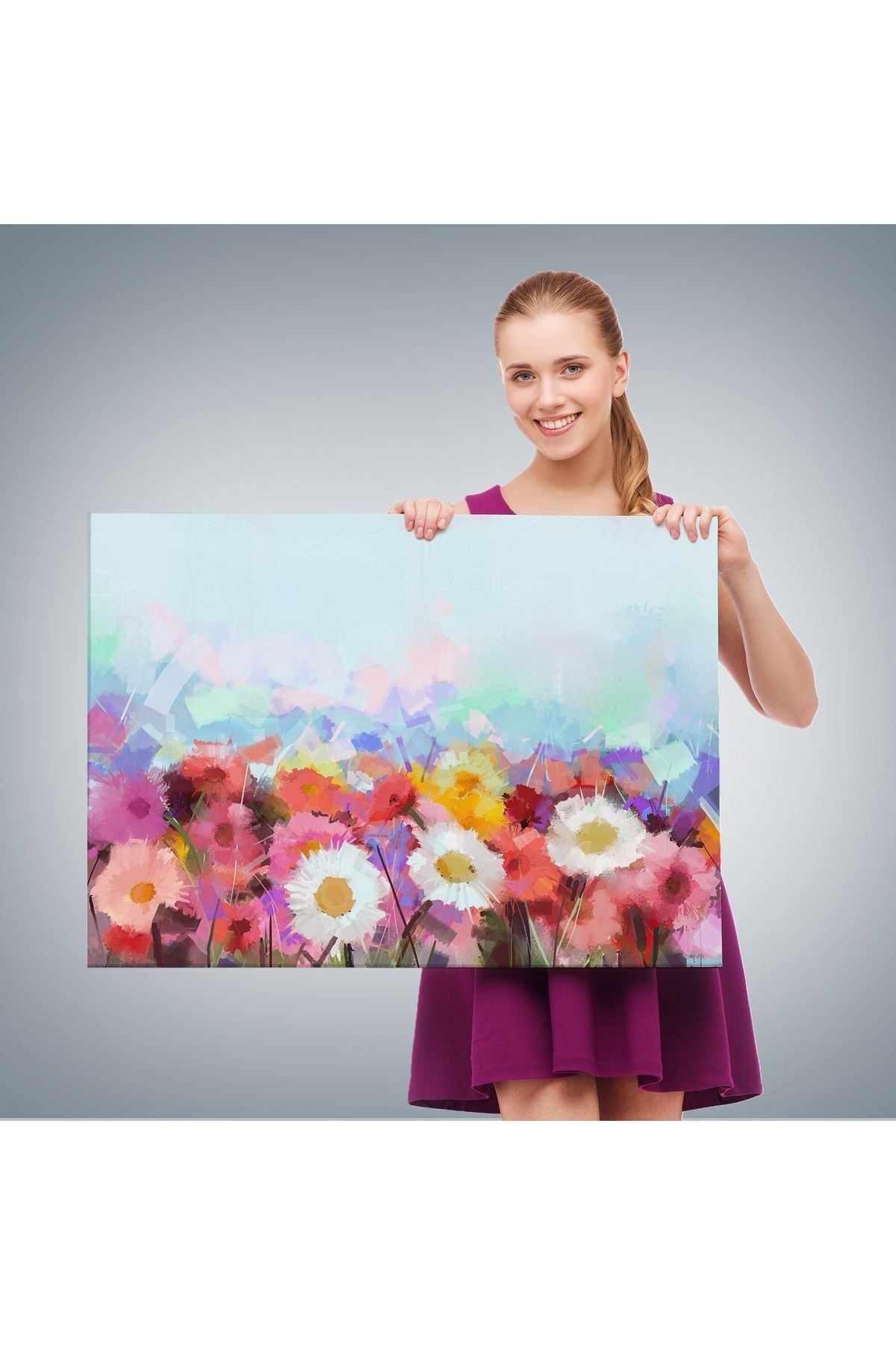 Güzel çiçekler Yağlıboya Görünüm Dekoratif Kanvas Duvar Tablo-3440