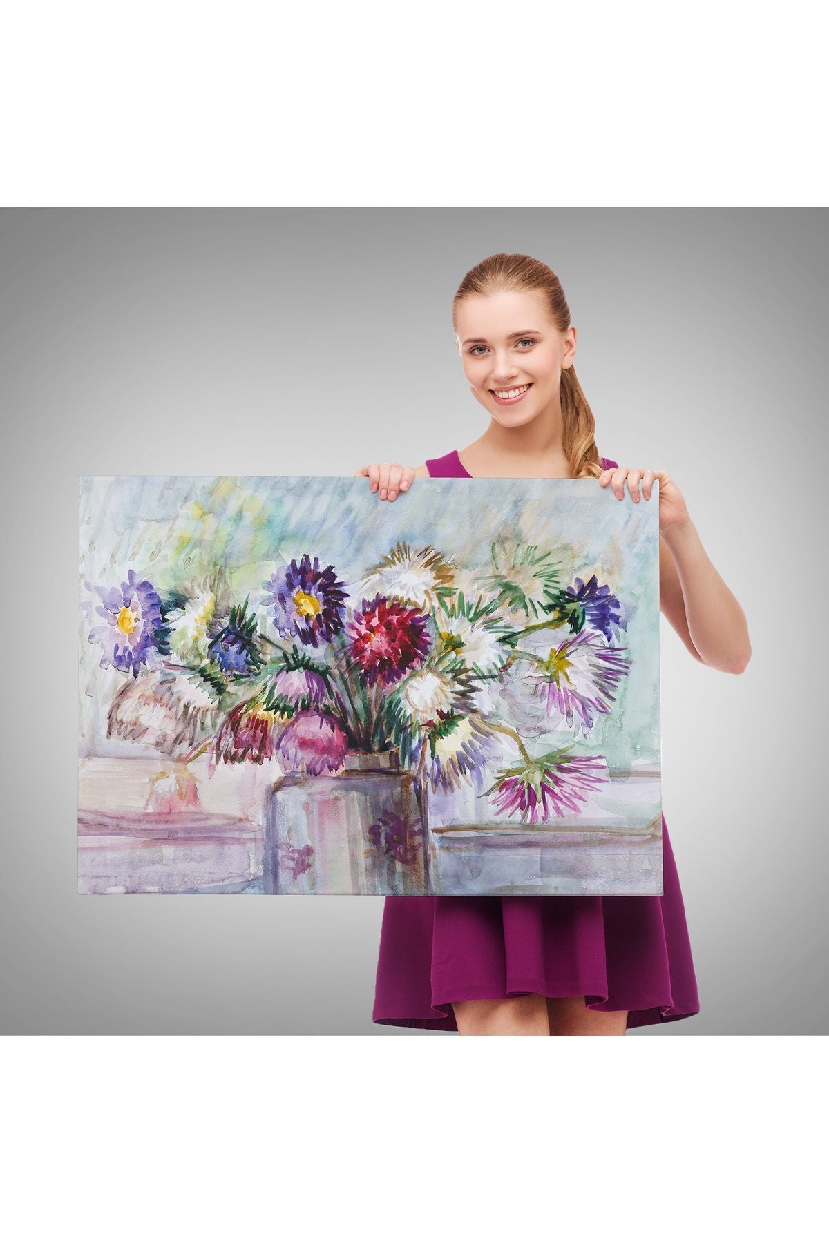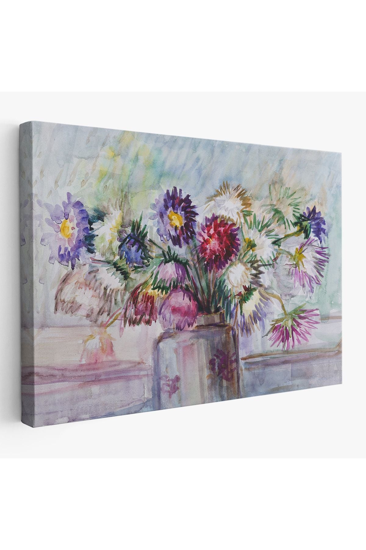 Aster Çiçeği Yağlı Boya Görünümlü Dekoratif Duvar Tablosu-3456