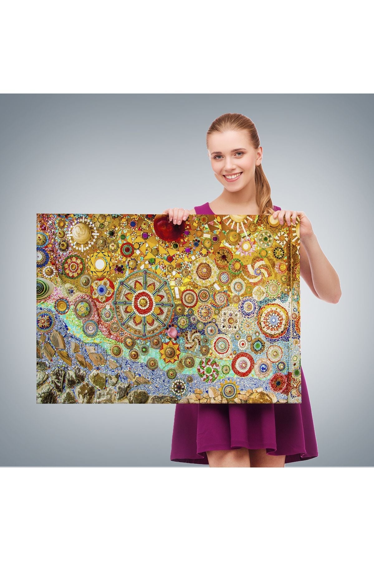 Sanatsal Mozaik Cam Dekoratif Kanvas Duvar Tablosu-3463