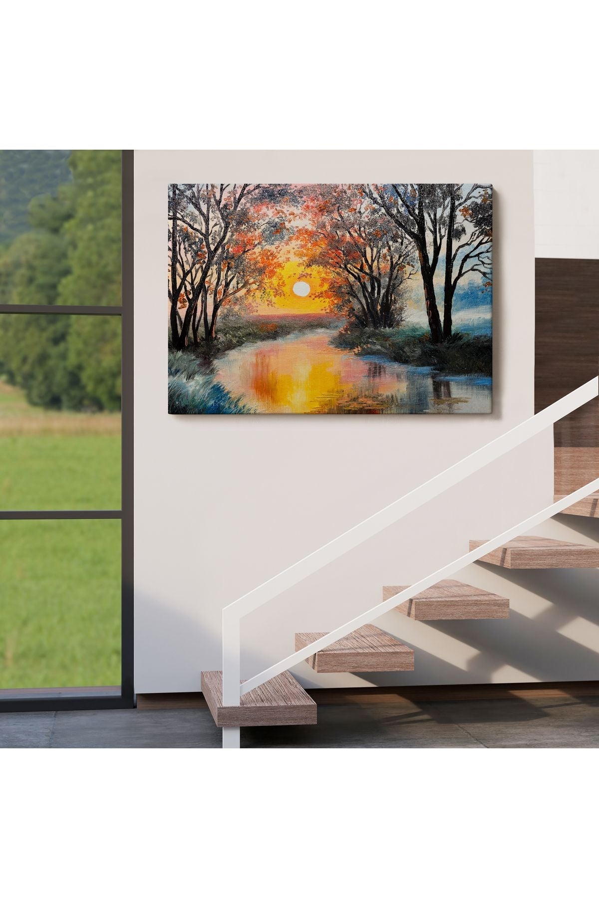 shn st0001 Kış Mevsiminde Karlı Bir Nehir Manzarası Duvar Tablosu-3464