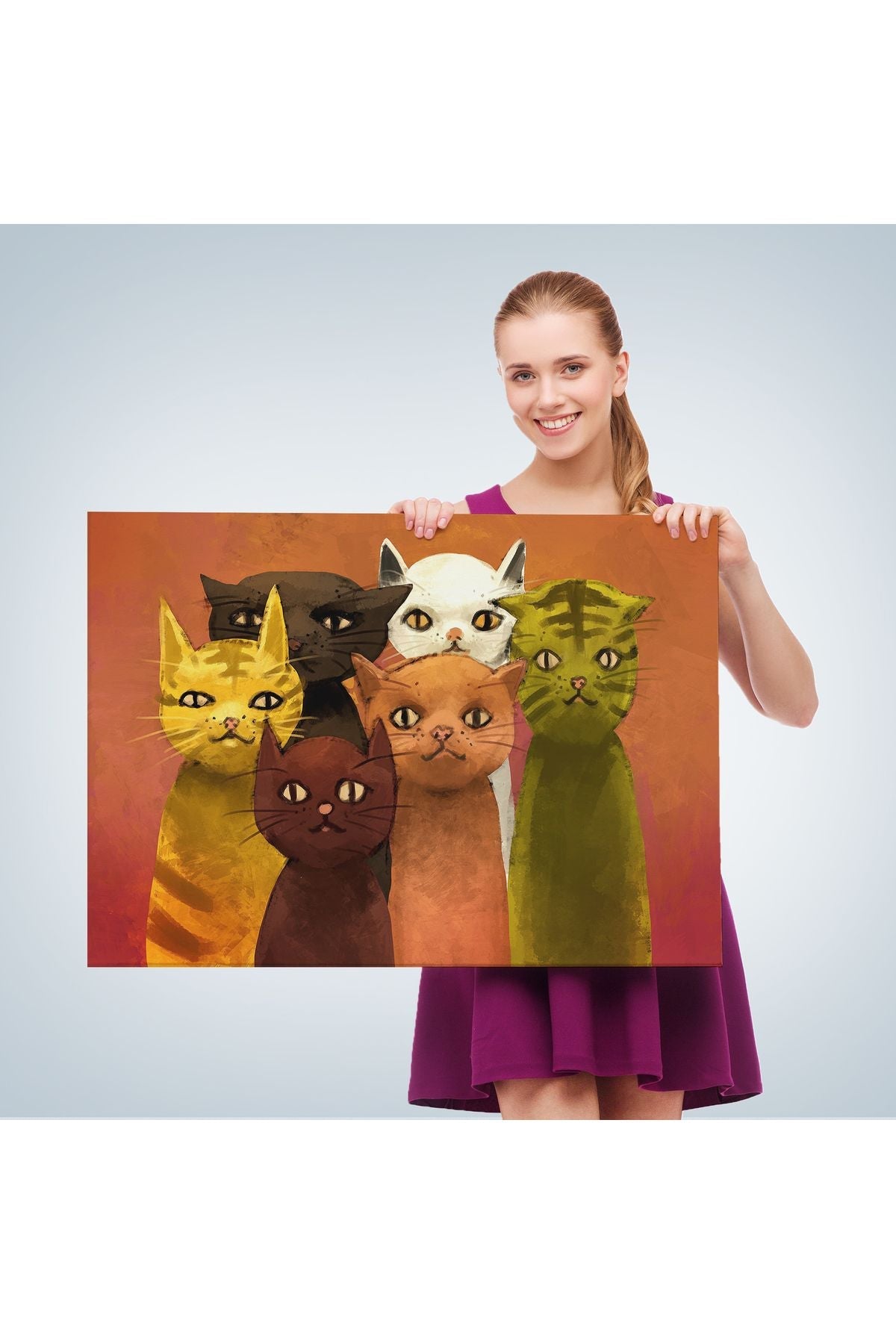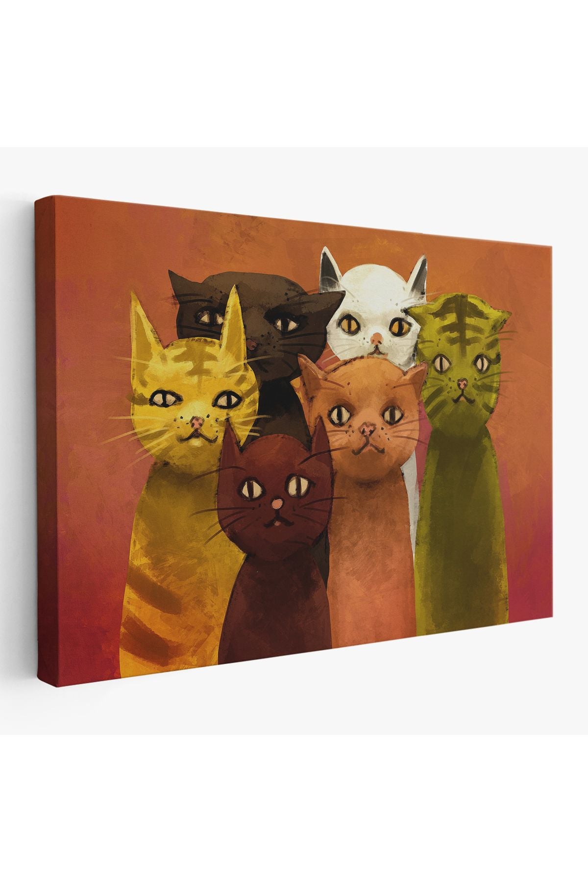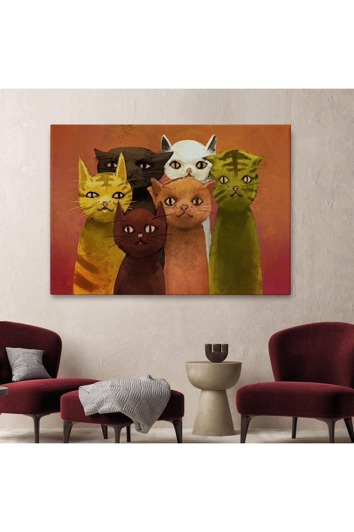 Soyut Kediler Yağlıboya Görünüm Dekoratif Kanvas Duvar Tablosu-3465