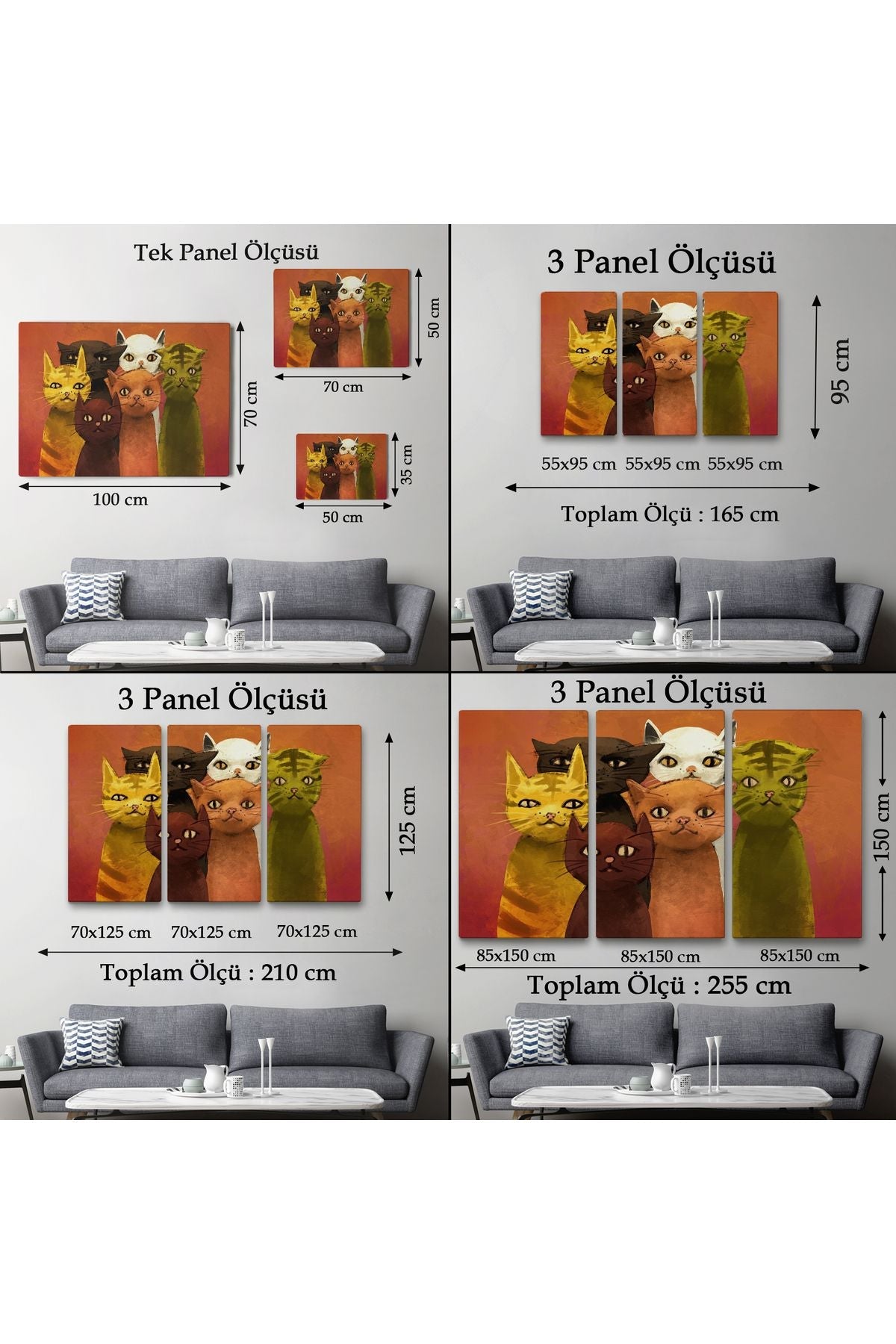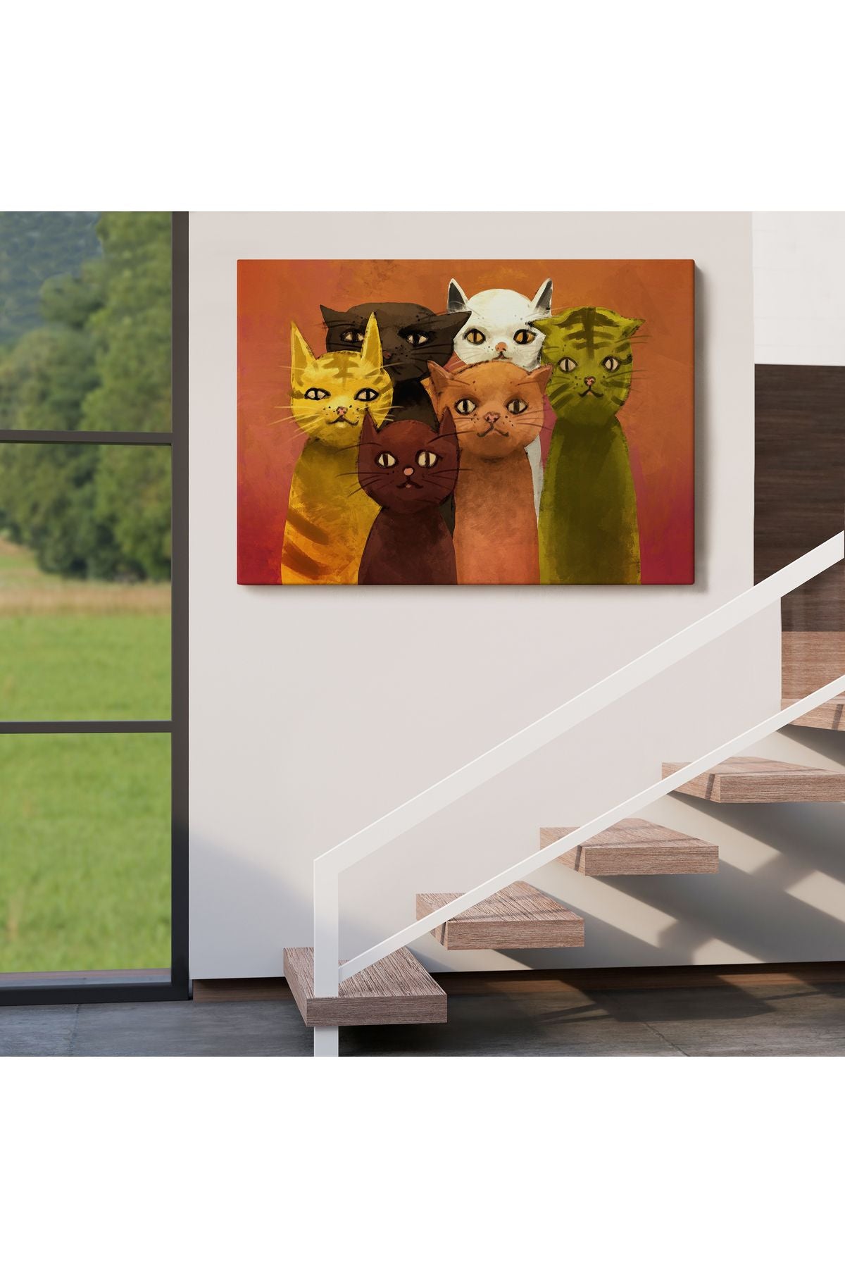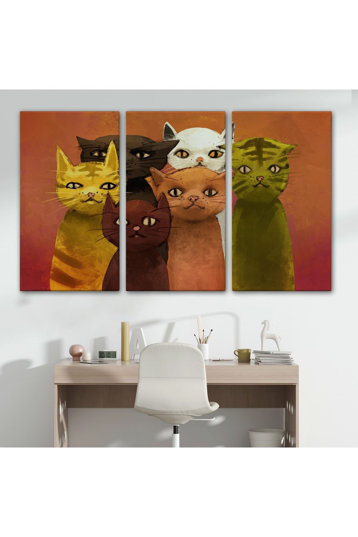 Soyut Kediler Yağlıboya Görünüm Dekoratif Kanvas Duvar Tablosu-3465