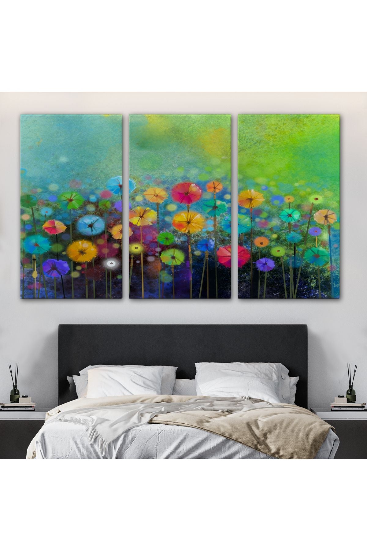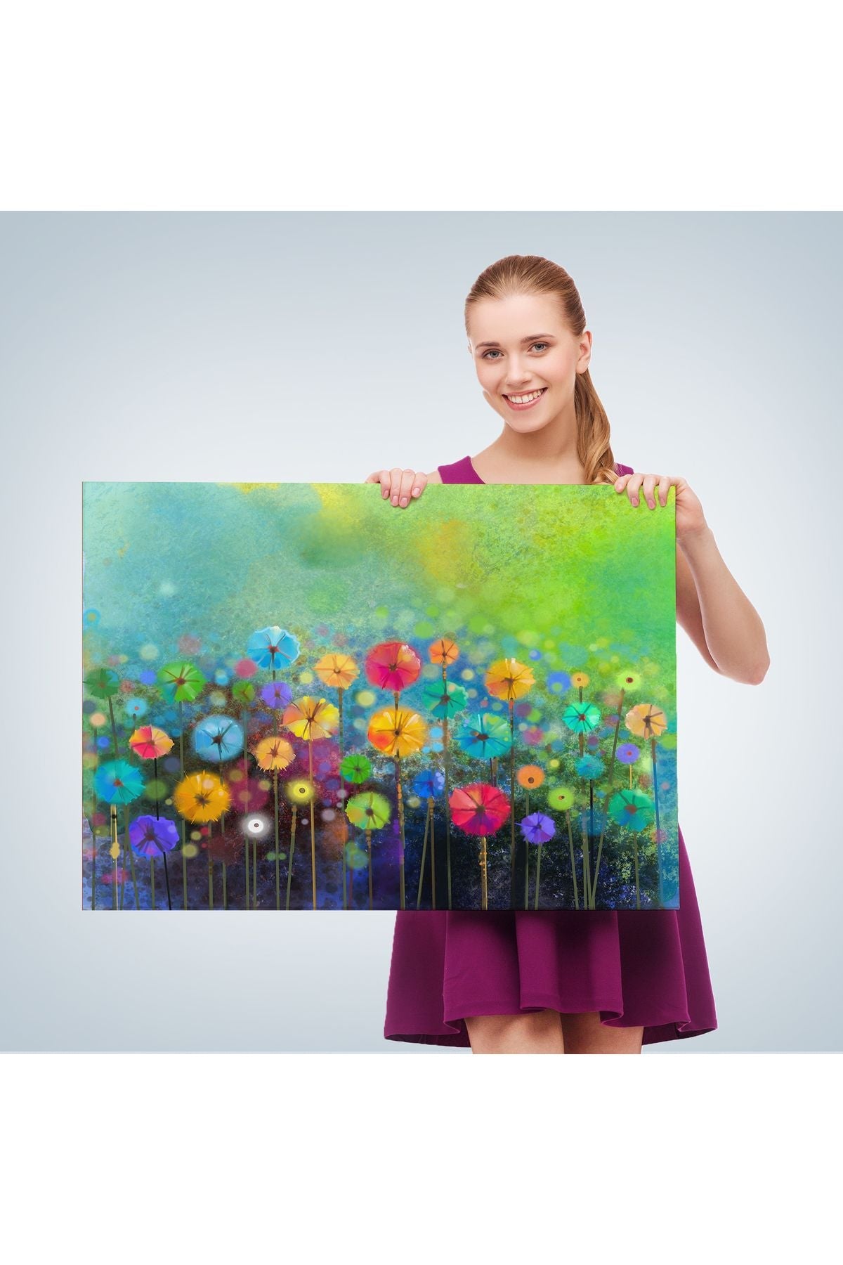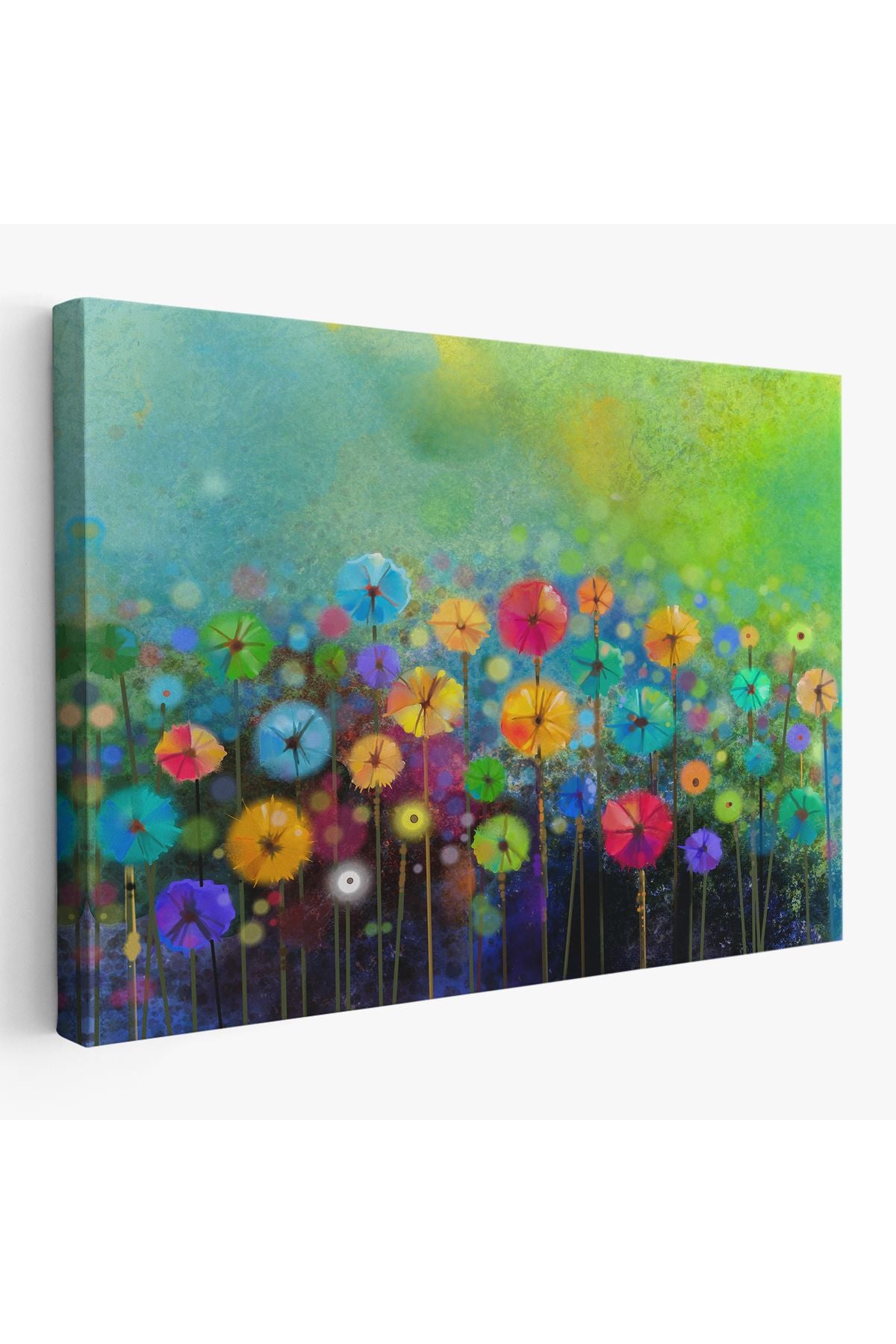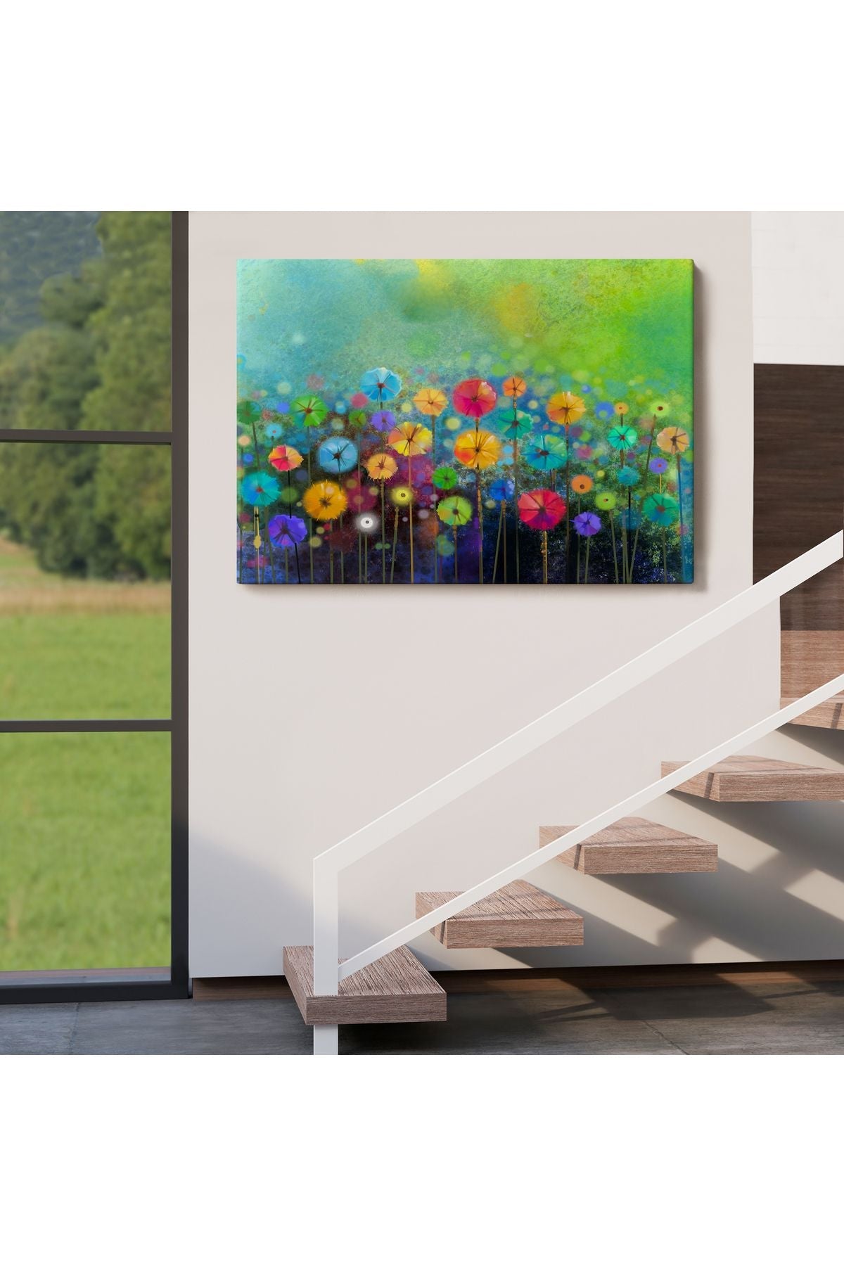 Soyut Çiçekler Suluboya Görünüm Dekoratif Kanvas Duvar Tablosu-3467