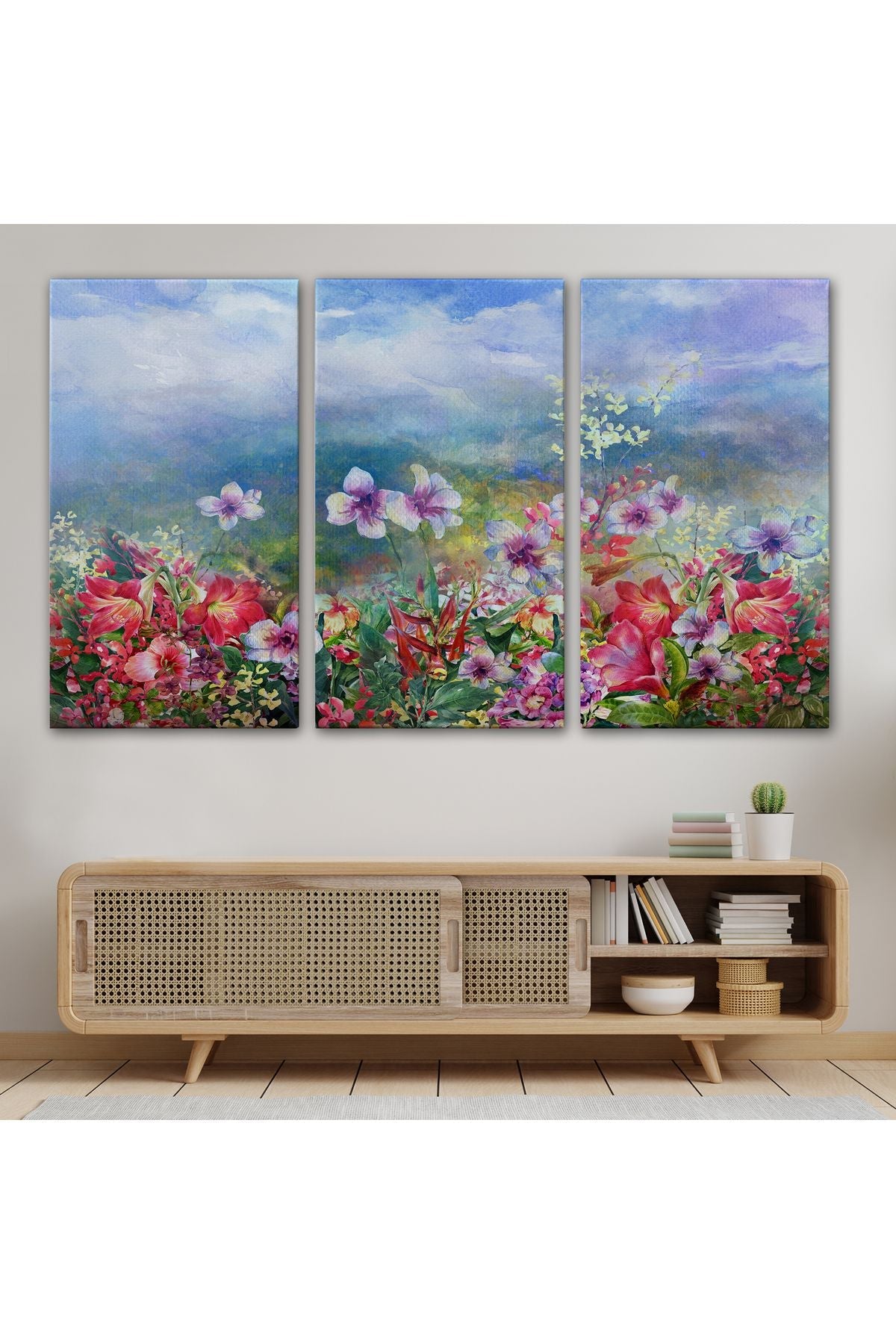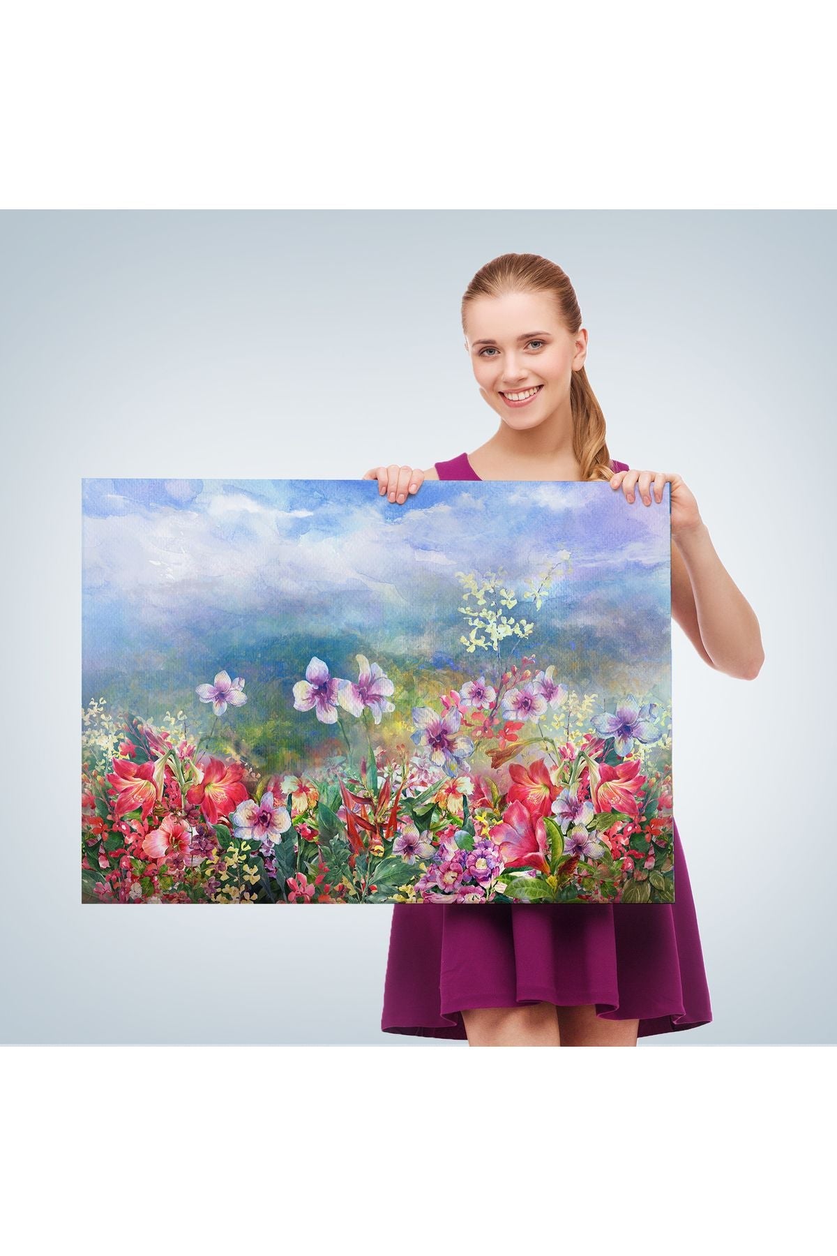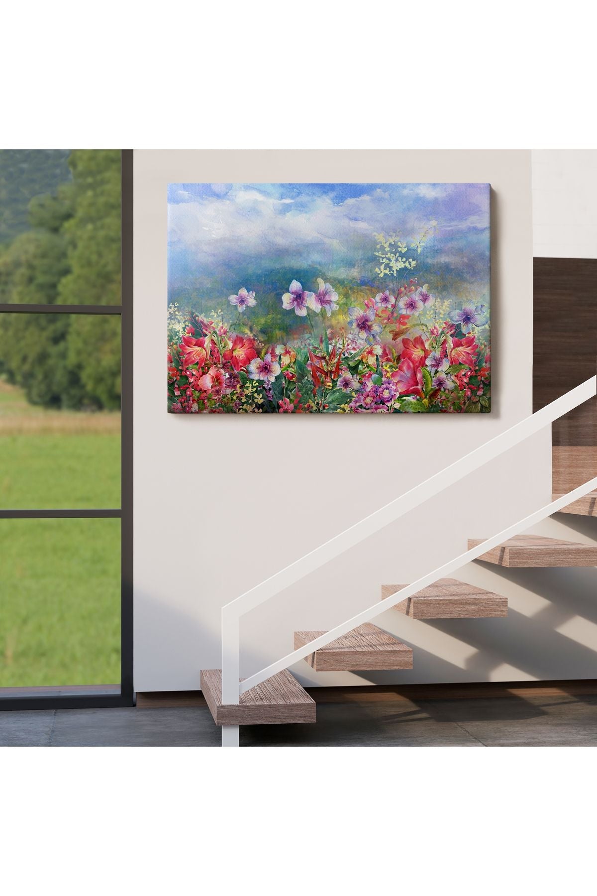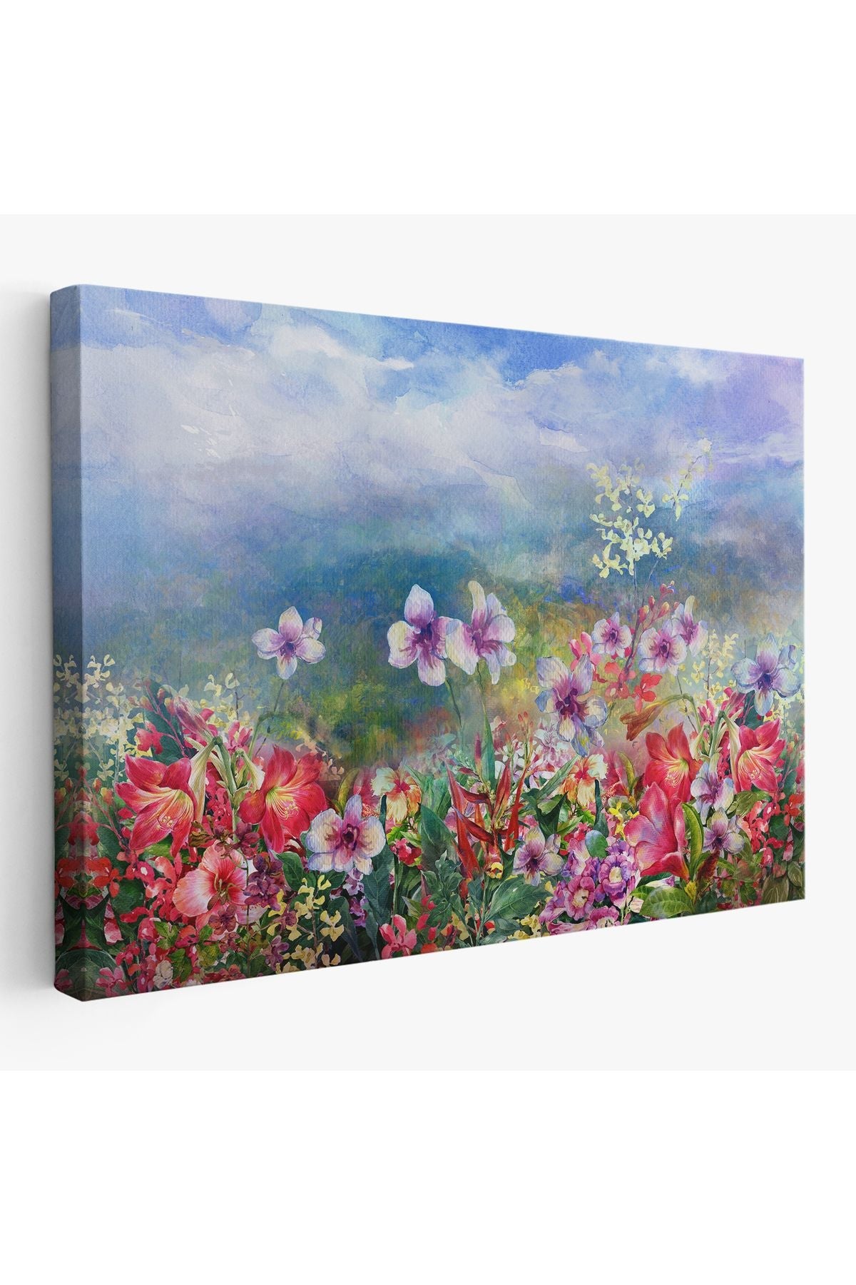 Renkli Çiçekler Suluboya Görünüm Dekoratif Kanvas Duvar Tablosu-3475