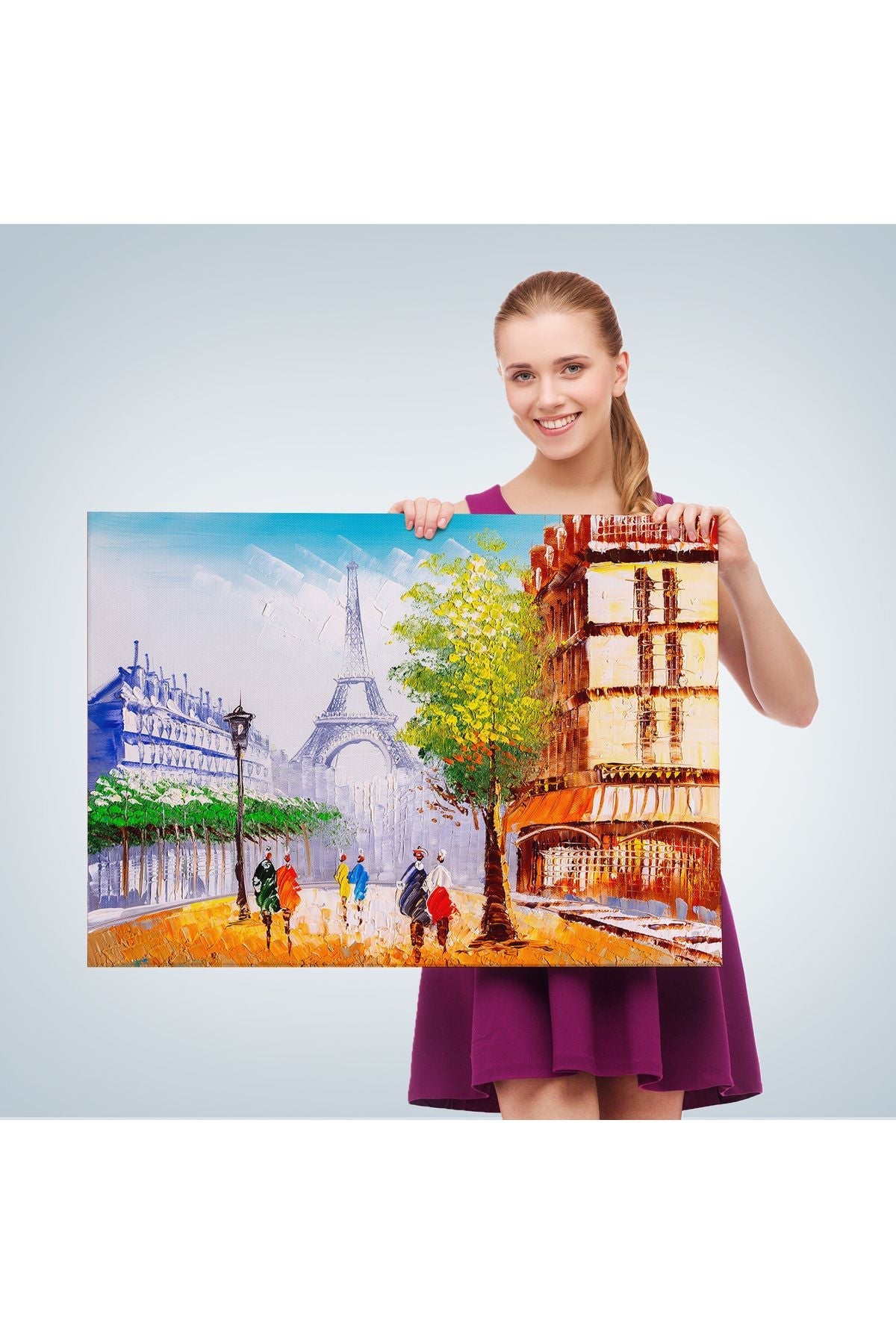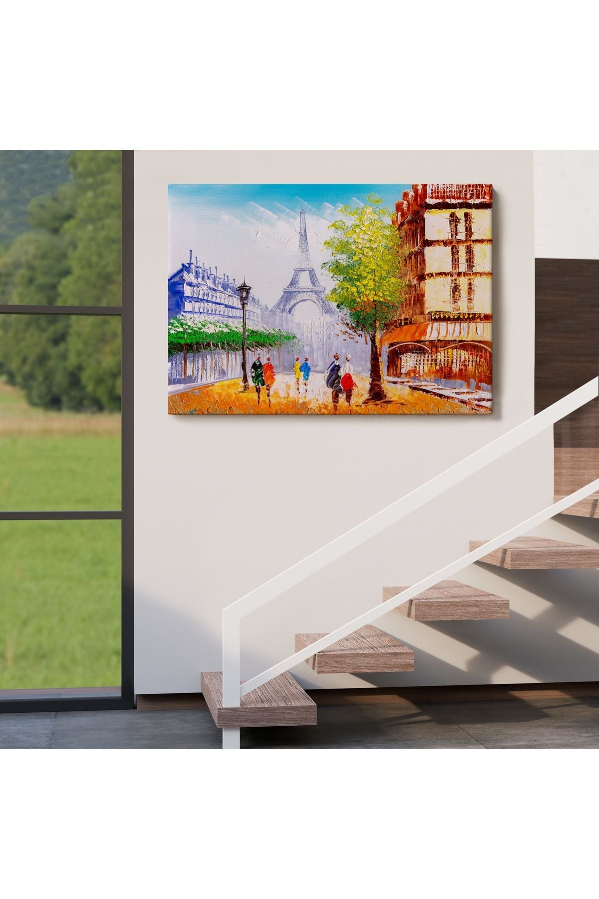 Eyfel Kulesi Manzaralı Yağlıboya Görünüm Dekoratif Kanvas Duvar Tablosu-3484