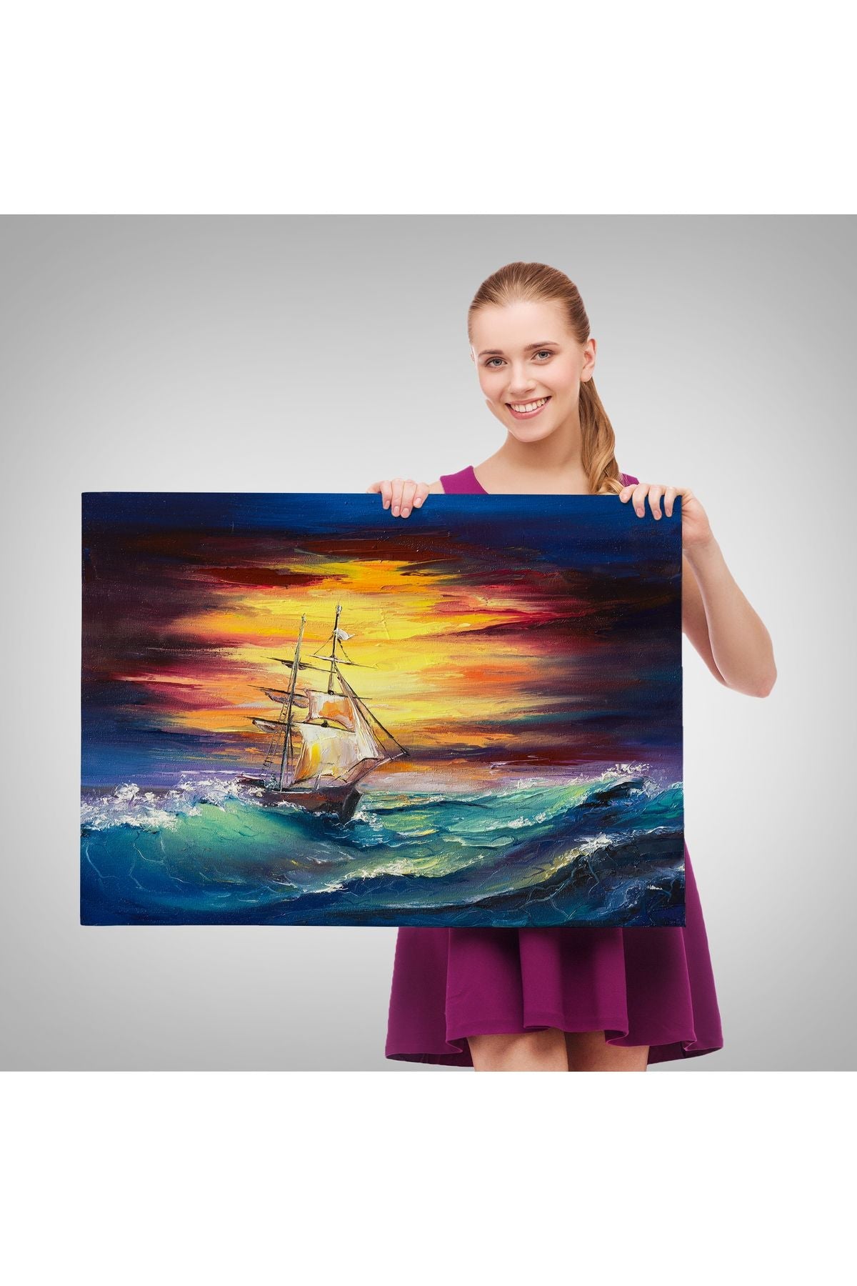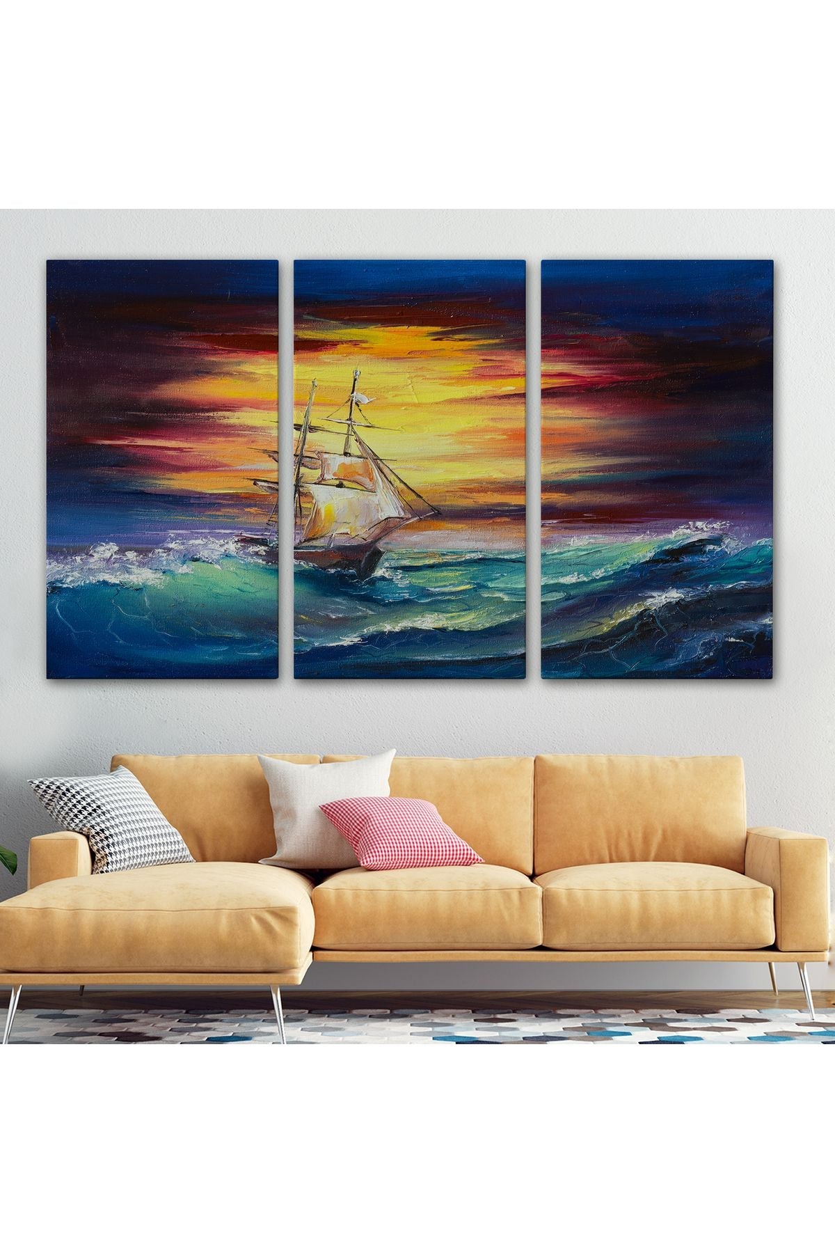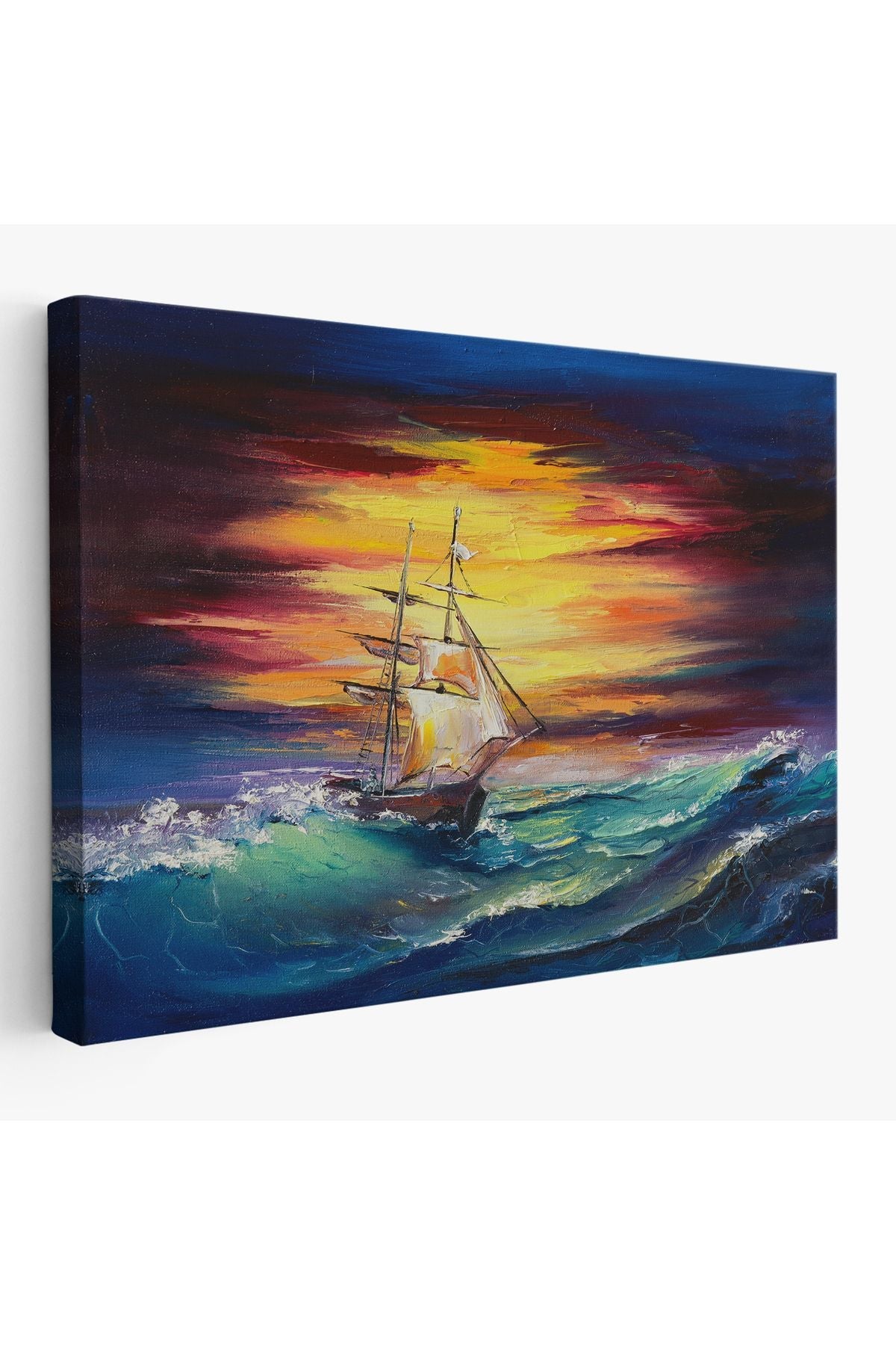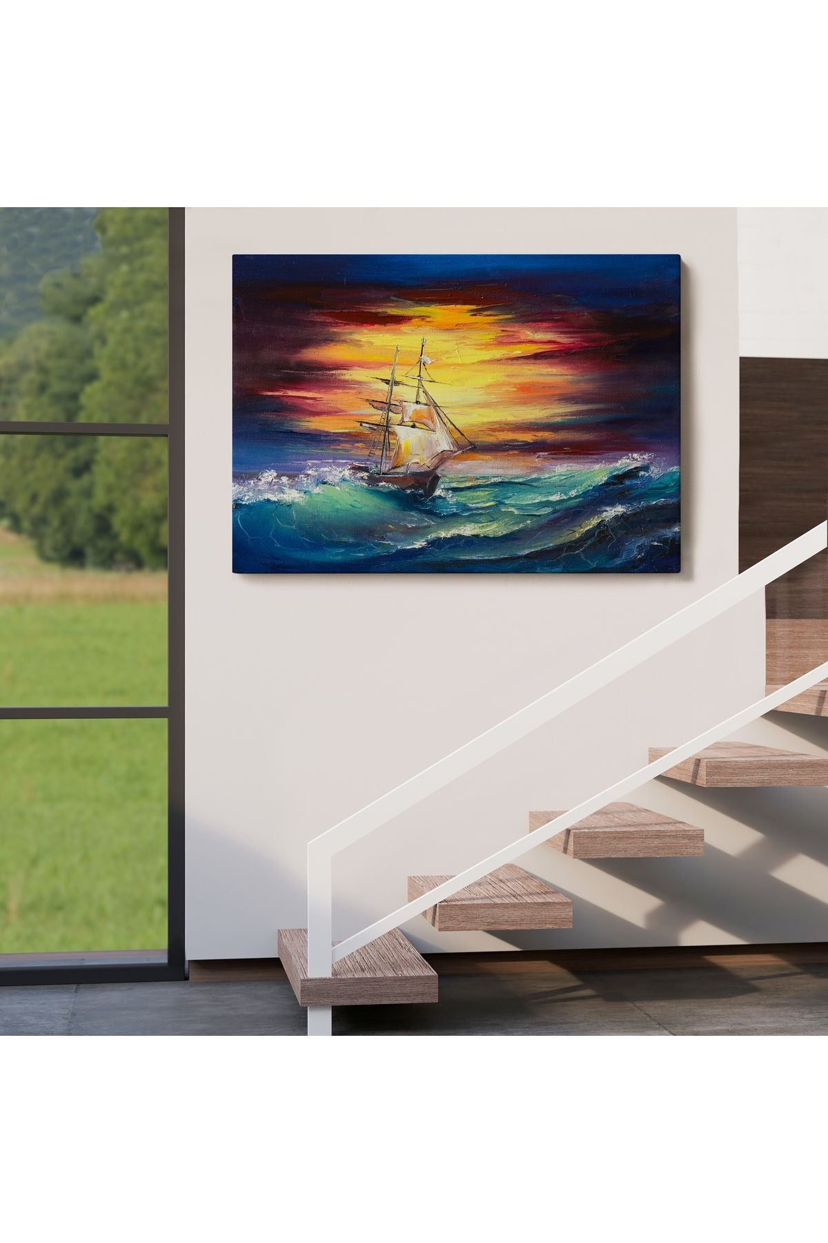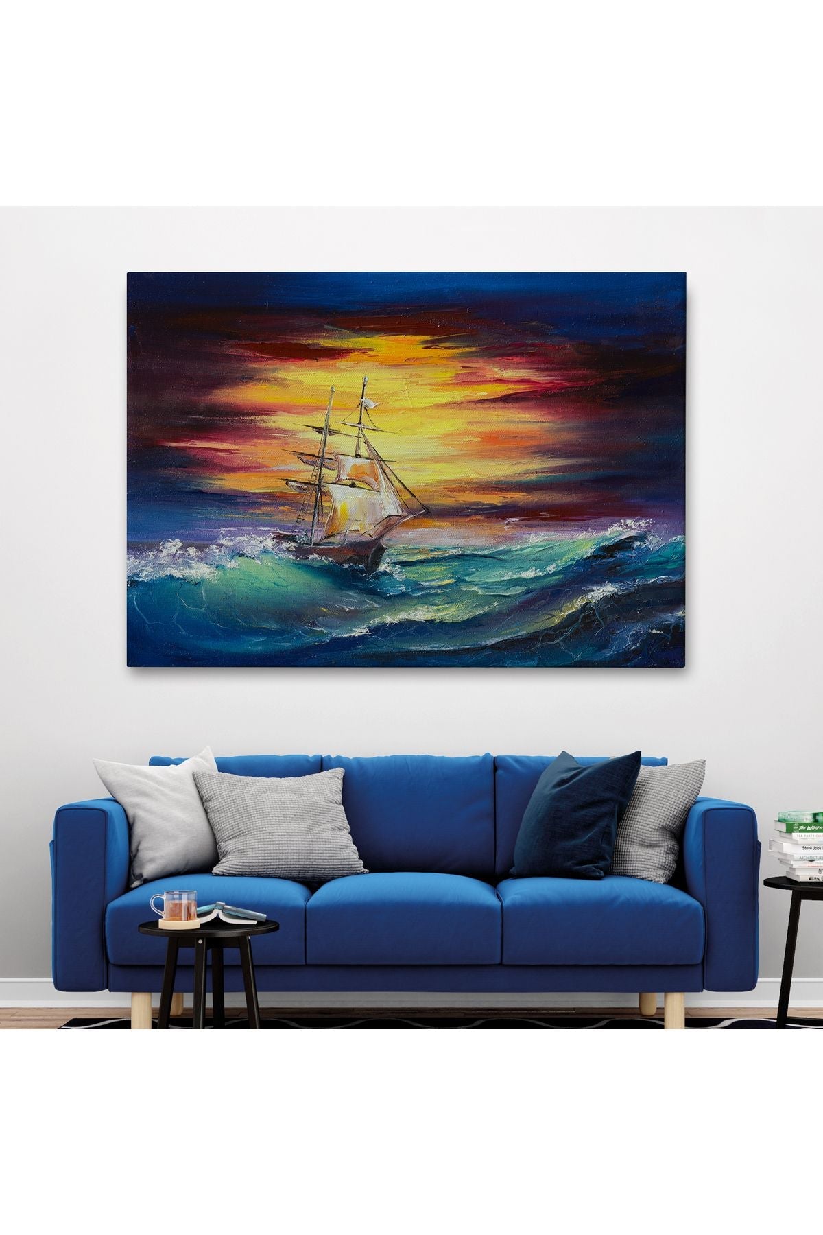 Büyük Dalgalı Okyanusdaki Yelkenli Duvar Tablosu-3491