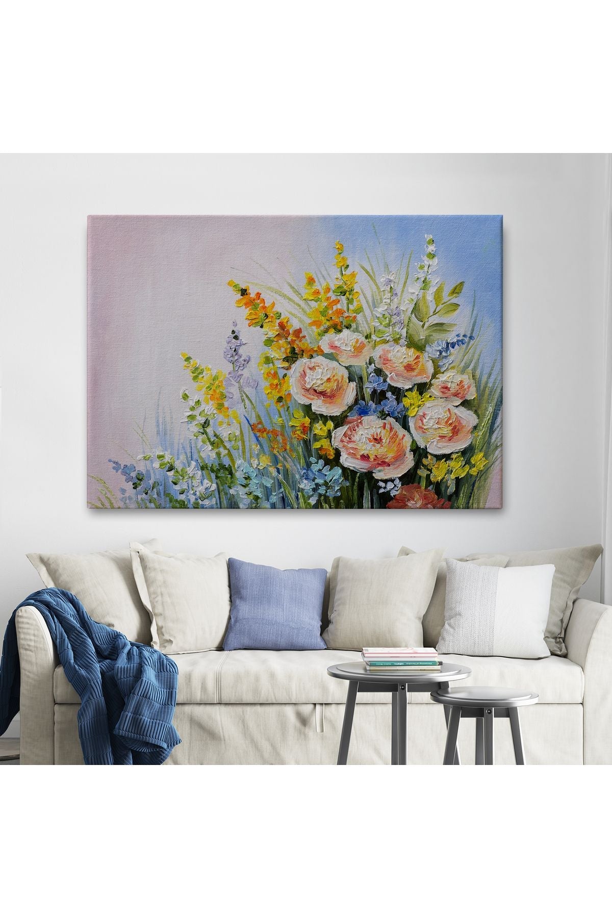 Soyut Yaz Çiçekleri Yağlıboya Görünüm Dekoratif Kanvas Duvar Tablosu-3496