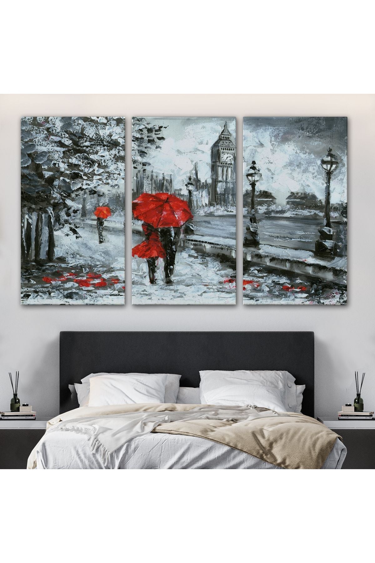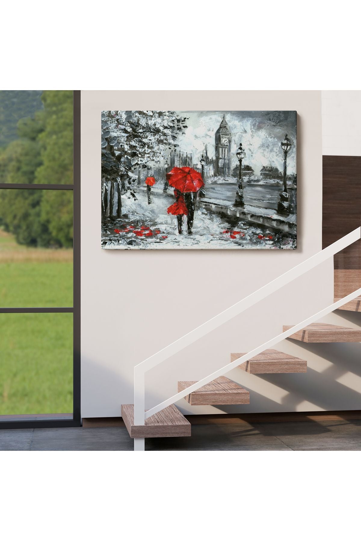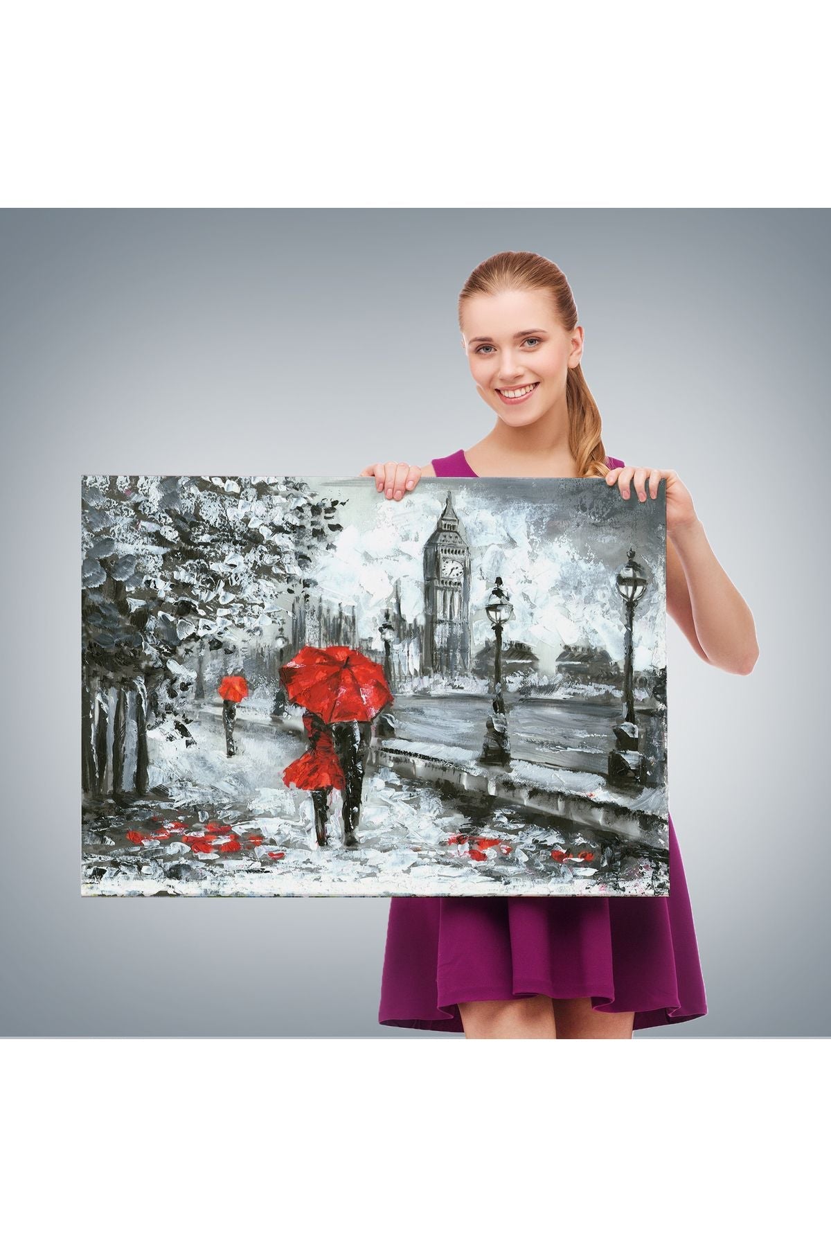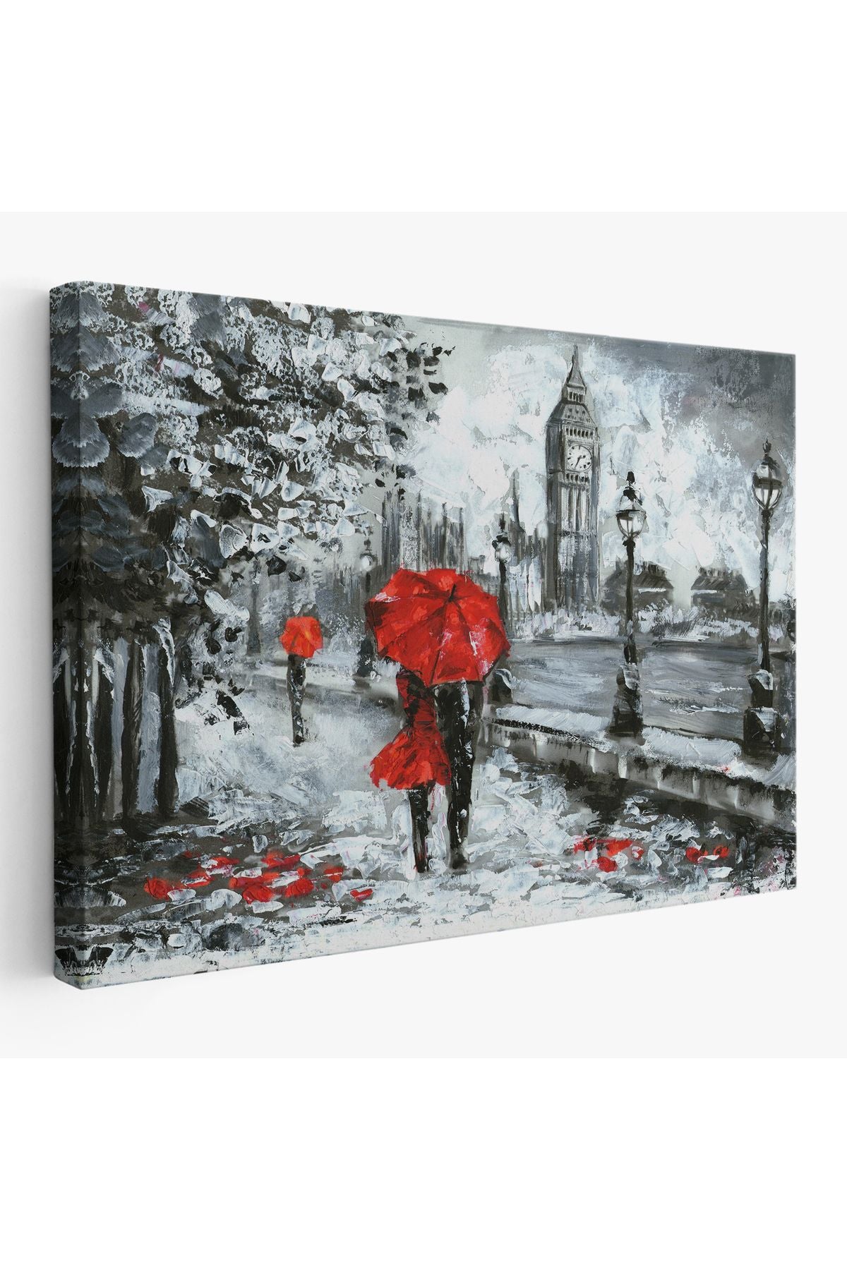 Londra Sokakları Yağlıboya Görünüm Dekoratif Kanvas Duvar Tablosu-3497
