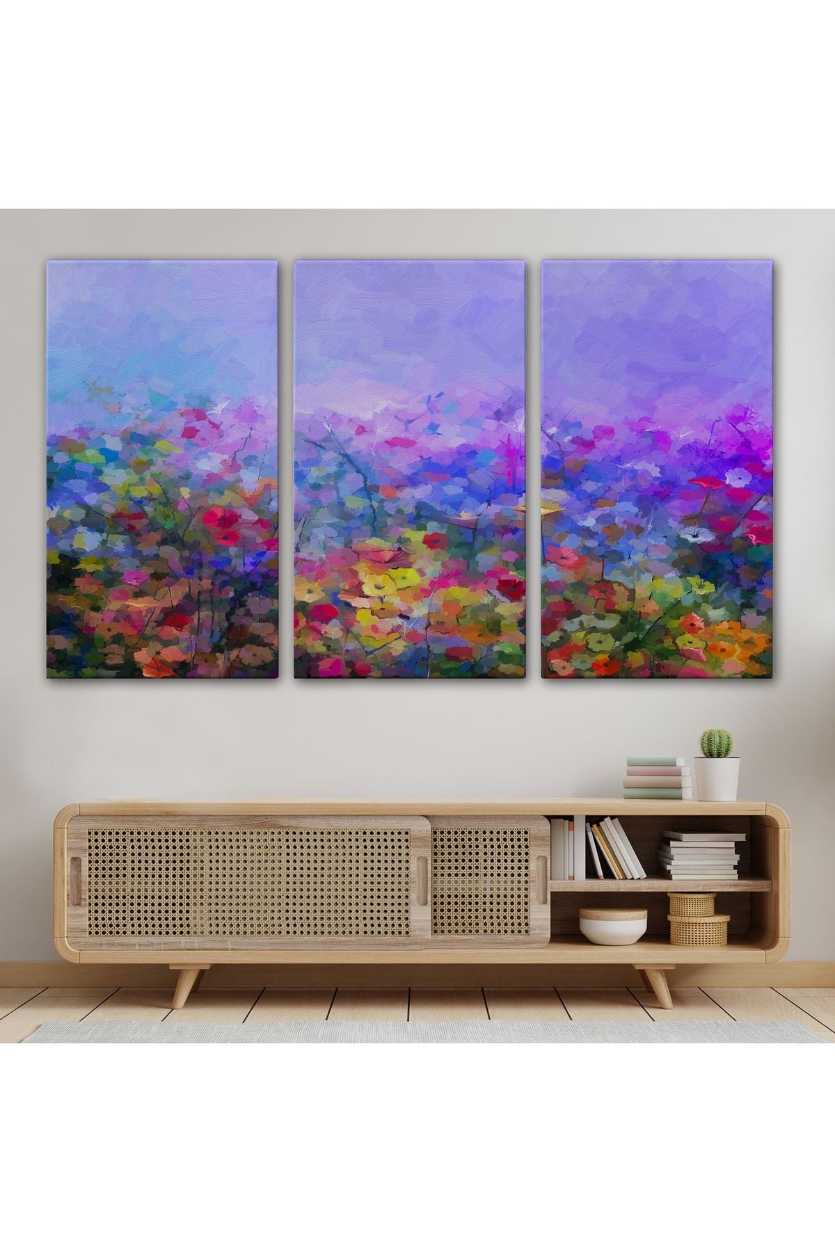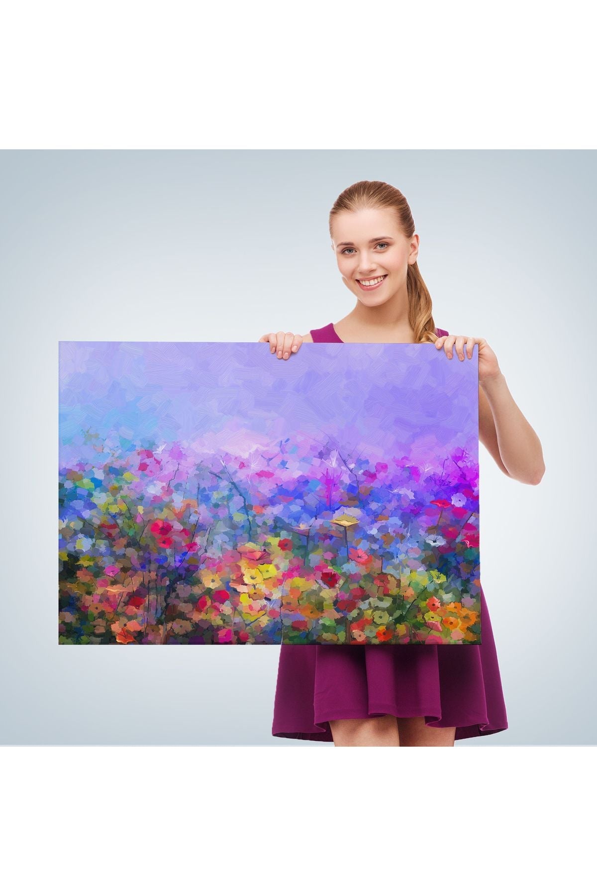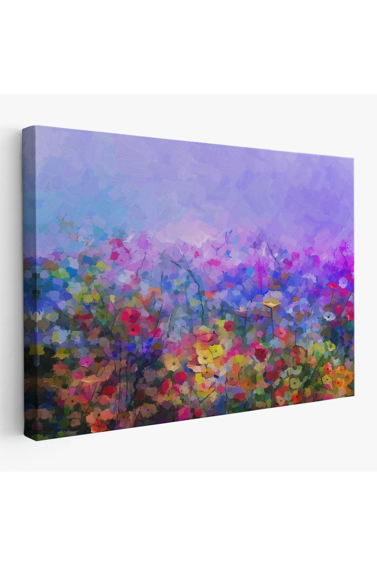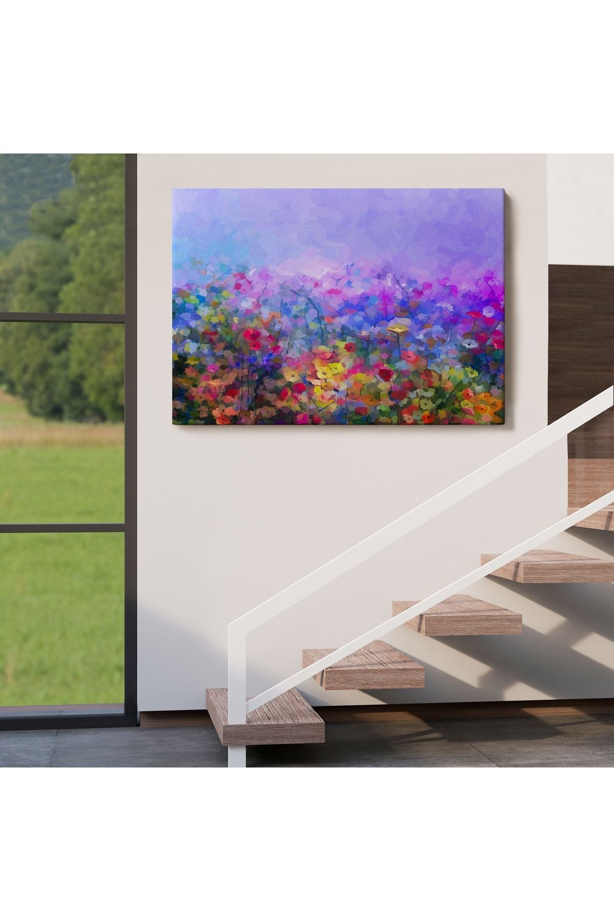 Kır Çiçekleri Yağlıboya Görünüm Dekoratif Kanvas Duvar Tablosu-3505