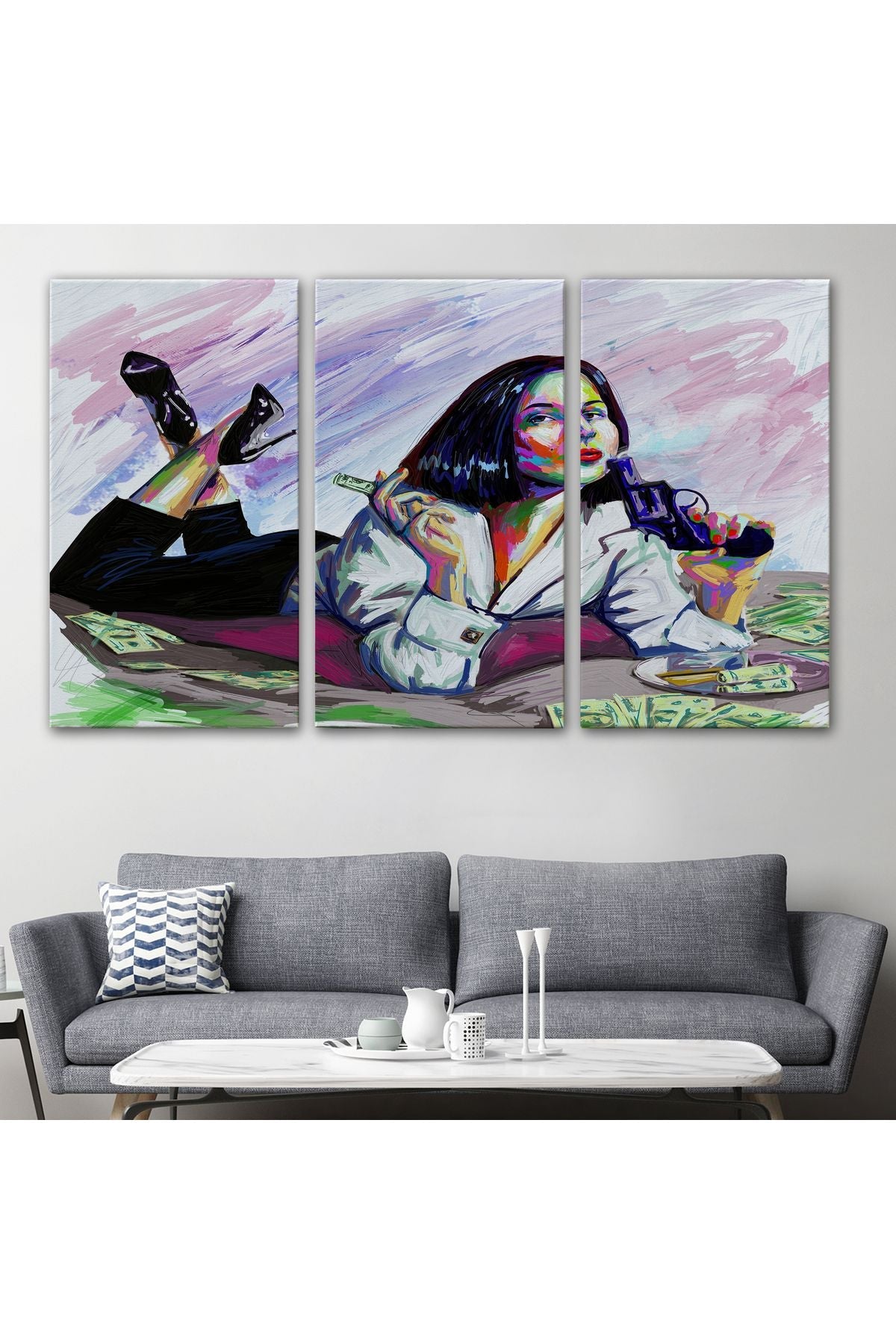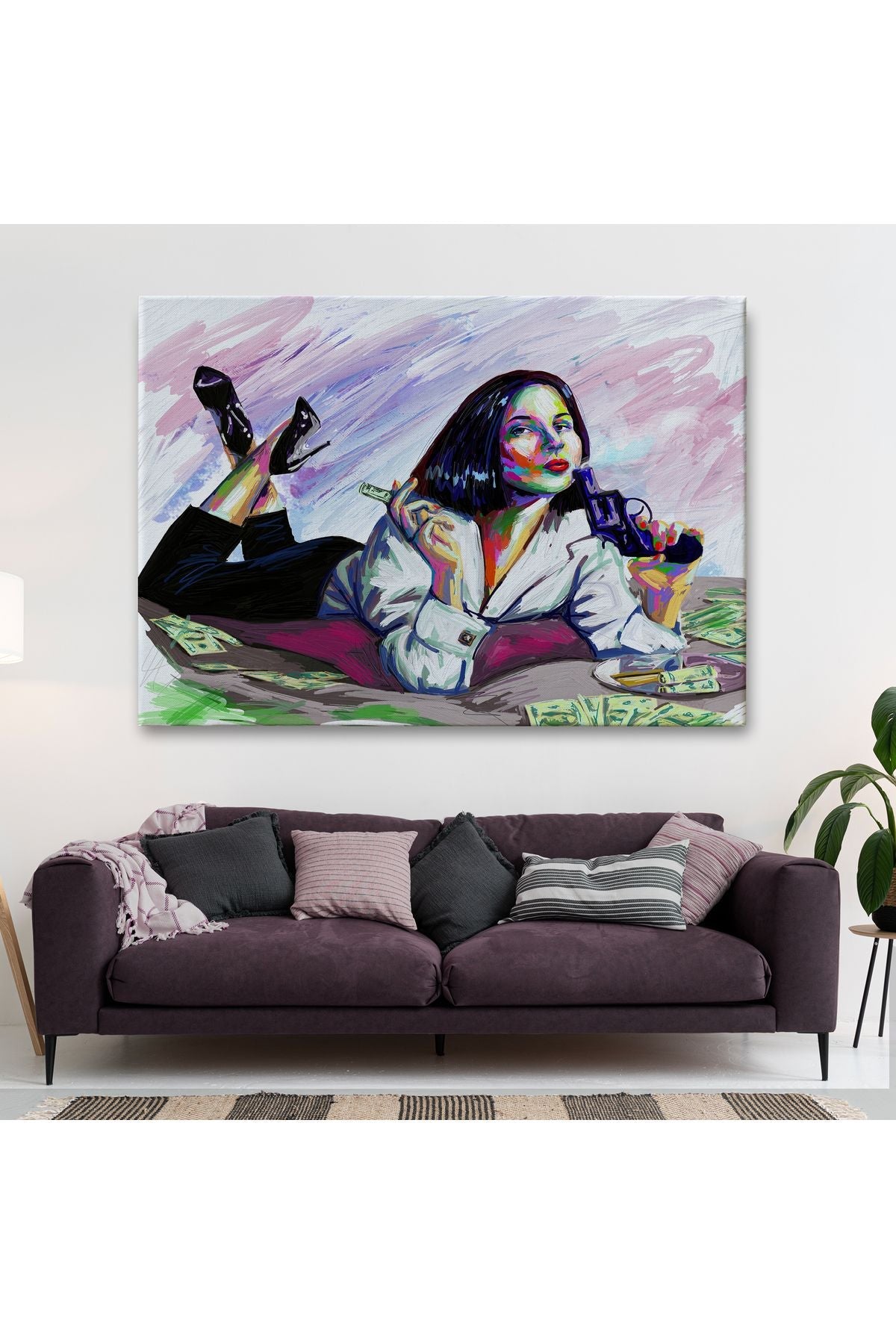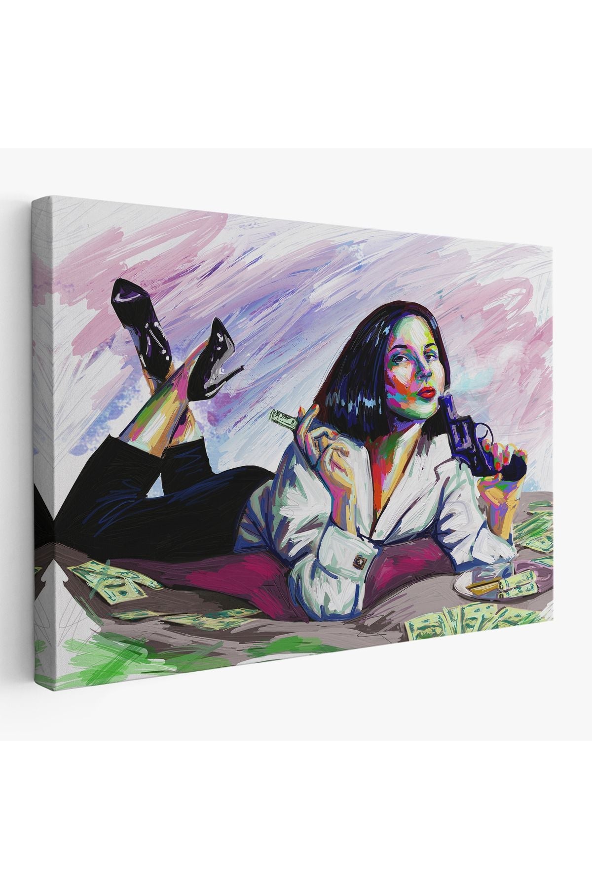 Silahlı Gangster Kız Pop Art Dekoratif Duvar Tablosu-3530