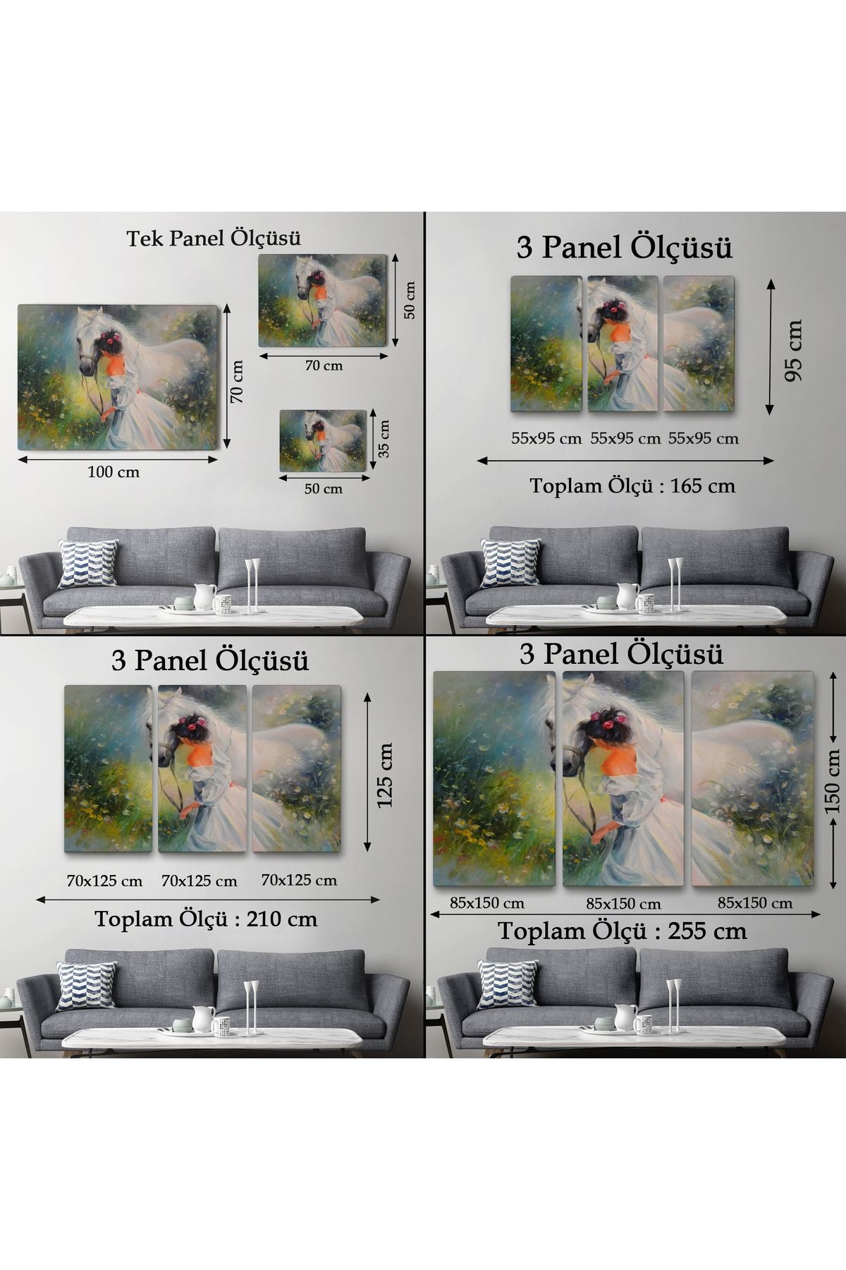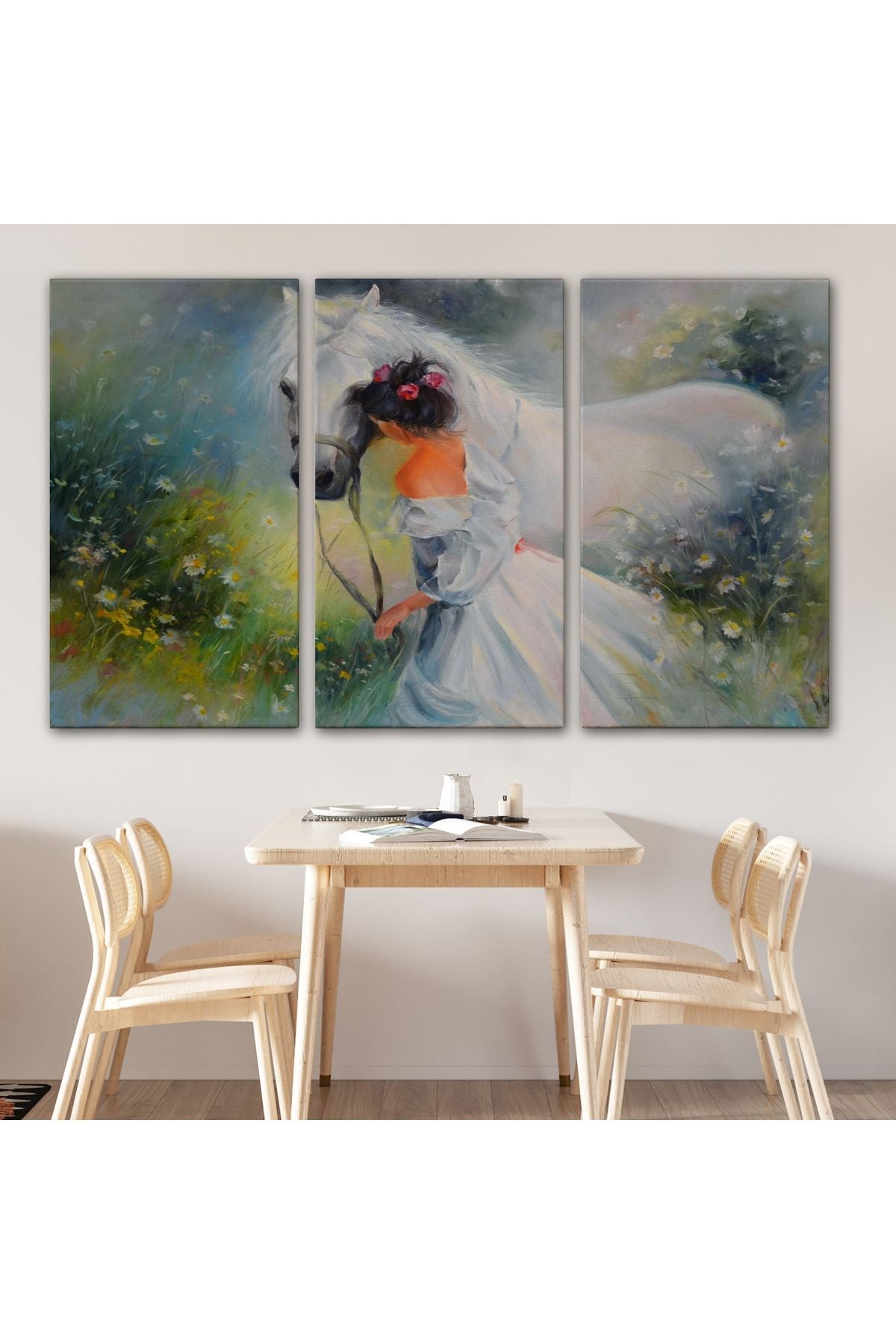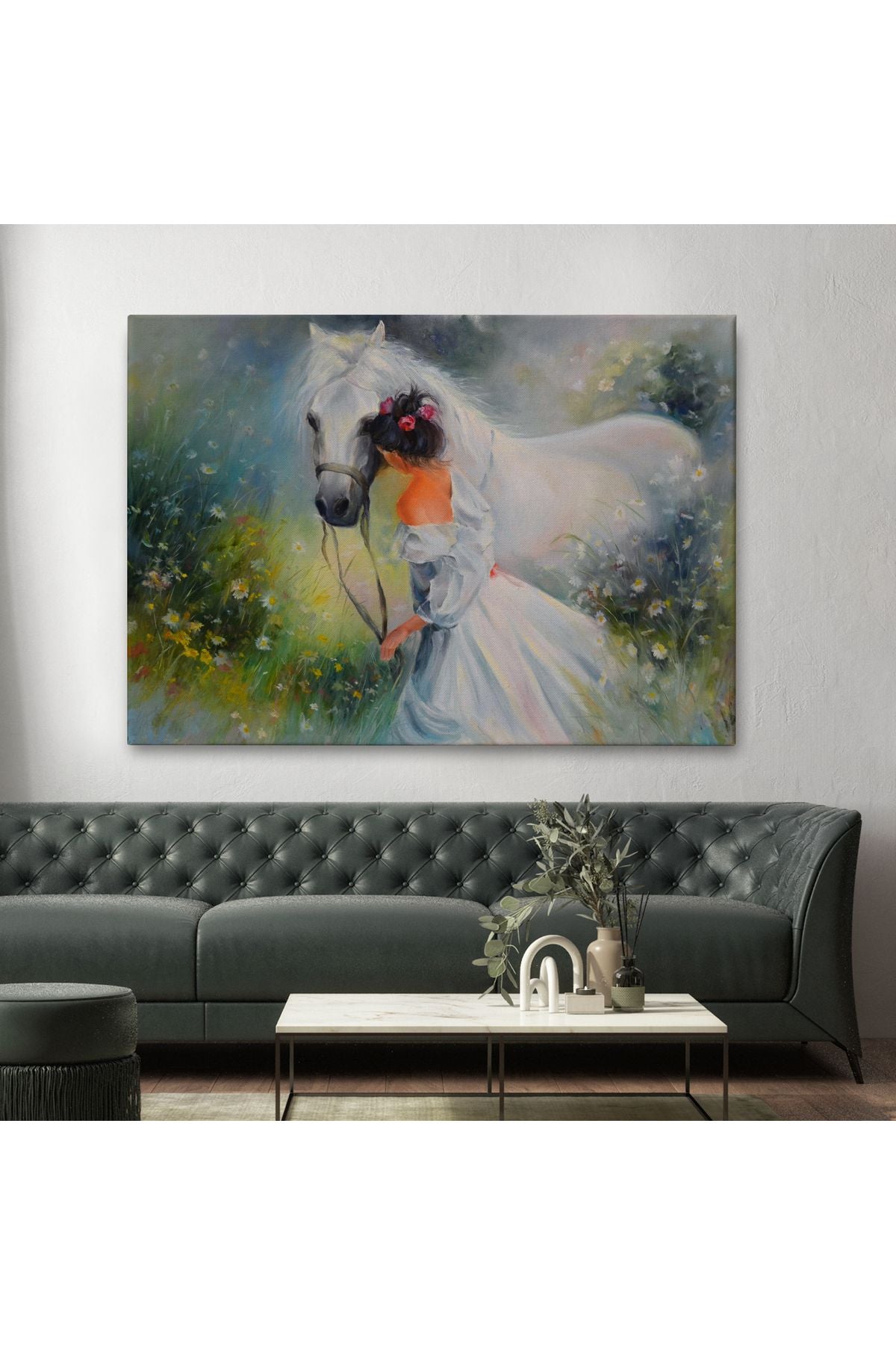 Bayaz At Ve Sahibi Kız Yağlıboya Görünüm Dekoratif Kanvas Duvar Tablosu-3539