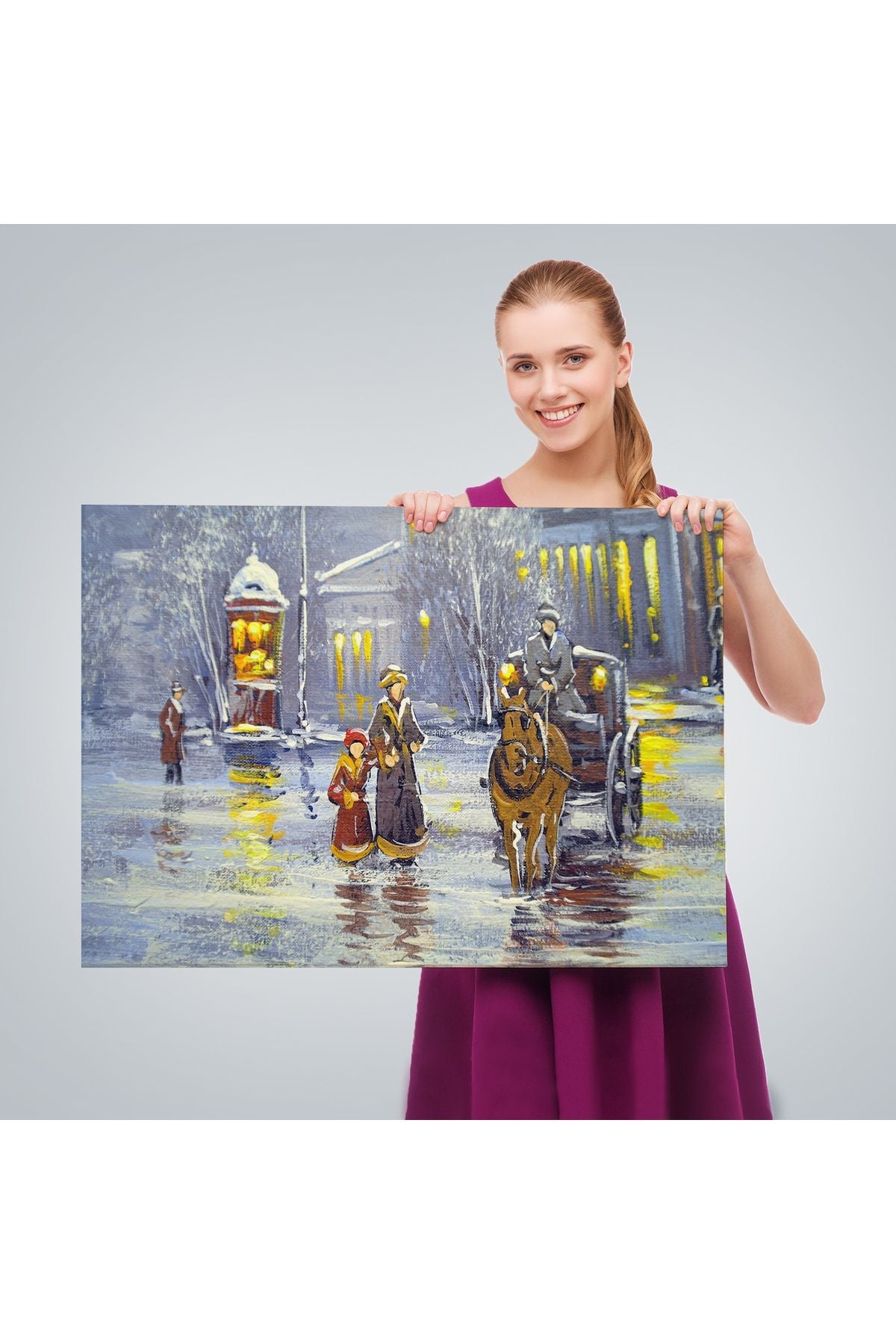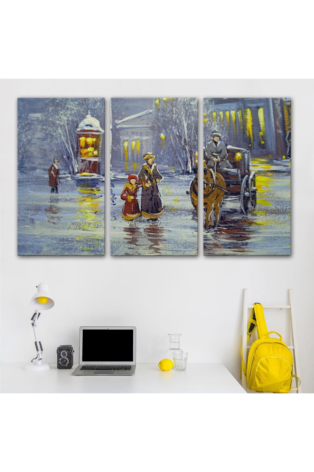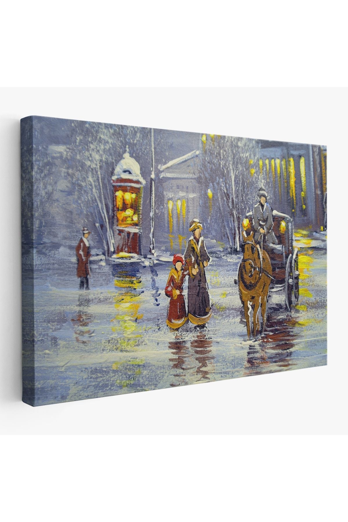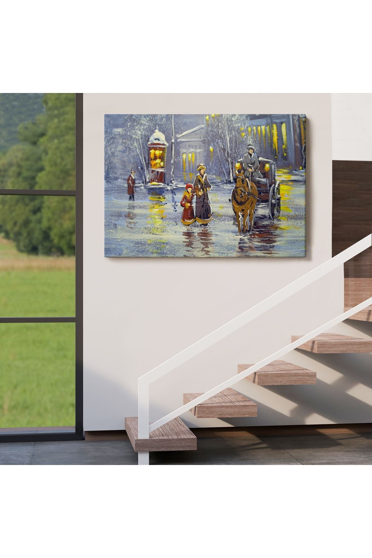 Eski Şehir ve At Arabası Yağlıboya Görünüm Dekoratif Kanvas Duvar Tablosu-3573