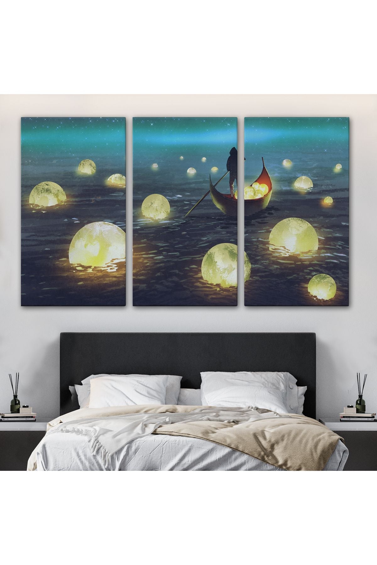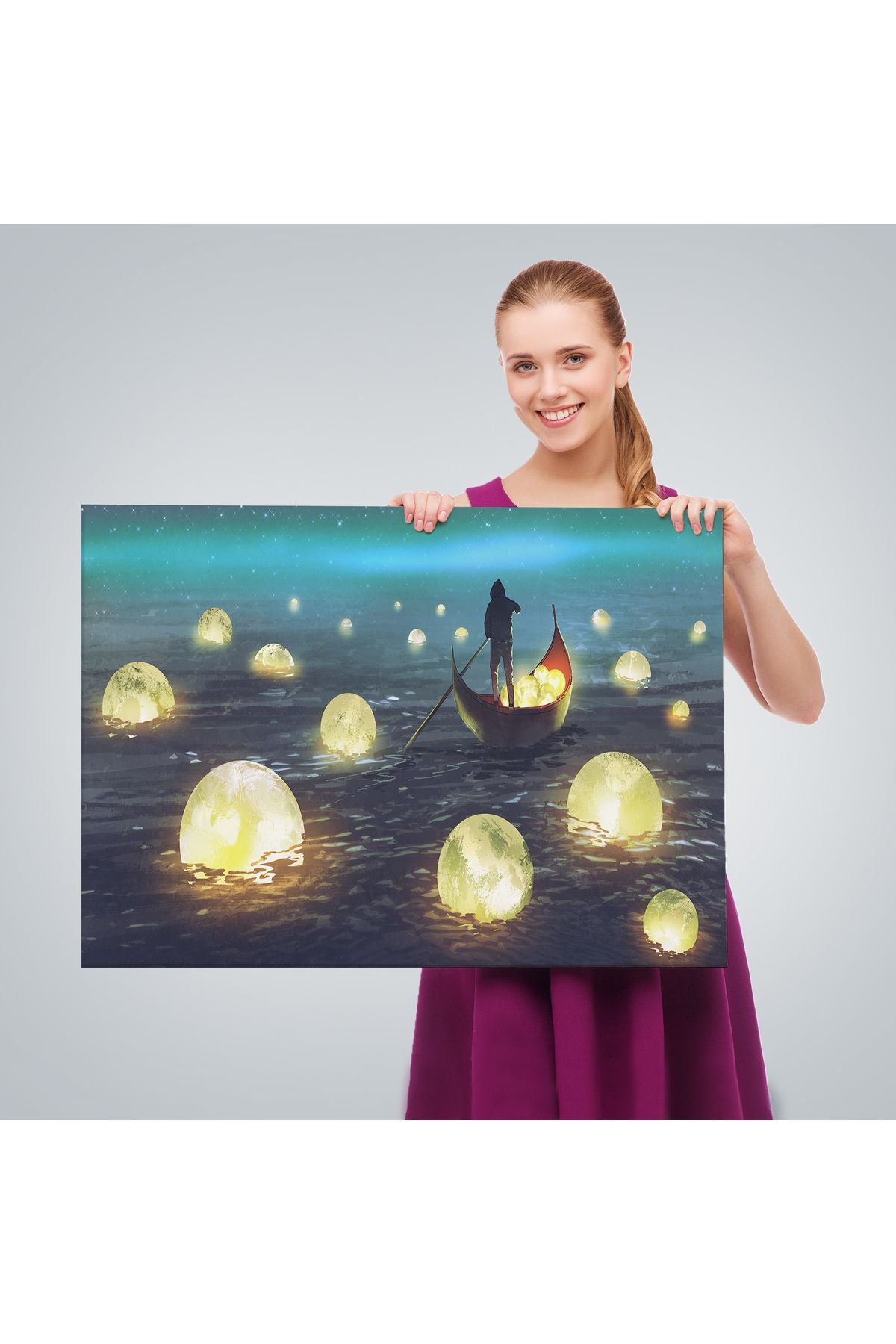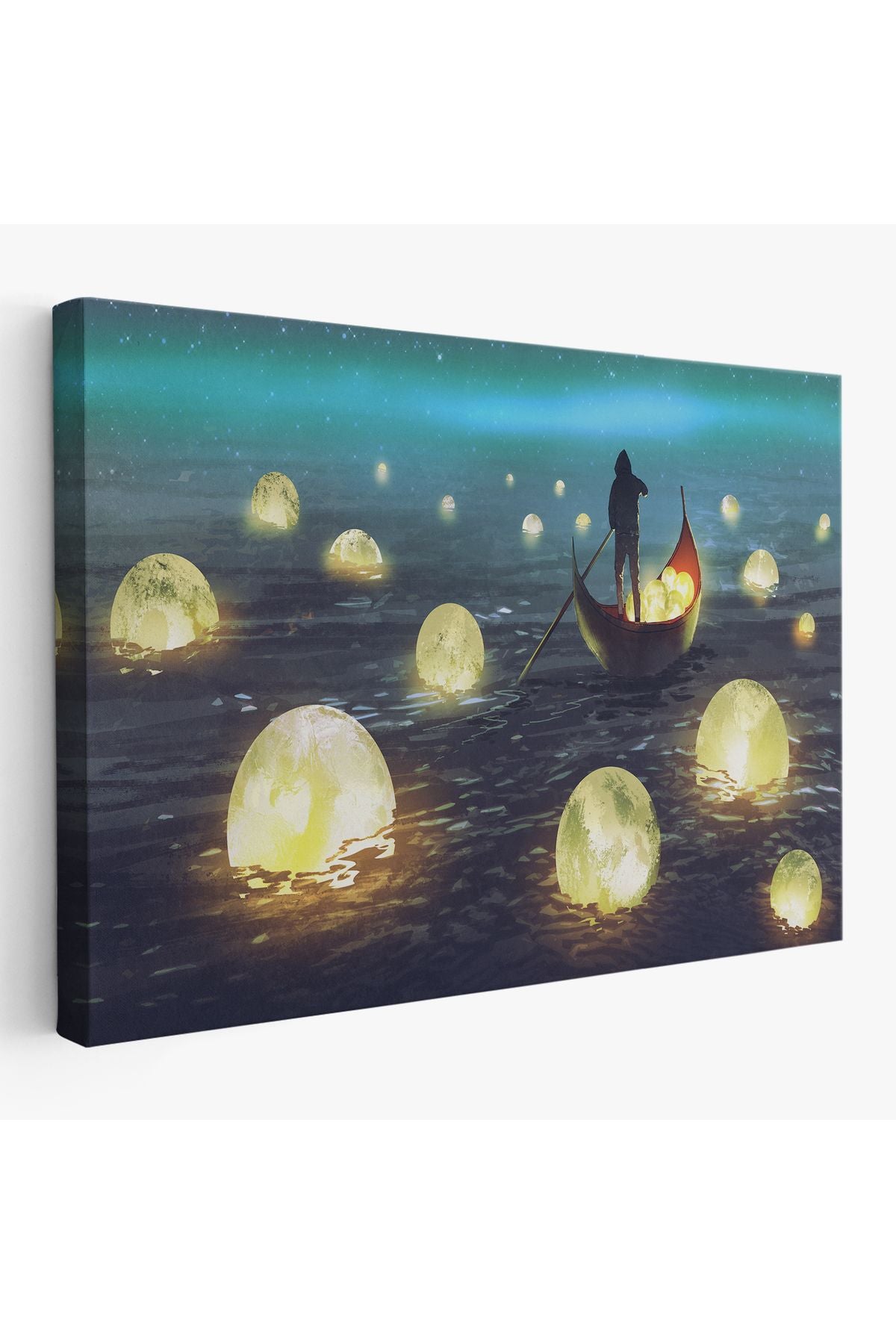 Denize Düşen Ayları Toplayan Adam Yağlıboya Görünüm Tablo-3575