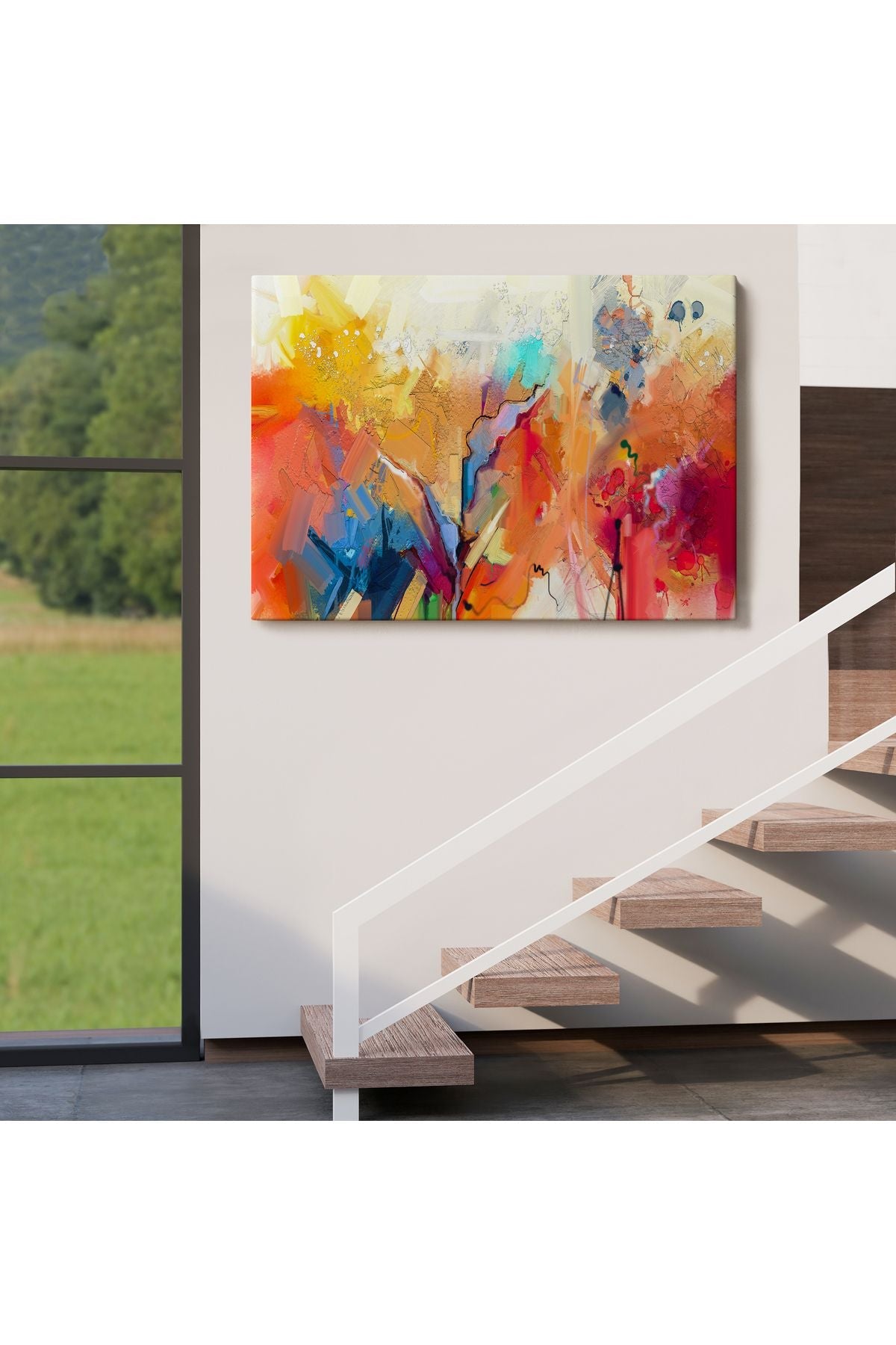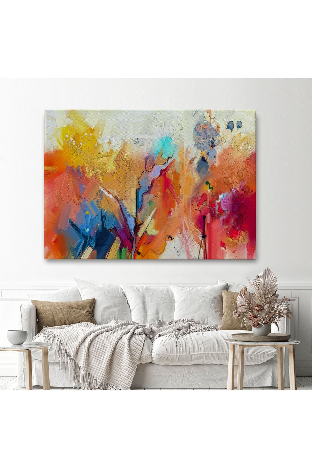 Fırça Darbeli Soyut Yağlıboya Görünüm Dekoratif Kanvas Duvar Tablosu-3582