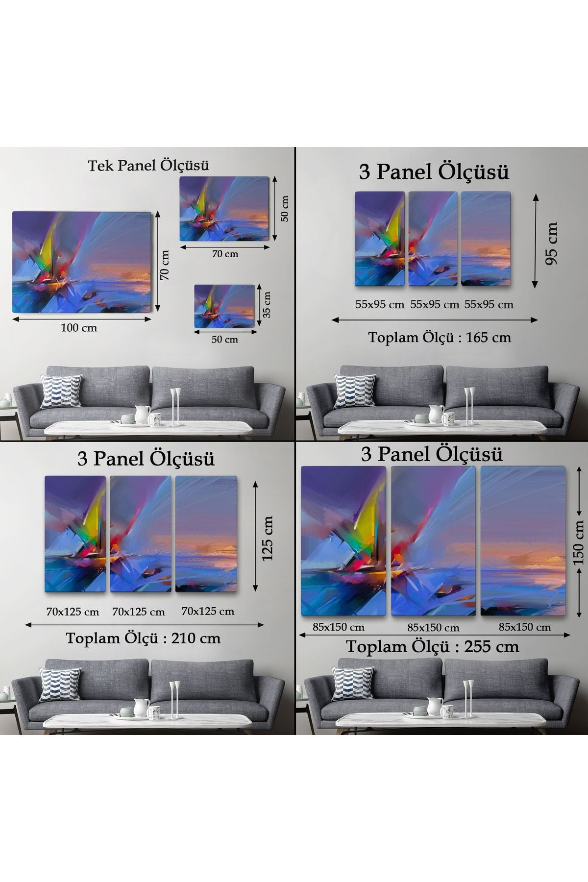Fırça Darbeli Yelkenli Soyut Yağlıboya Görünüm Kanvas Tablosu-3585