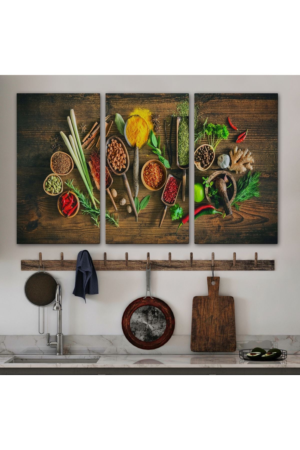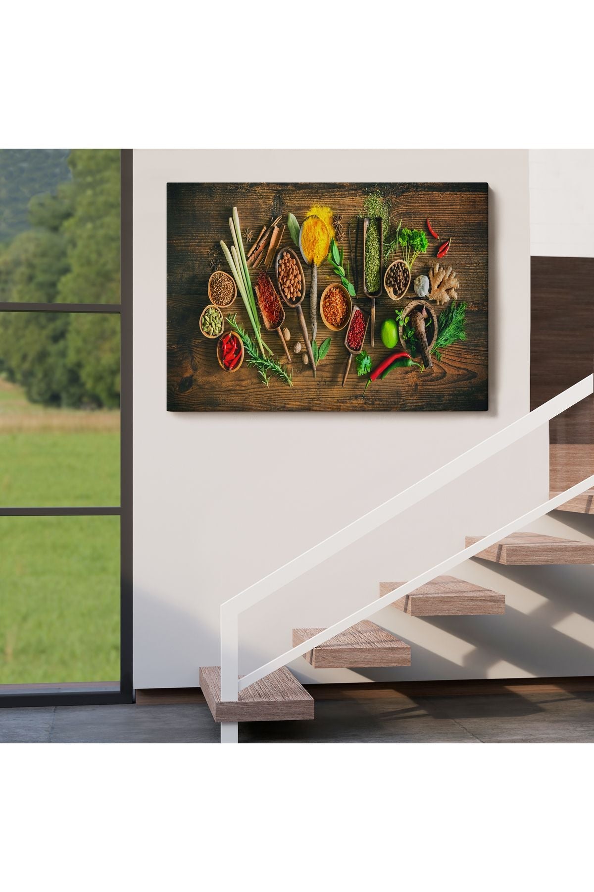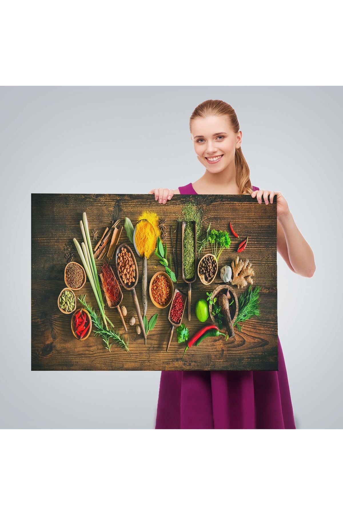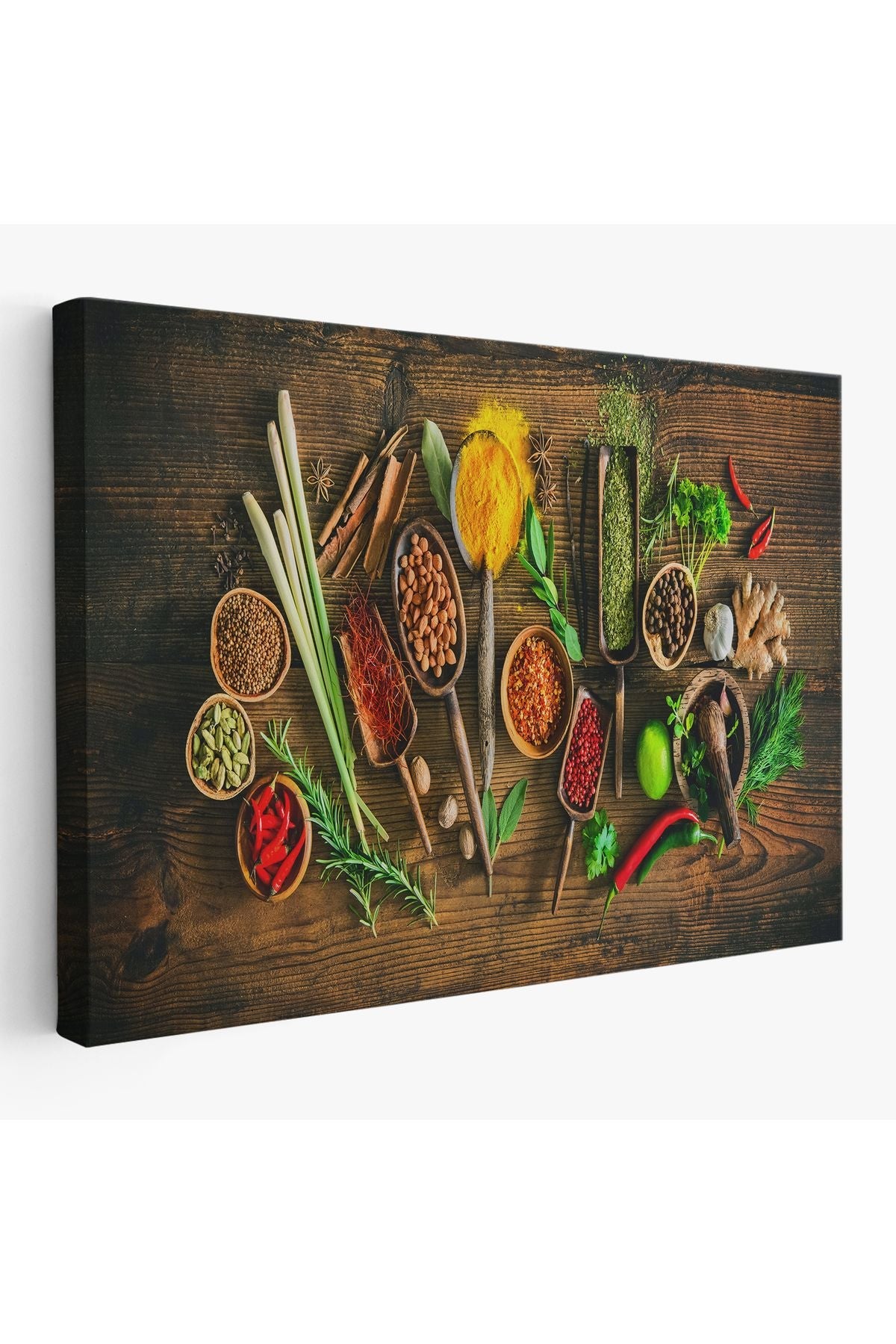 Mutfak Kesme Tahtası Üzerinde Baharatlar Kanvas Tablo-3586