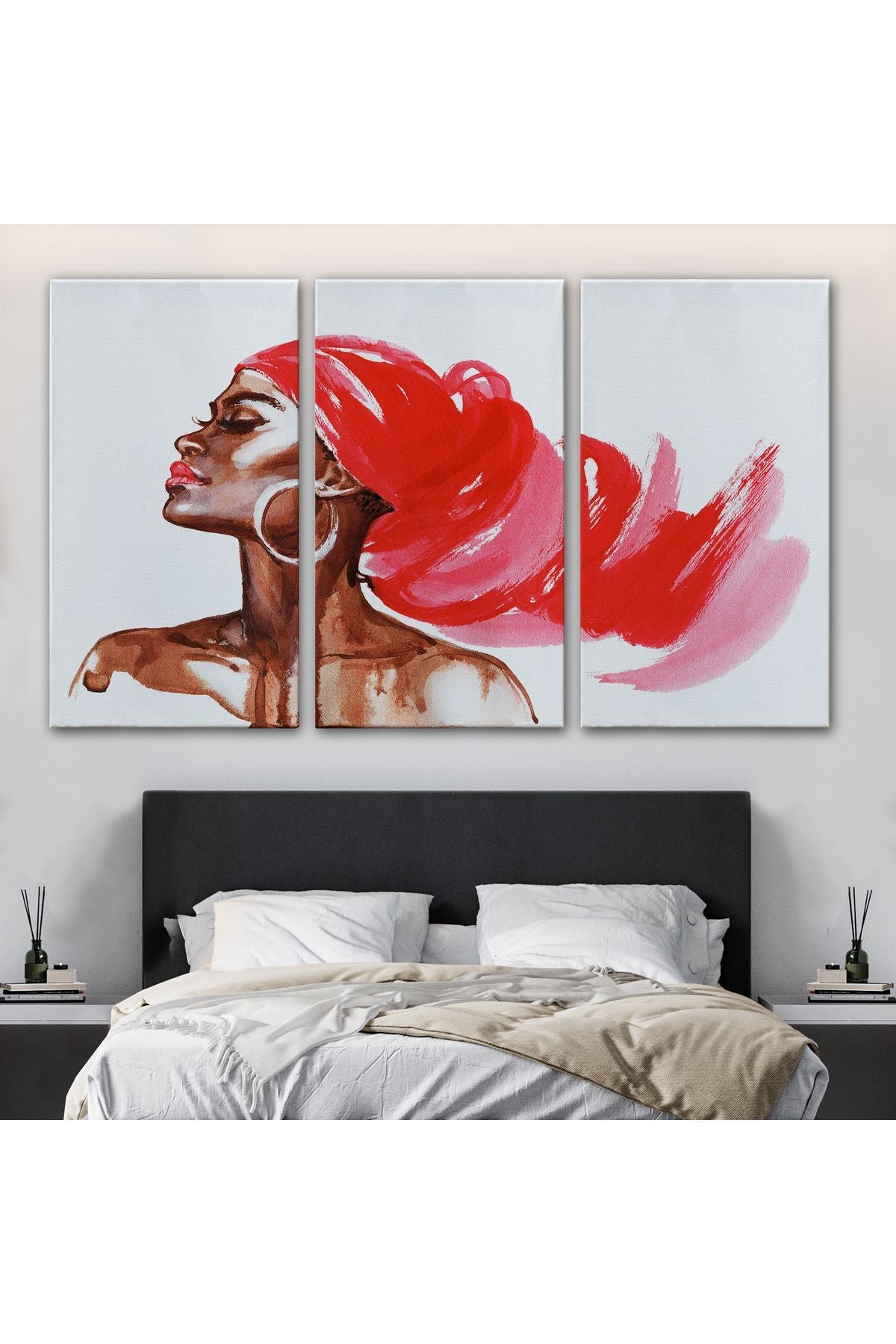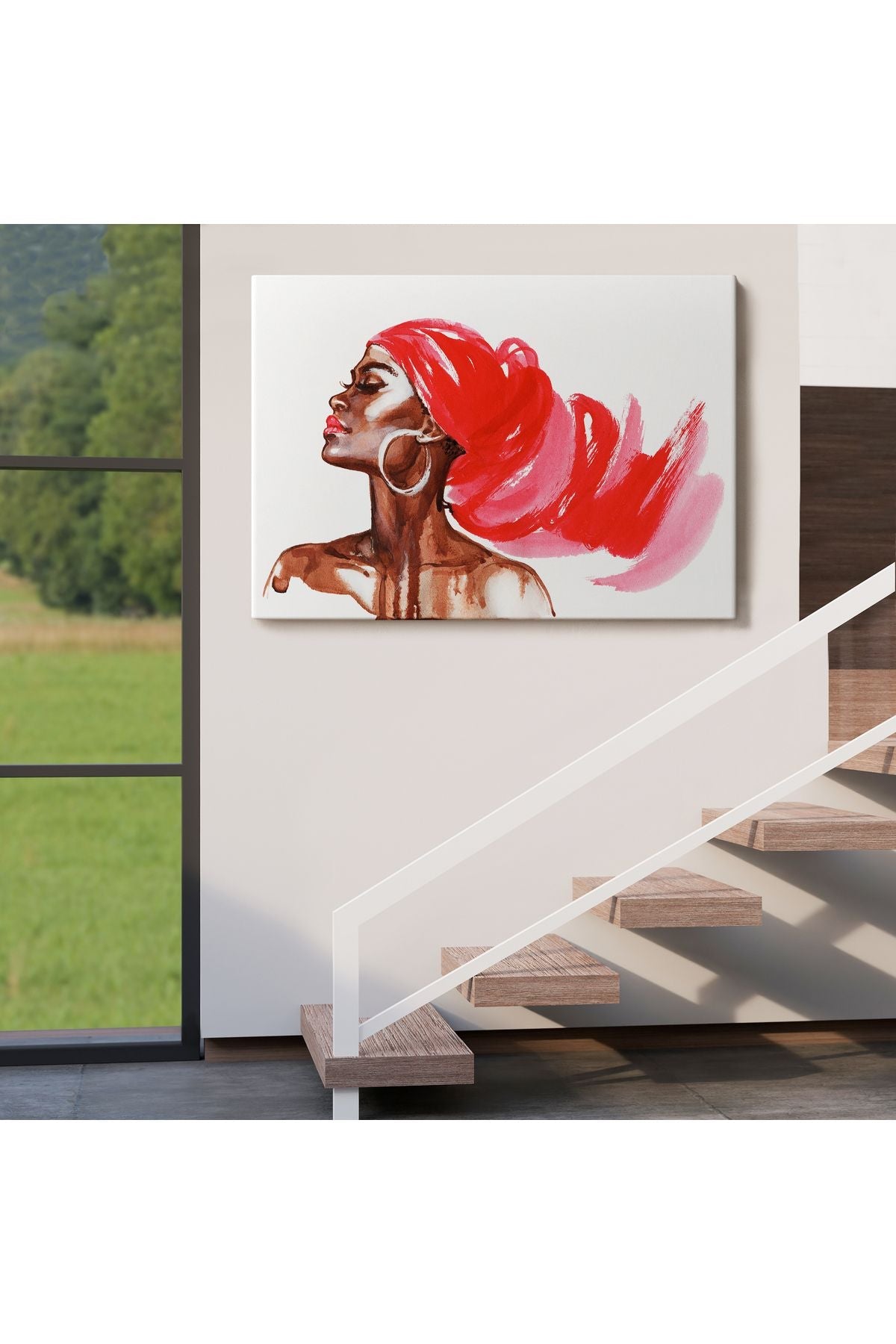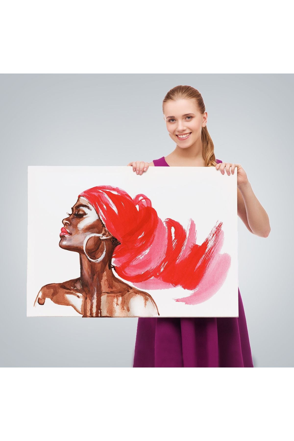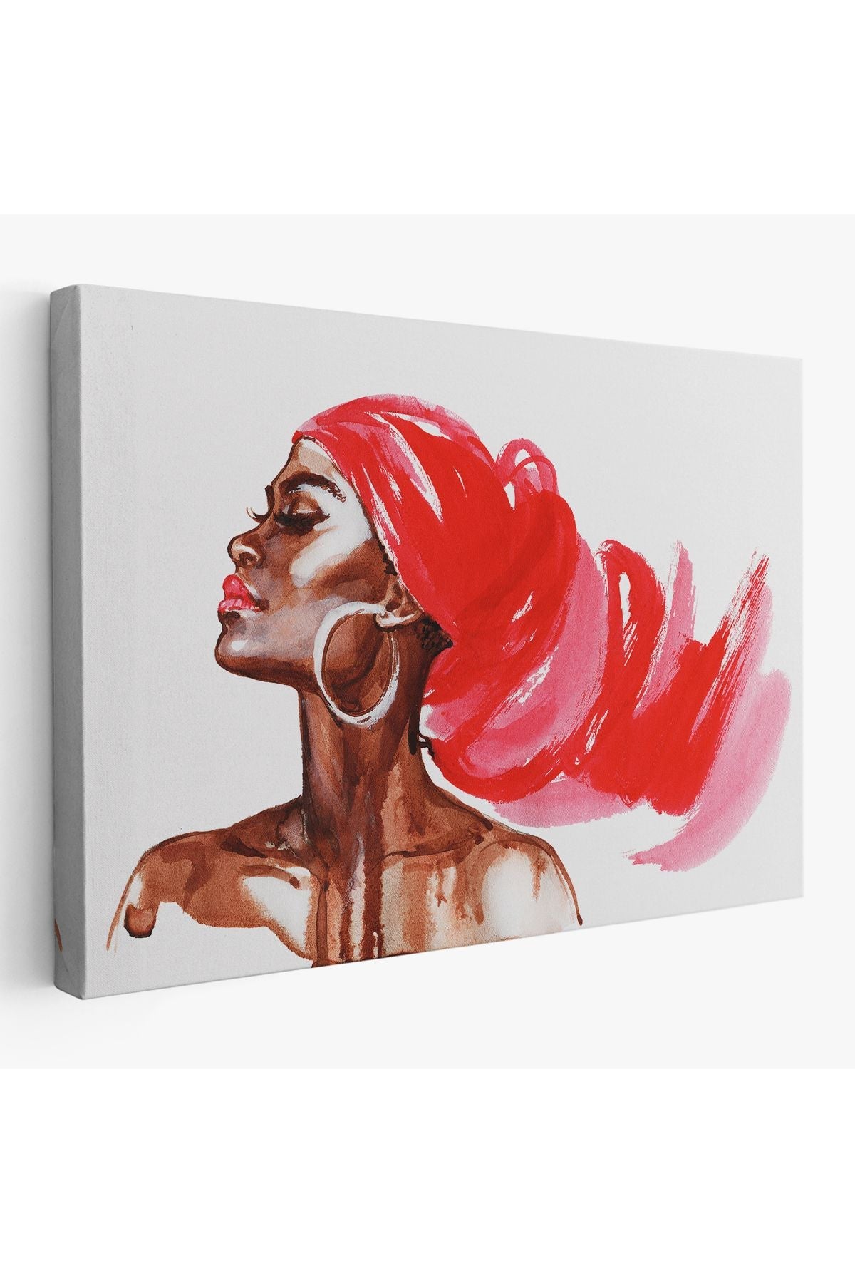 Afrikalı Kadın Suluboya Görünüm Dekoratif Kanvas Duvar Tablosu-3591