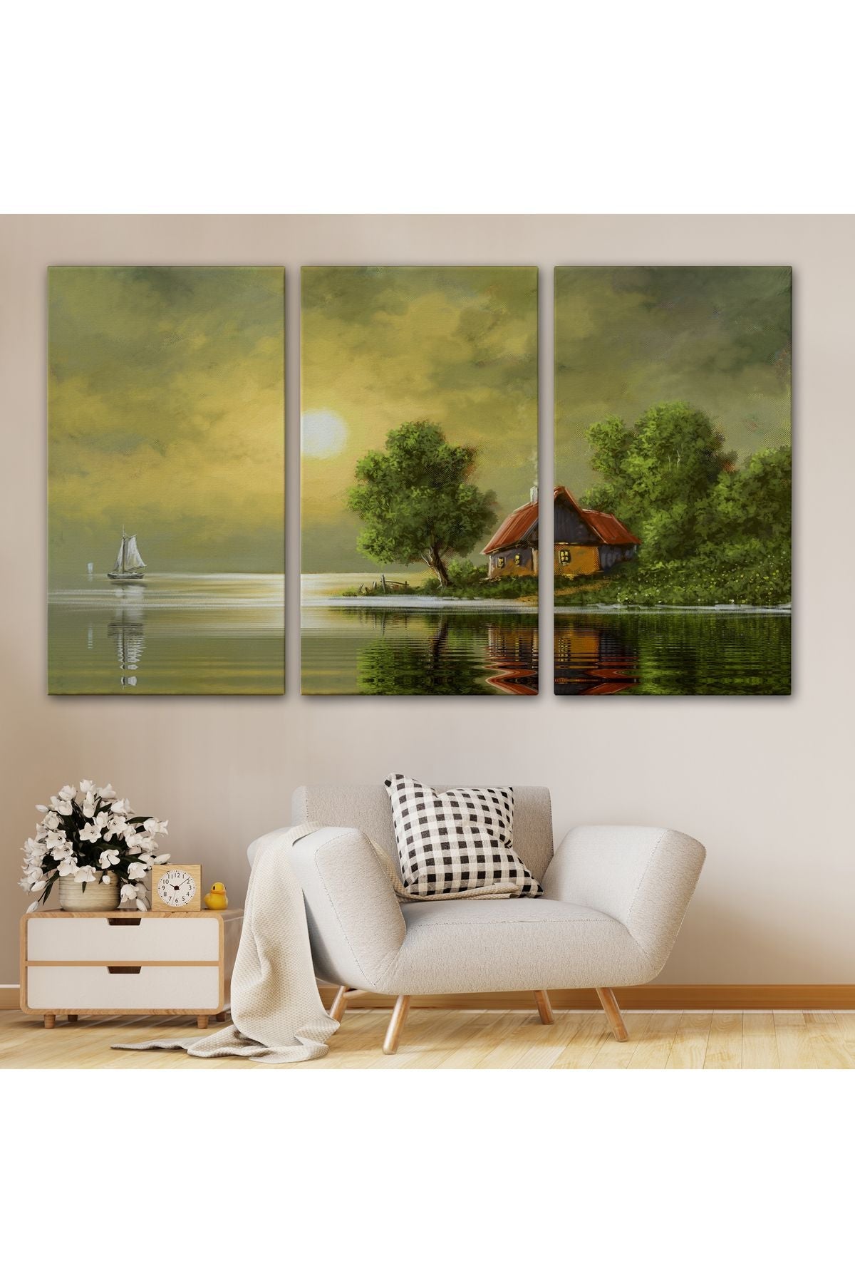 Göl Kenarındaki Köy Evi Yağlıboya Görünüm Dekoratif Kanvas Duvar Tablosu-3592