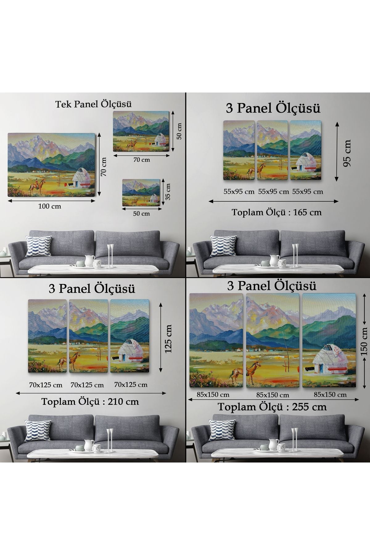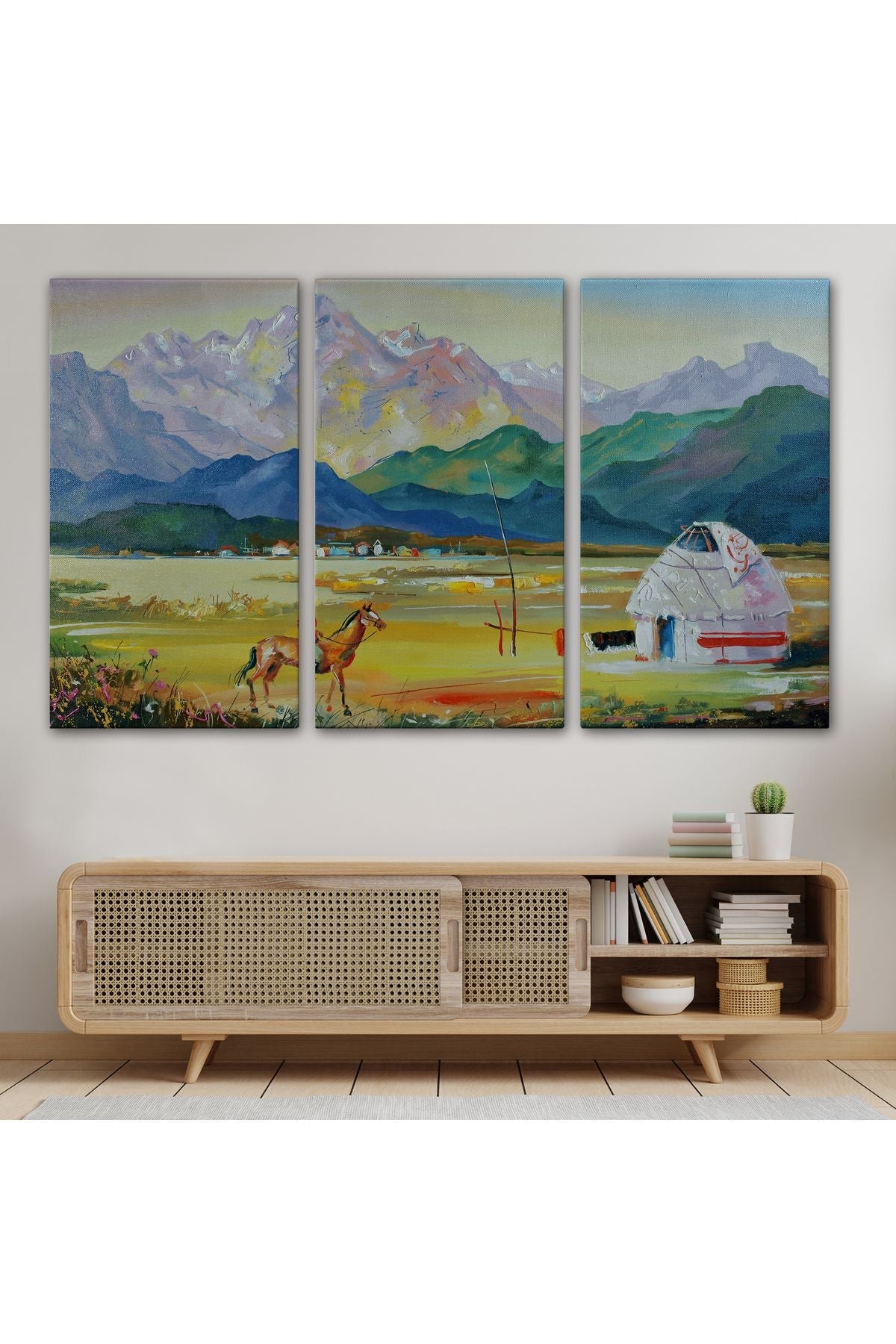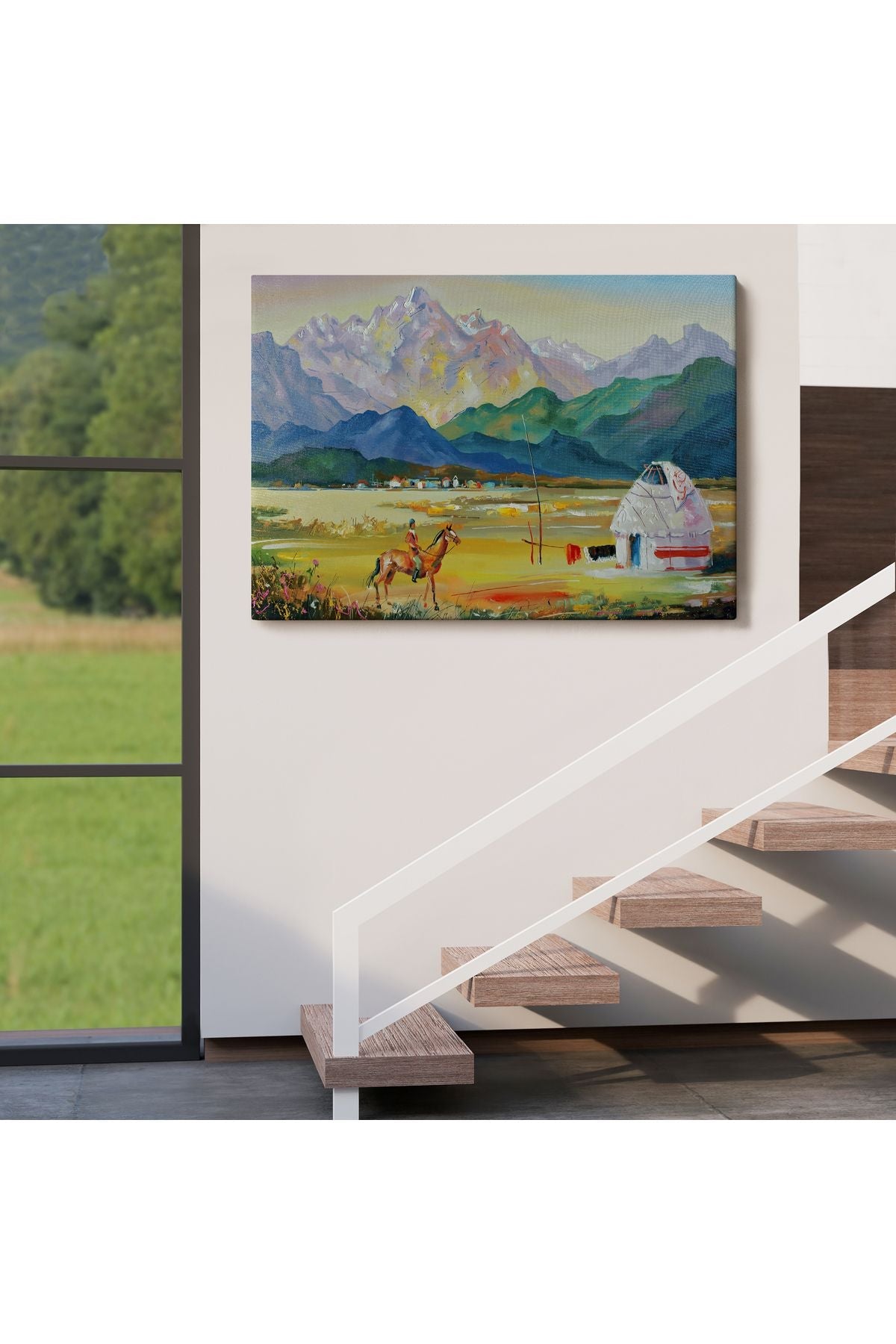Kazakistan da Bir Göçebe Çadırı Yağlıboya Görünüm Dekoratif Kanvas Duvar Tablosu-3601