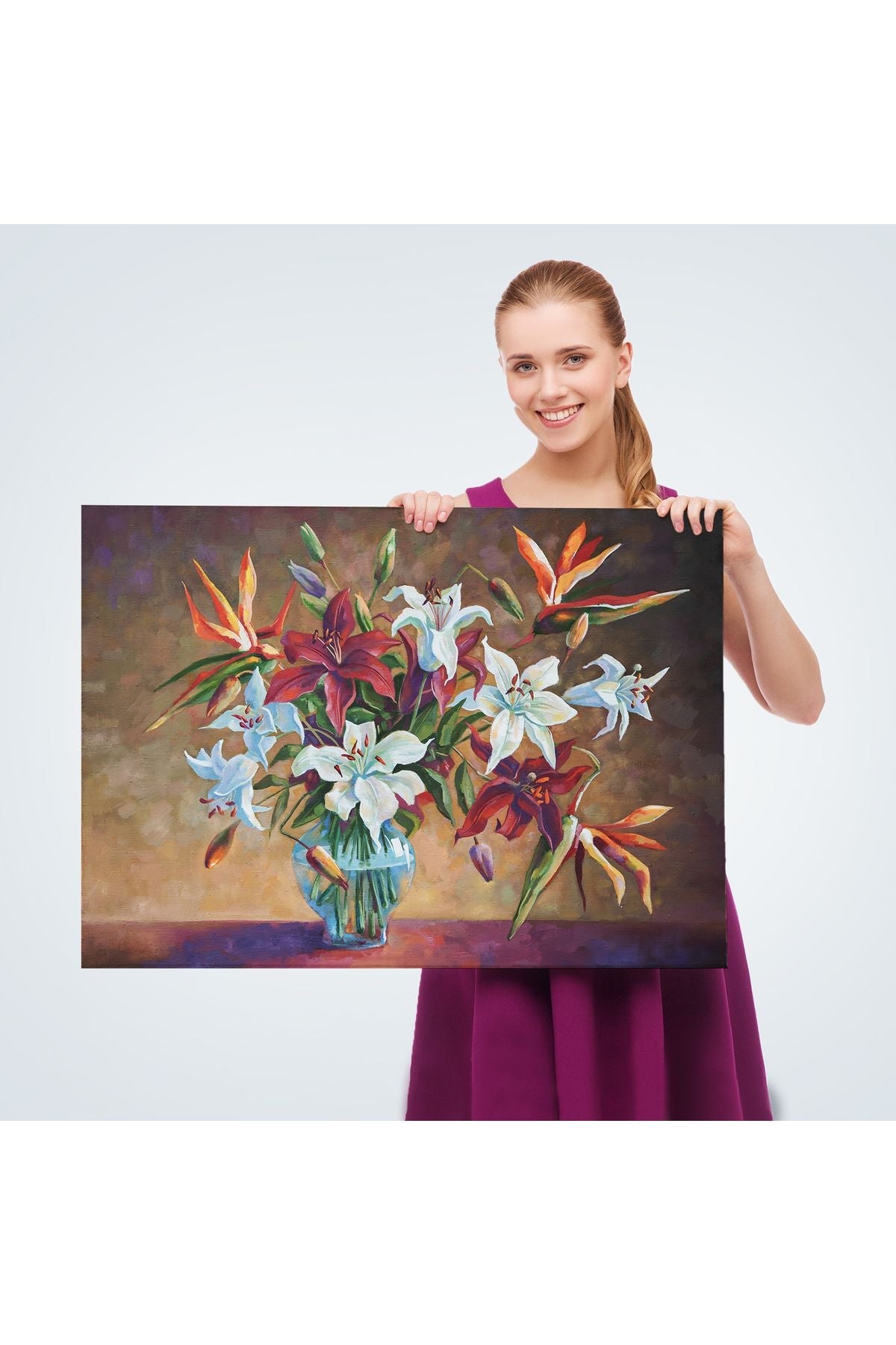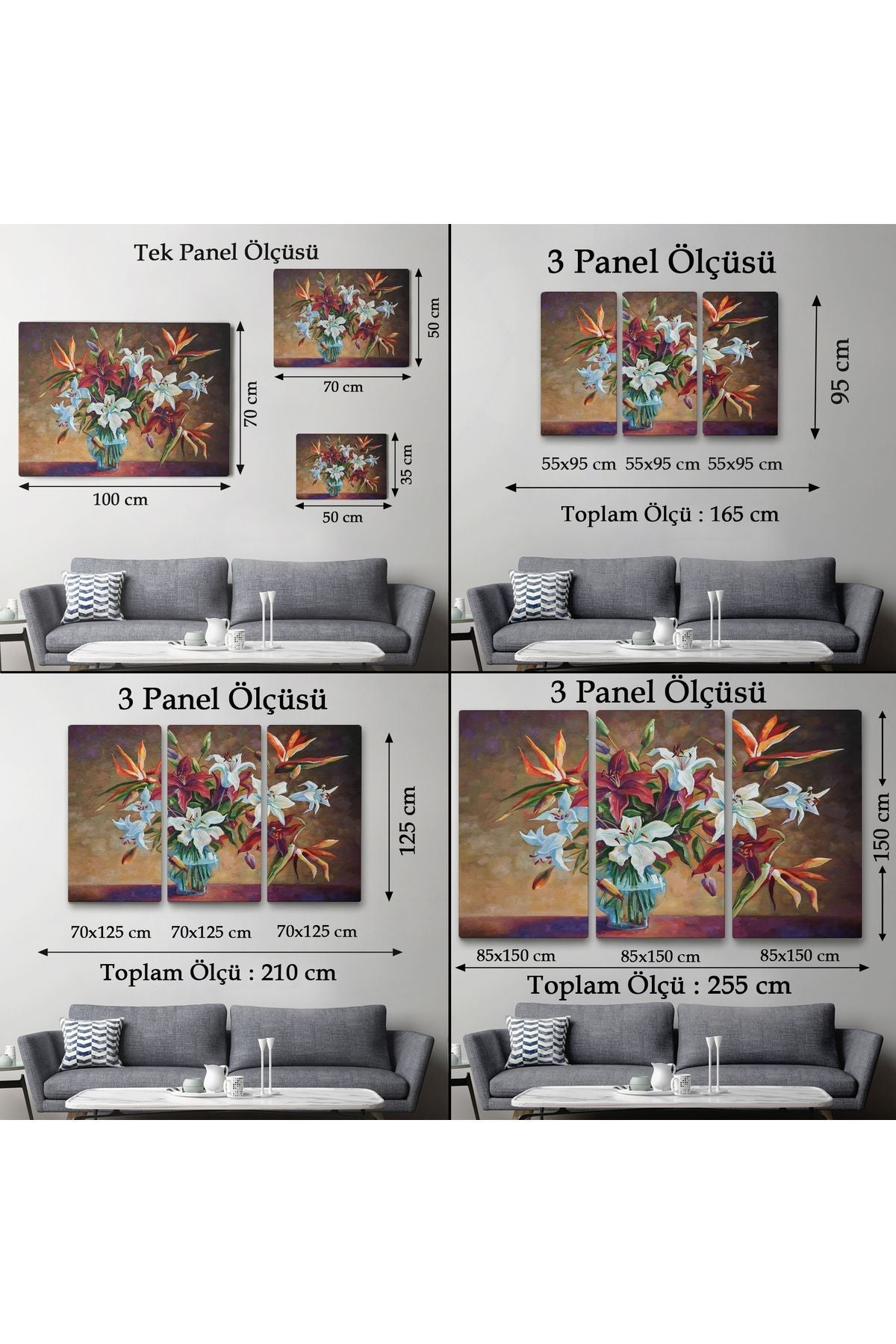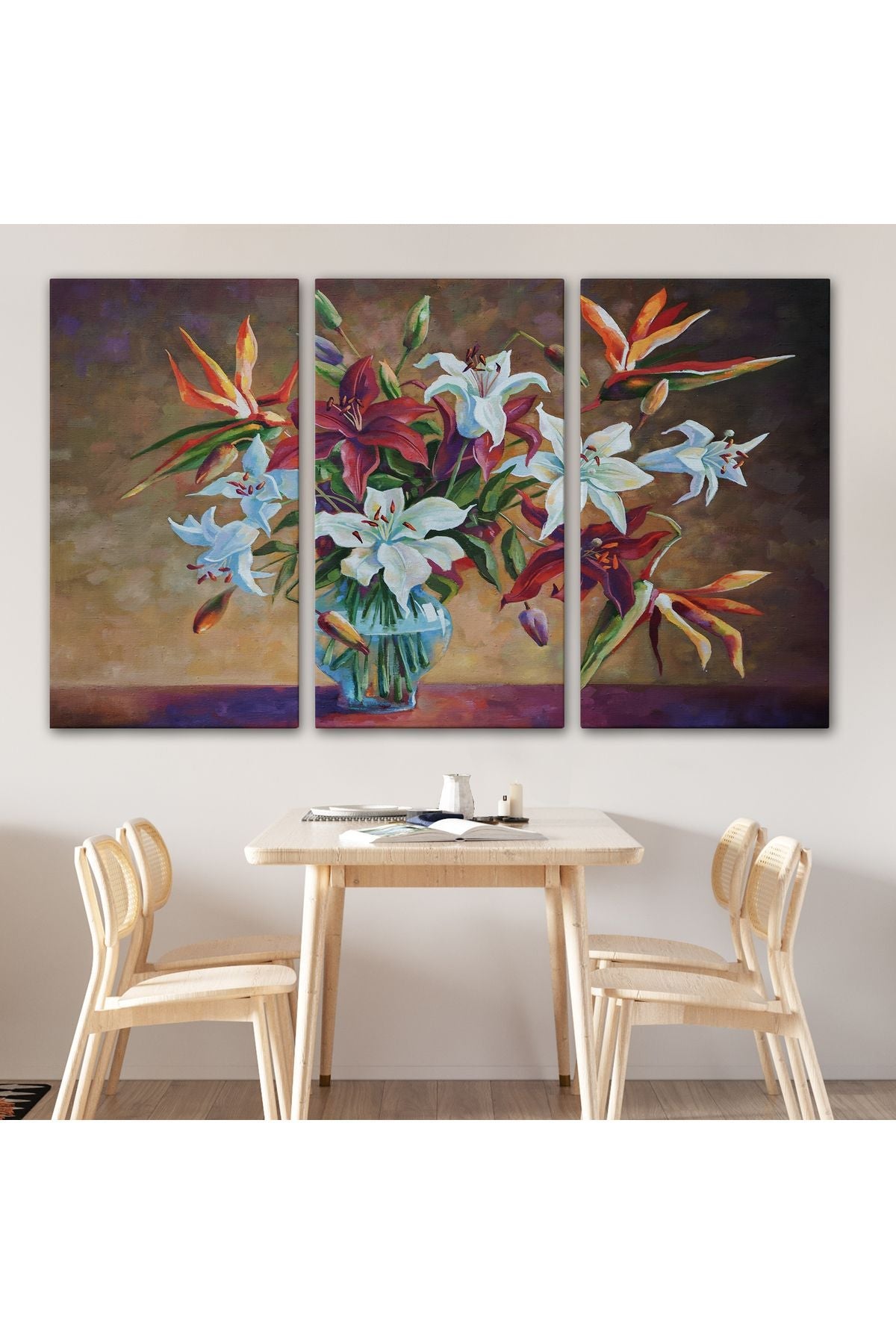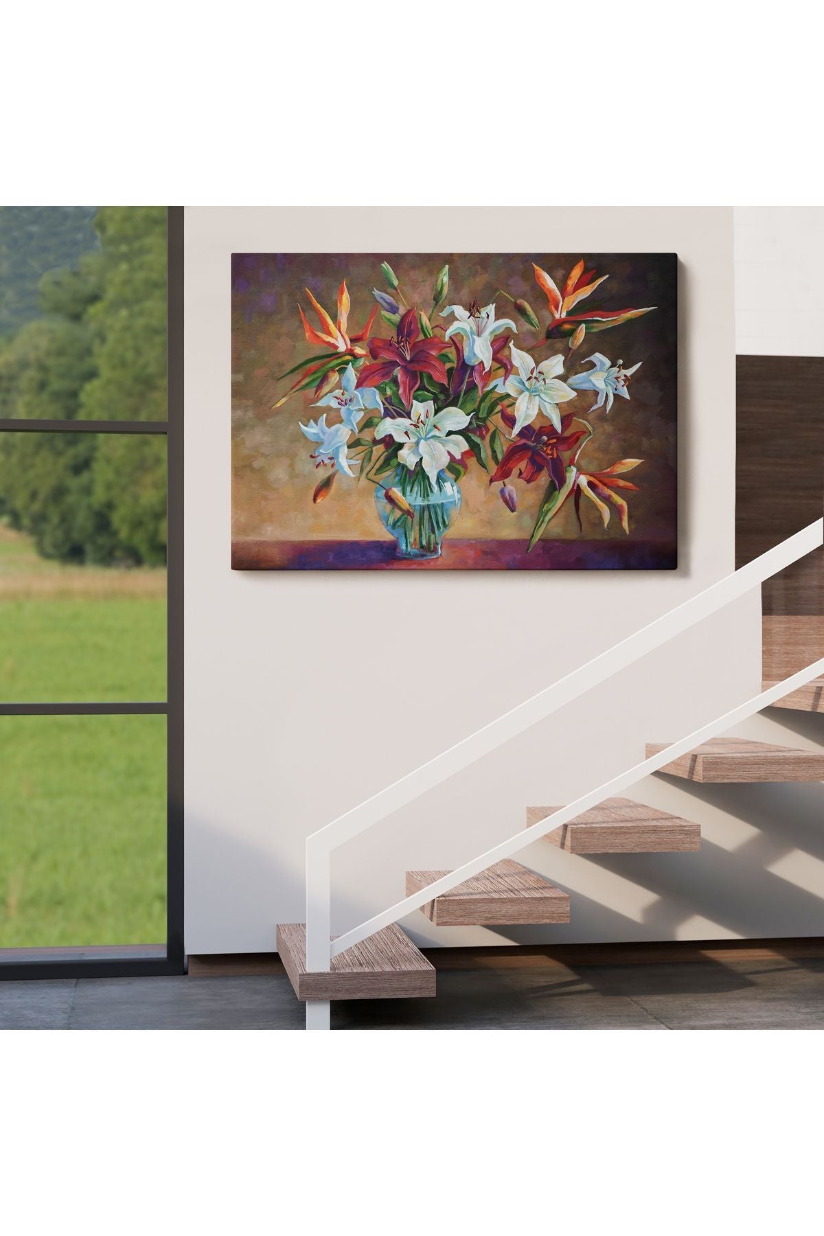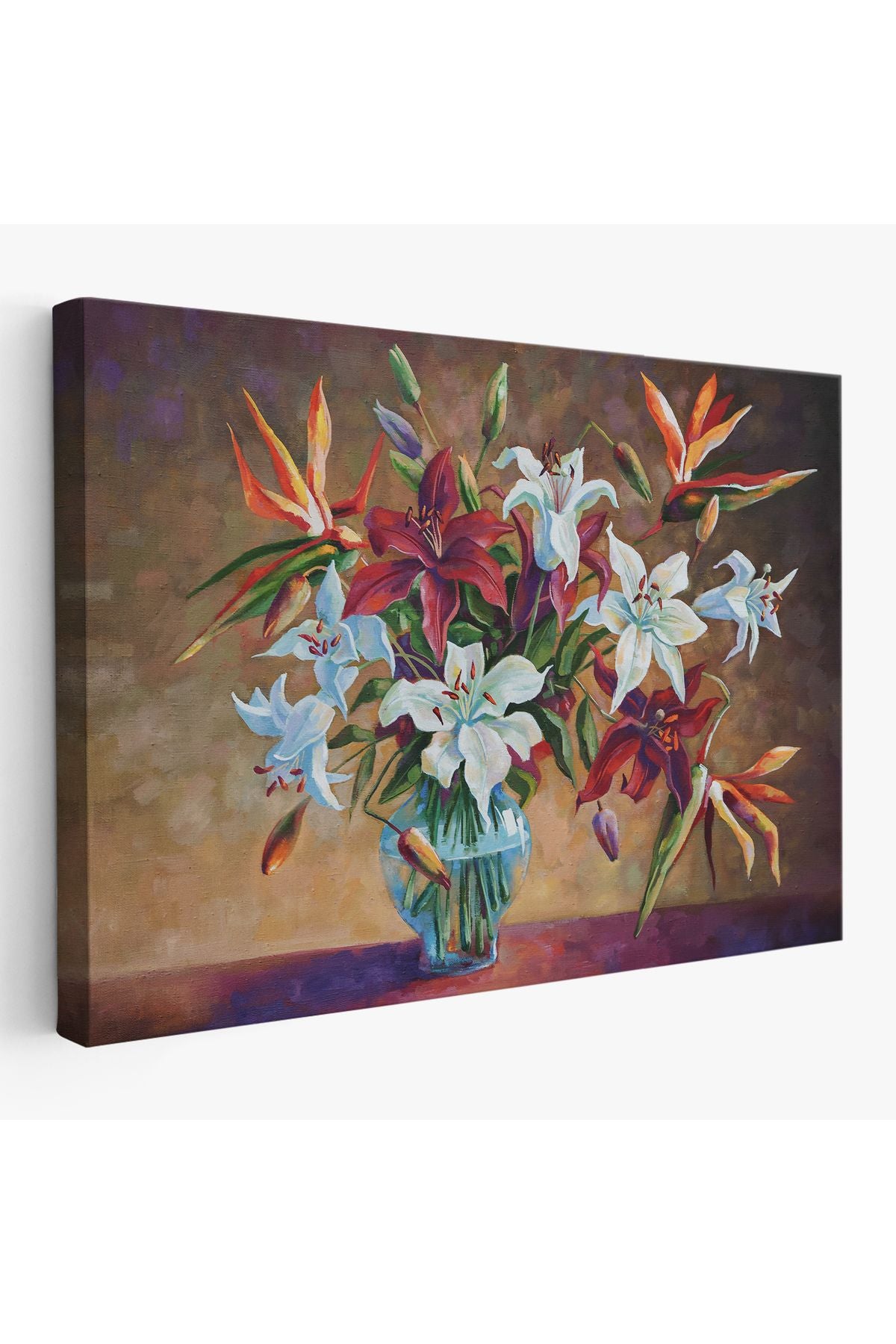 DB Zambak Çiçekleri Yağlıboya Görünüm Dekoratif Kanvas Duvar Tablosu-3602
