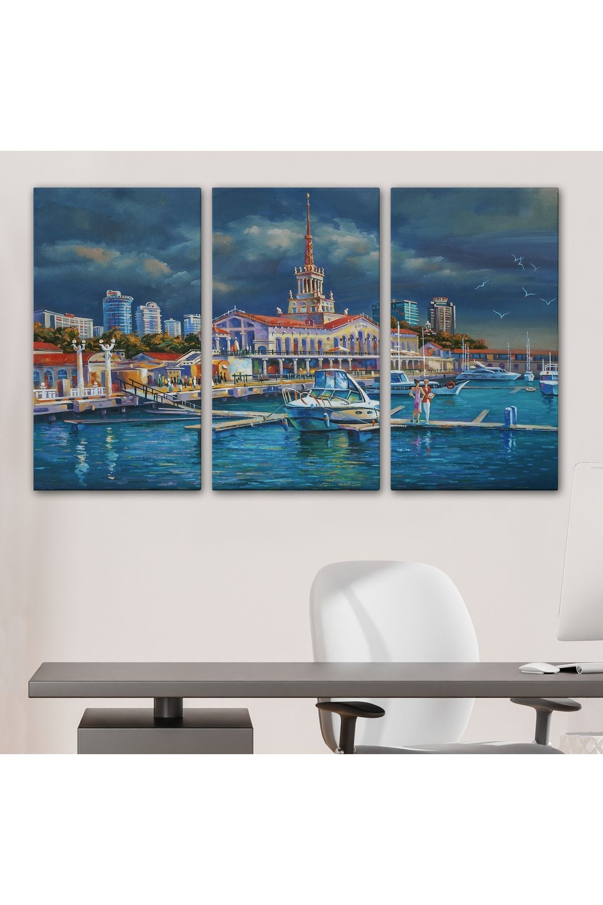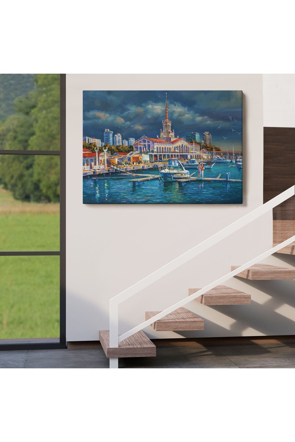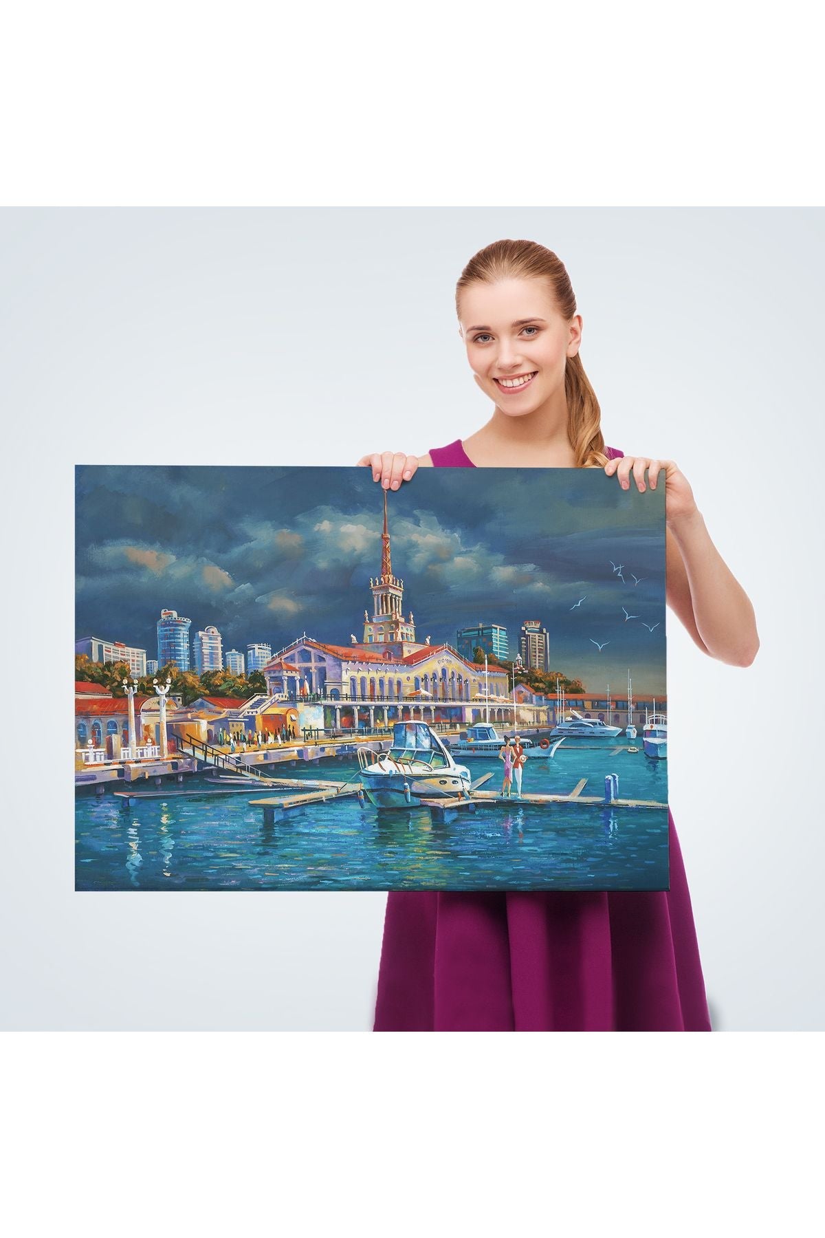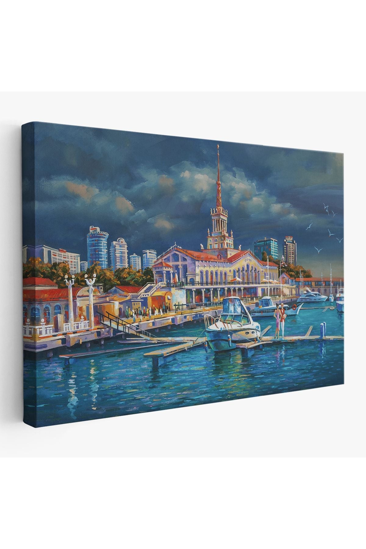 Soçhi Limanı Rusya Yağlıboya Görünüm Dekoratif Kanvas Duvar Tablosu-3604