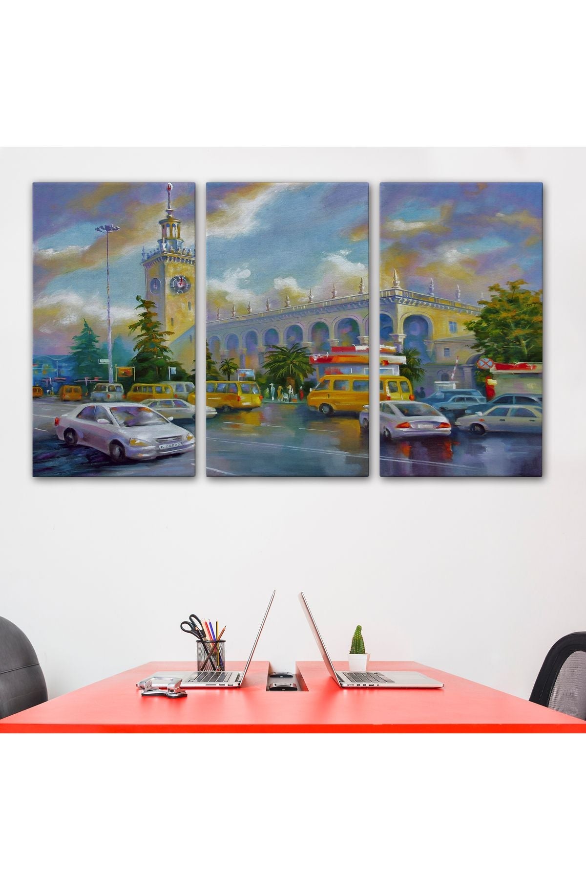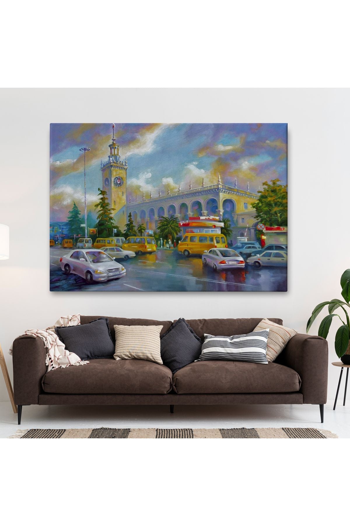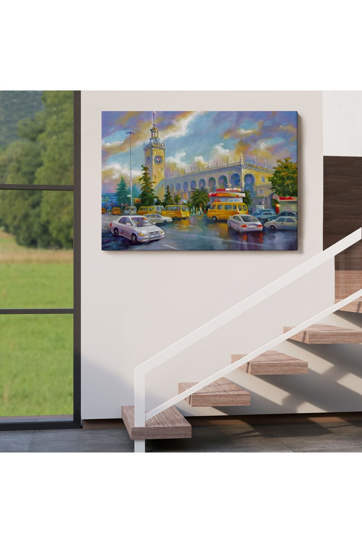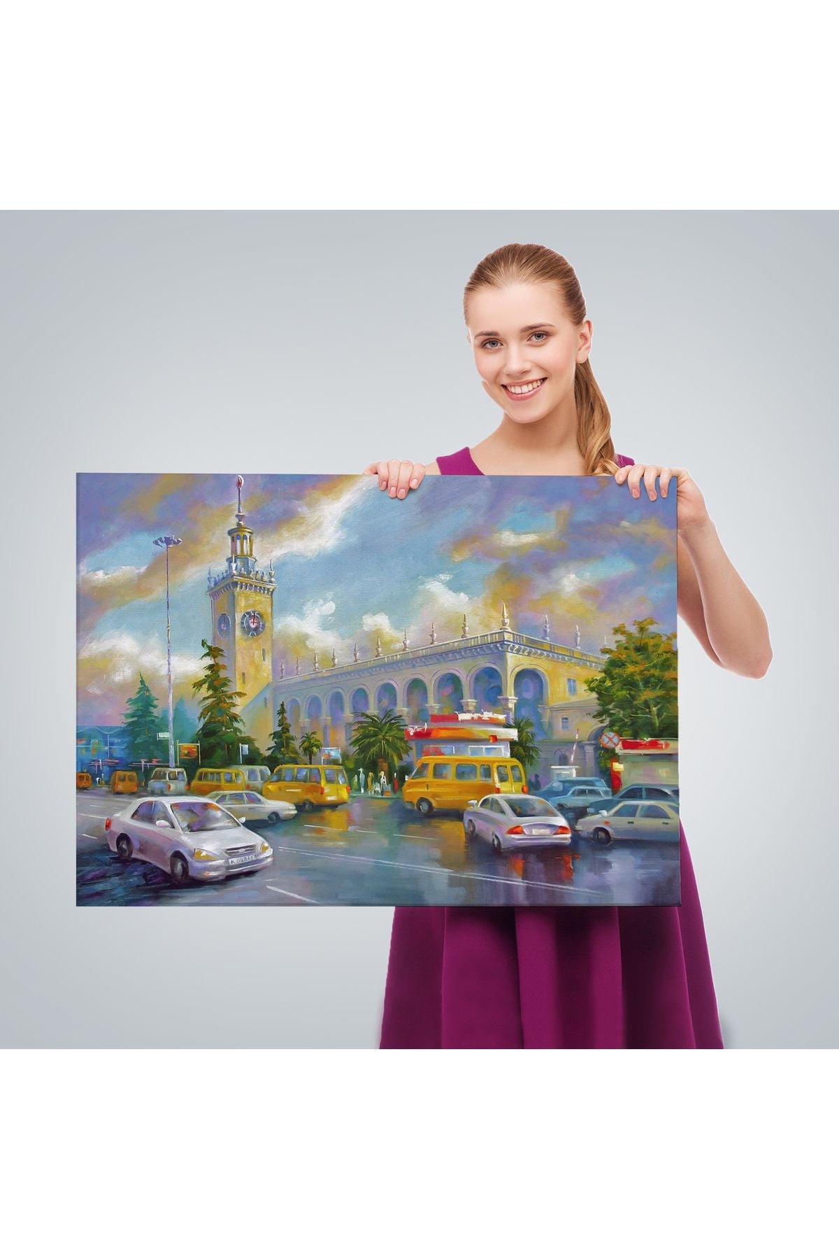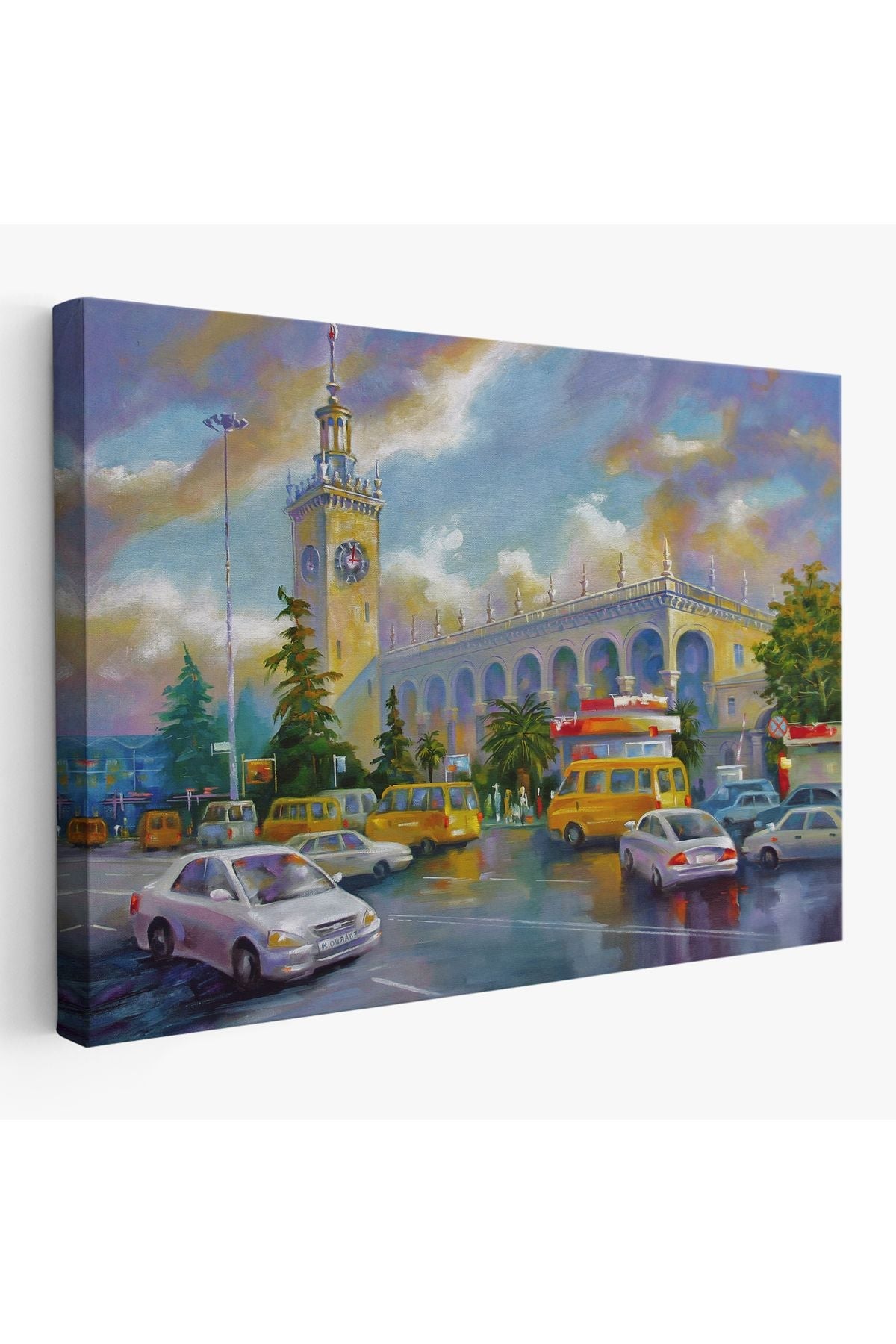 Soçhi Tren İstasyonu Yağlıboya Görünüm Dekoratif Kanvas Duvar Tablosu-3610