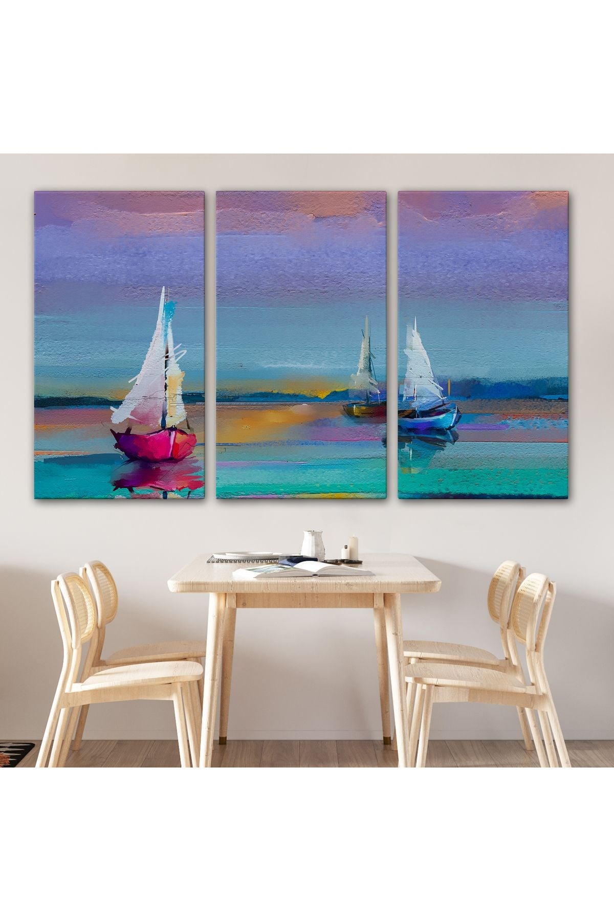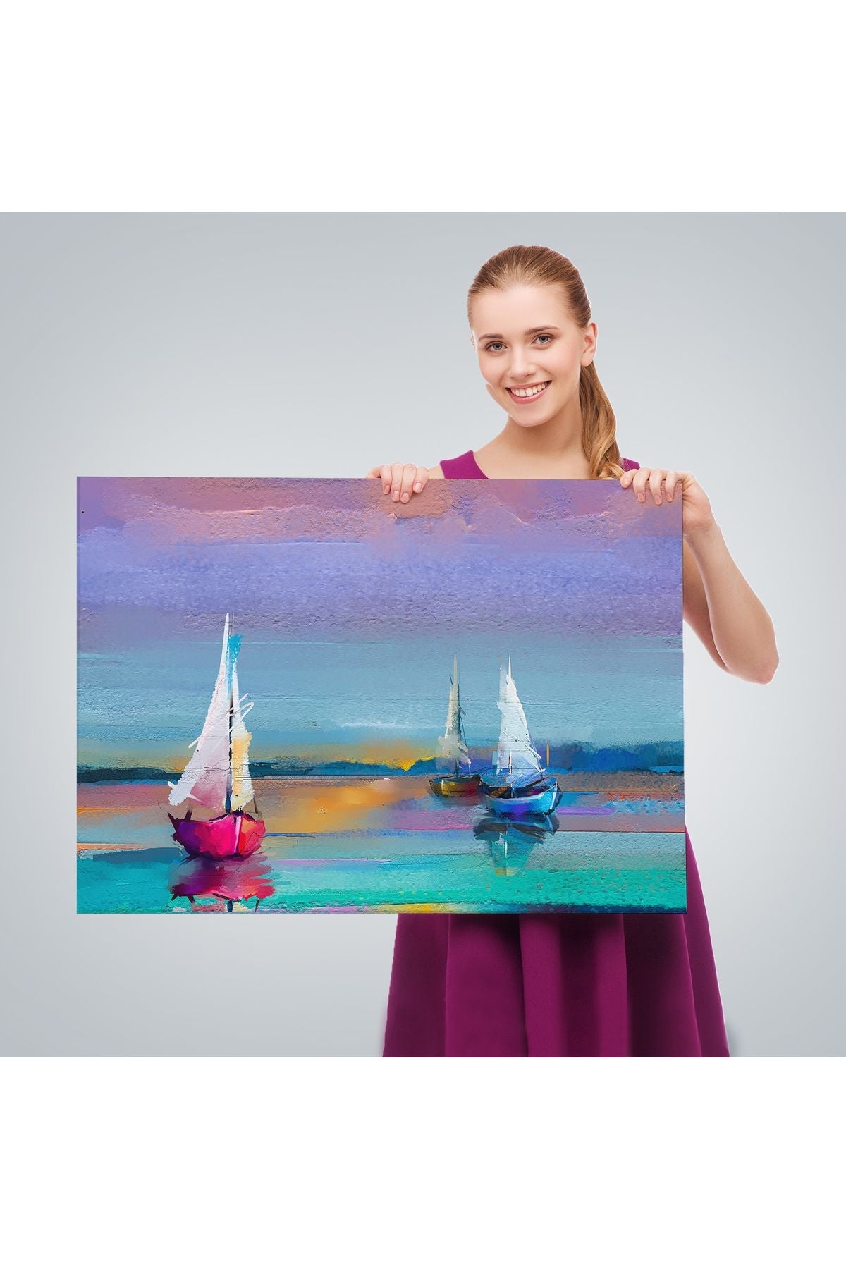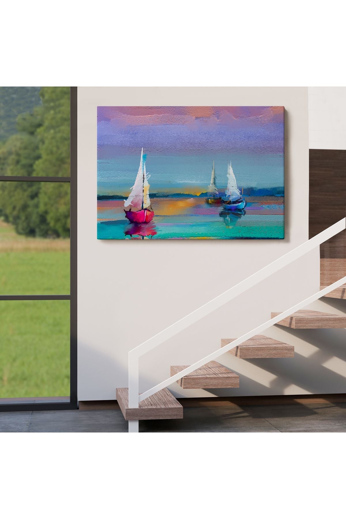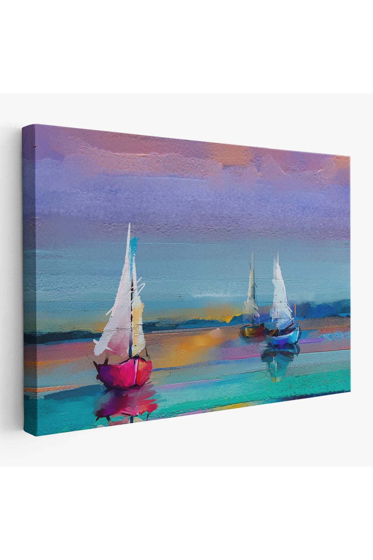 Denizdeki Yelkenliler Yağlıboya Görünüm Dekoratif Kanvas Duvar Tablosu-3616