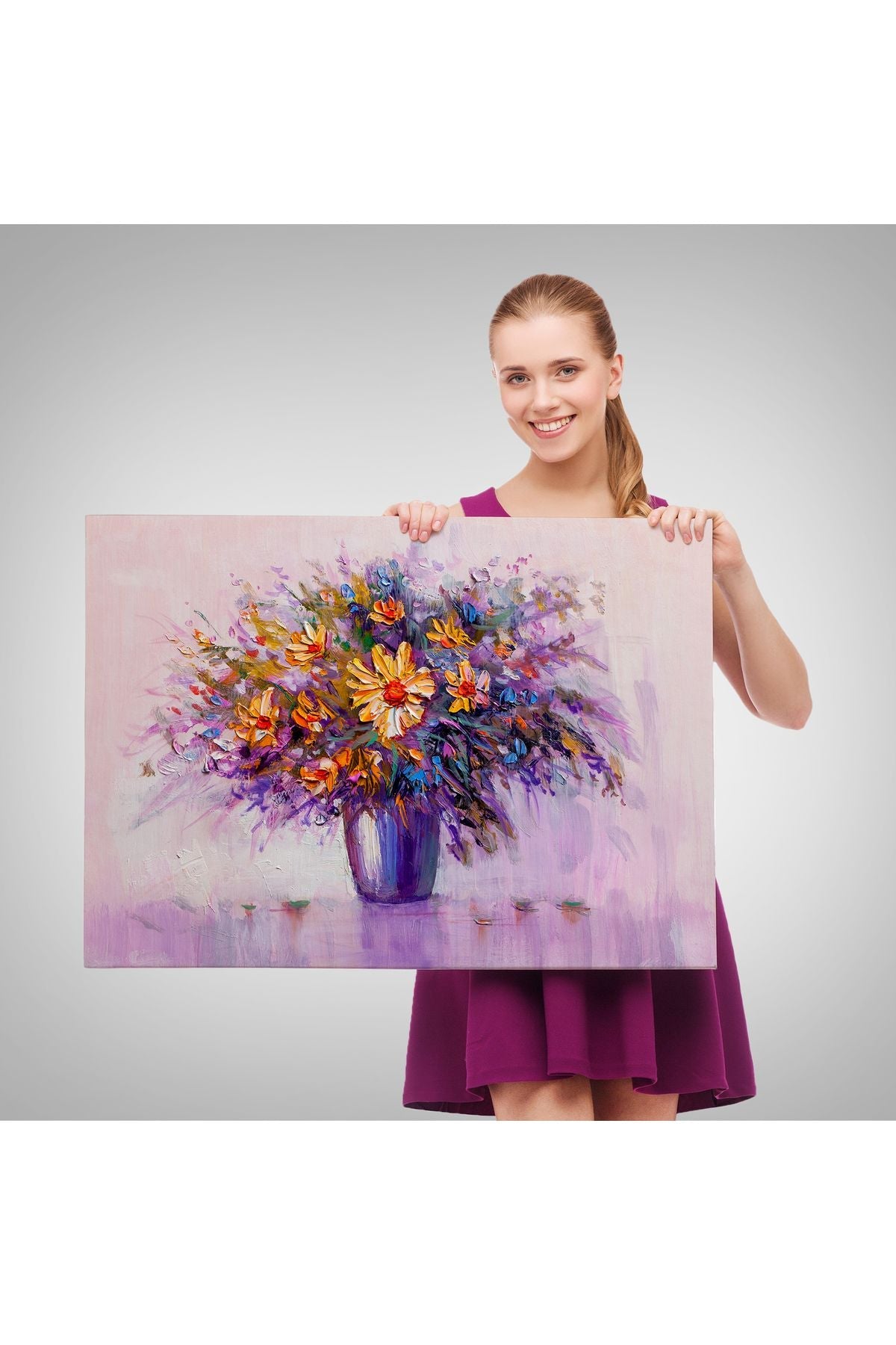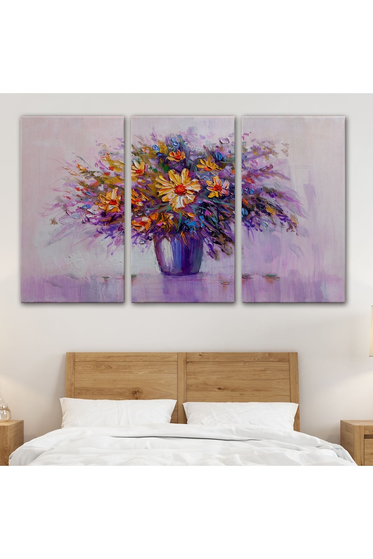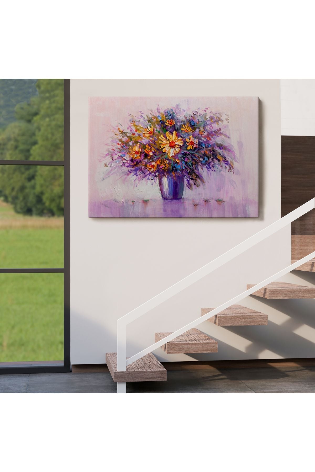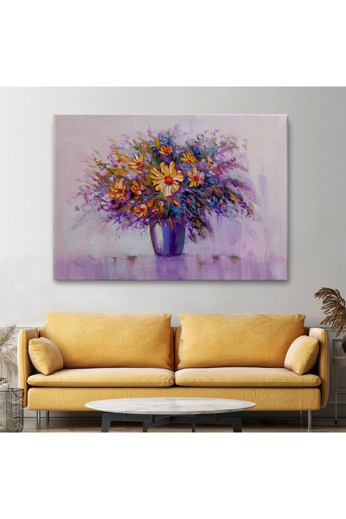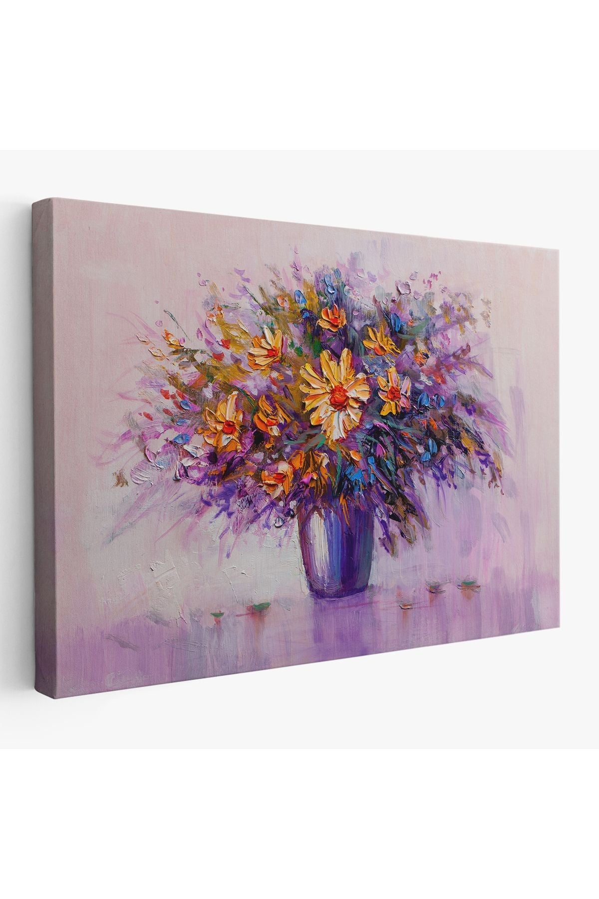 Yağlıboya Görünümlü Vazo İçerisindeki Renkli Çiçekler Duvar Tablosu-3635