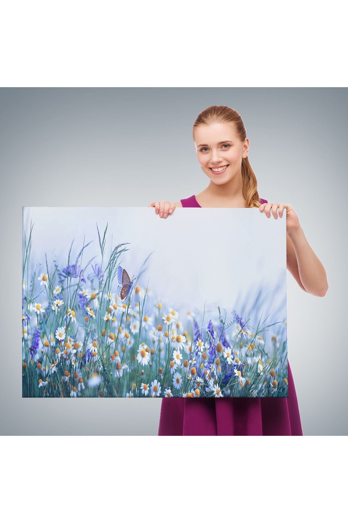 Özel Tasarım, Dekortif BaskıKır Çiçekleri Ve Papatyalar Dekoratif Kanvas Tablo-3653