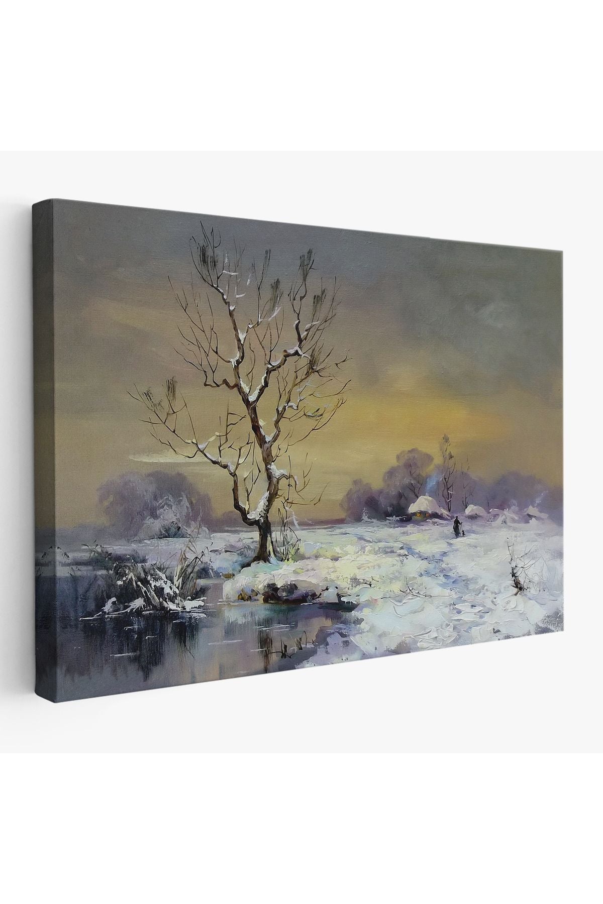 Karla Kaplı Köy Manzarası Duvar Tablosu-3661