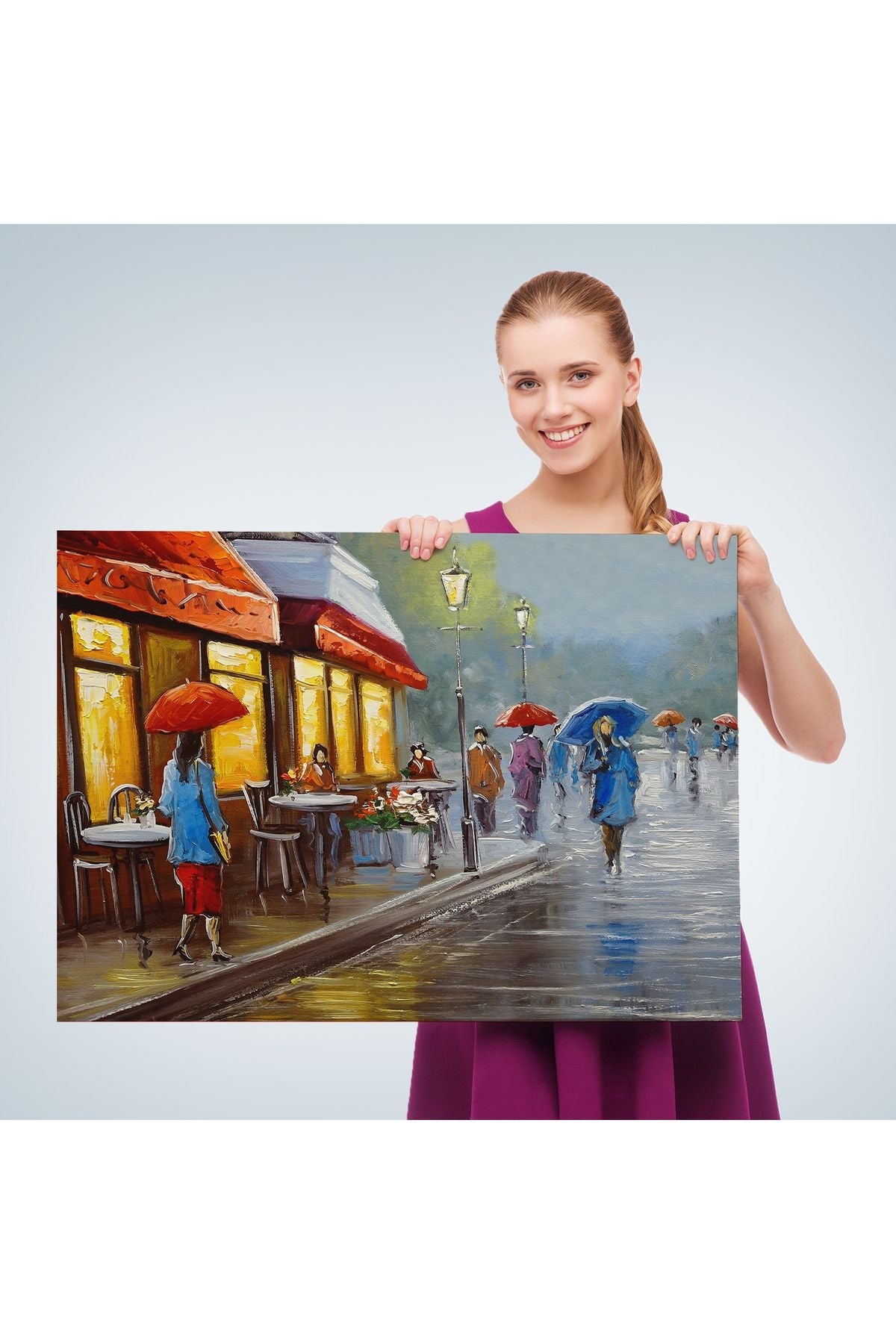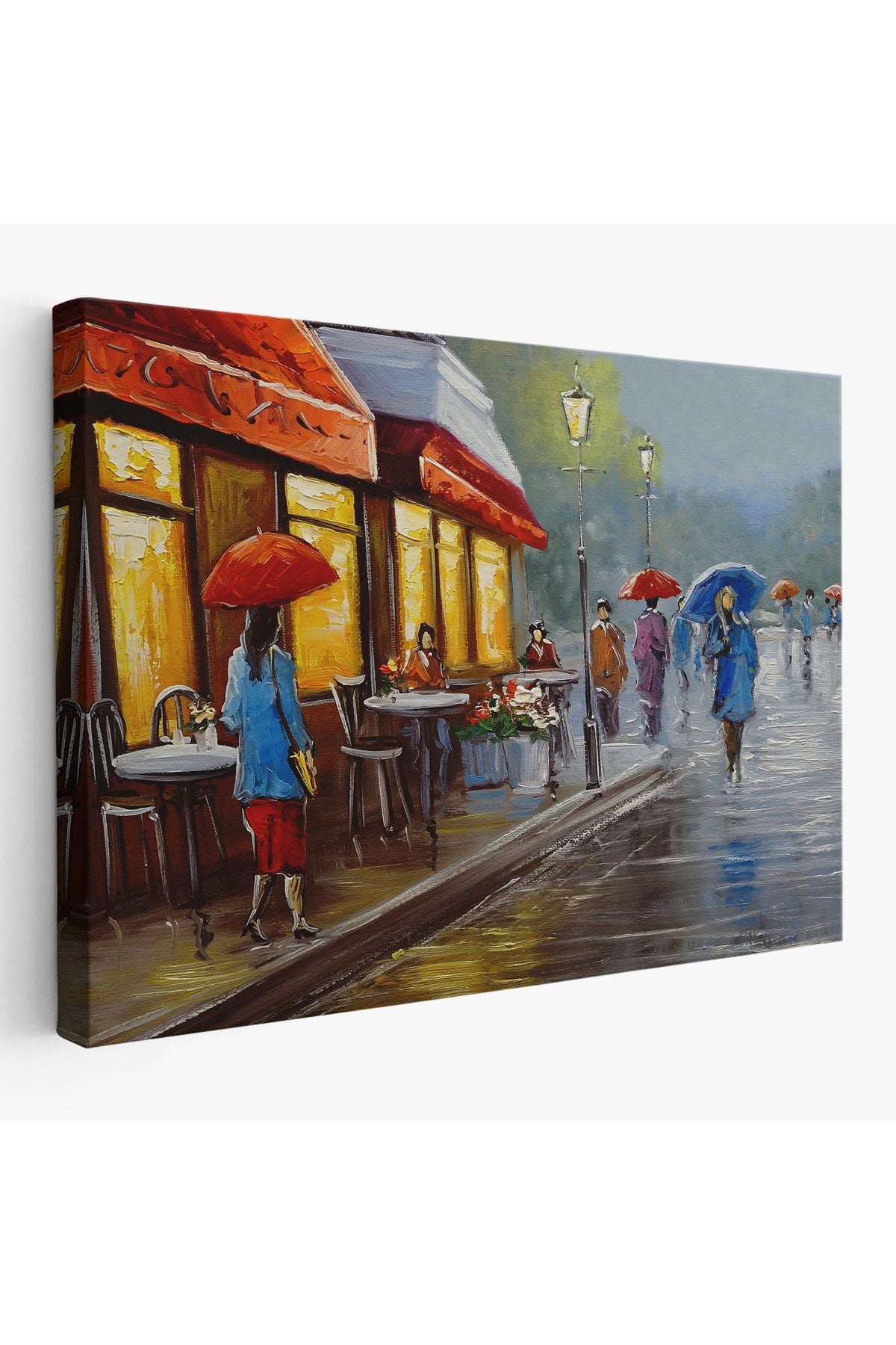 Yağmurlu Bir Gün Yağlıboya Görünüm Dekoratif Kanvas Duvar Tablosu-3669