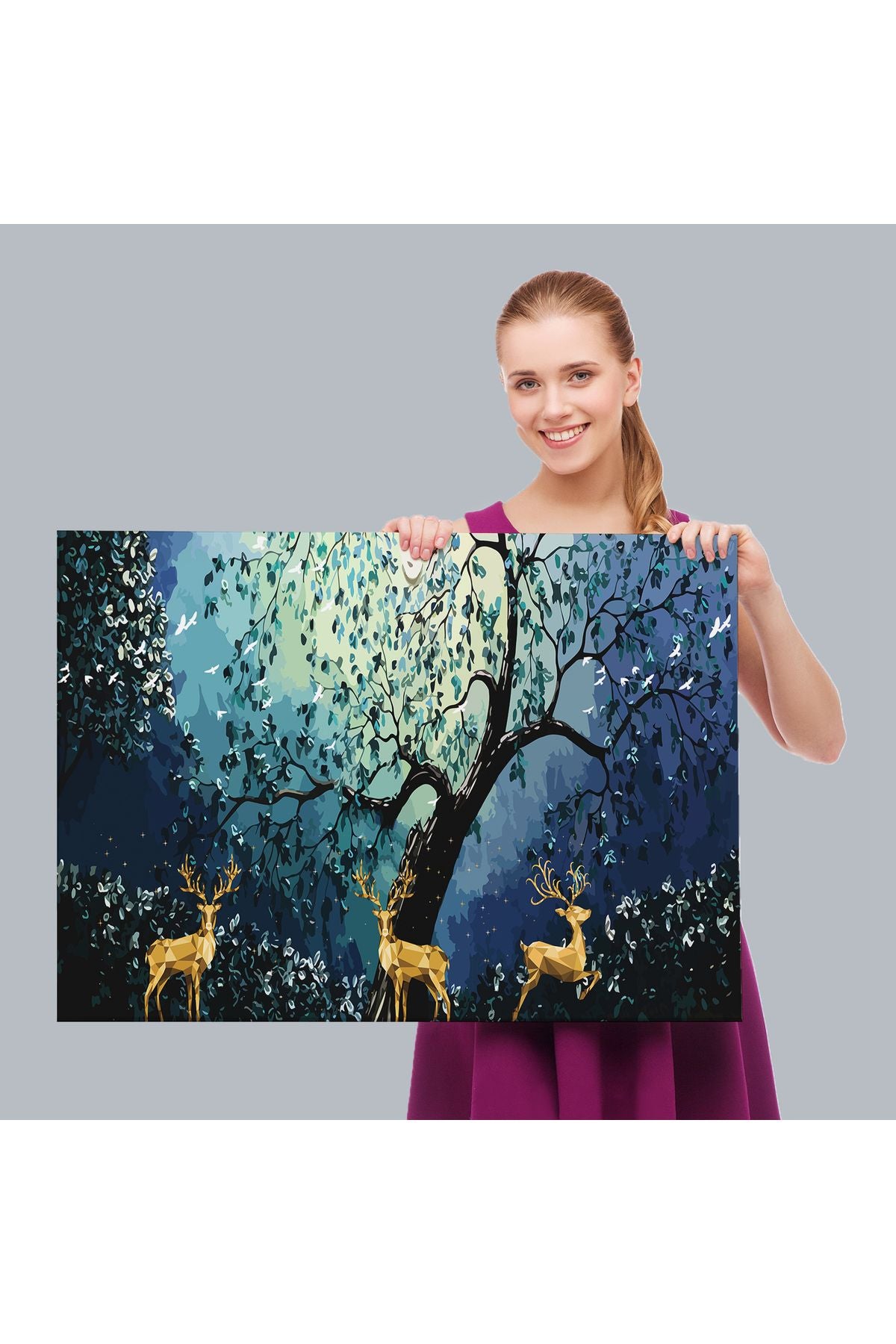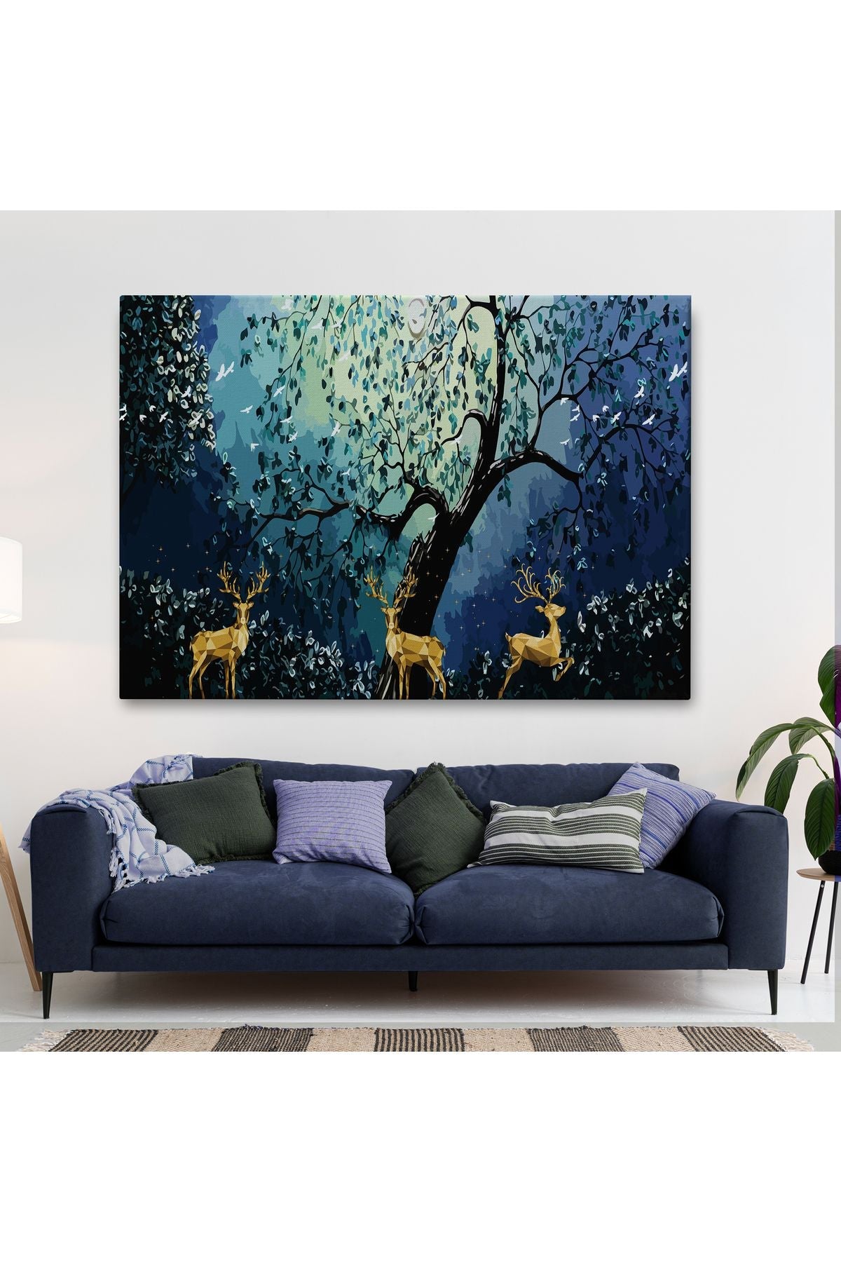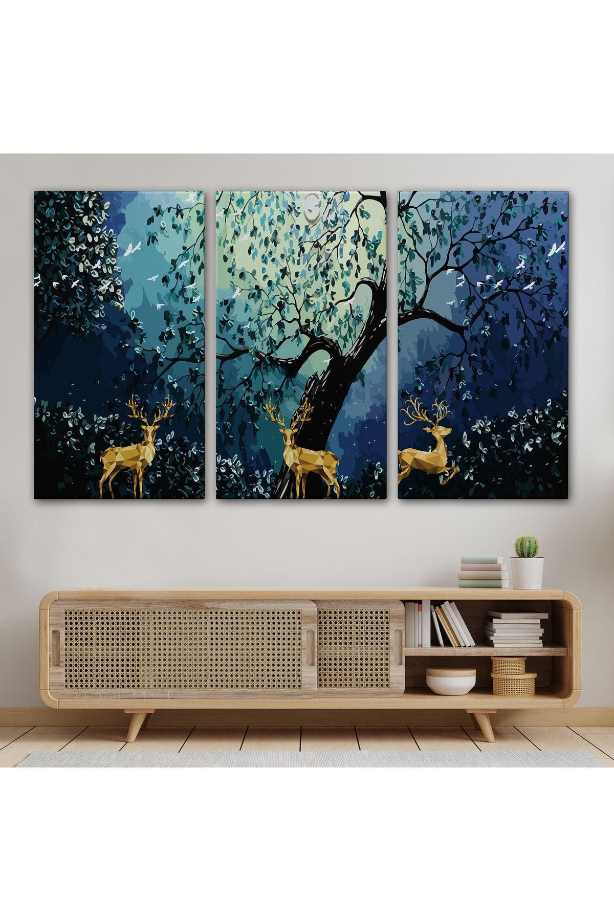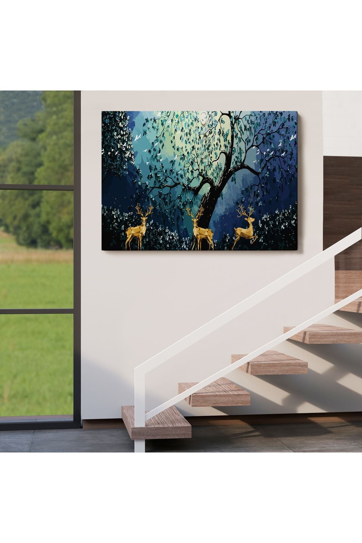 Modern Soyut Tarzda Altın Geyikler Dekoratif Tablo-3687