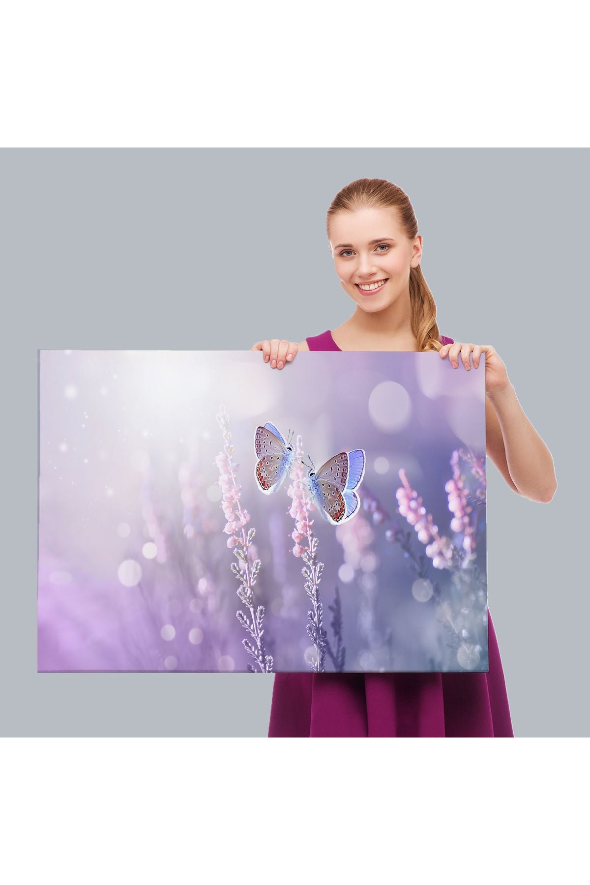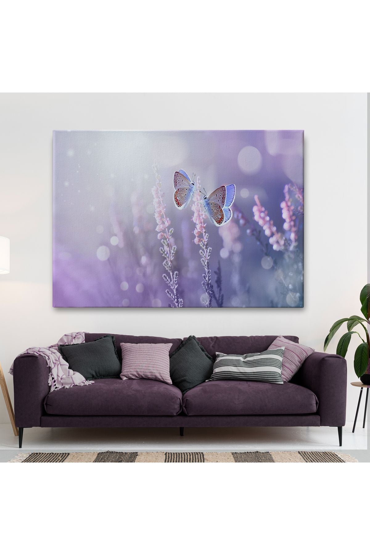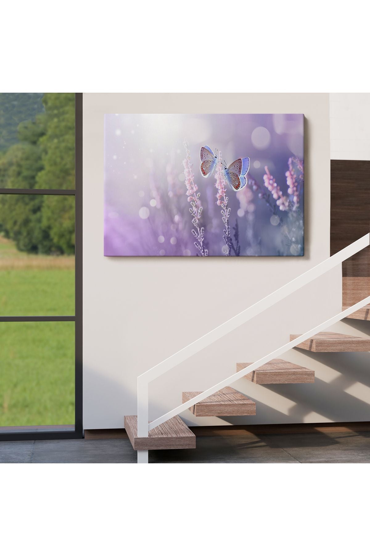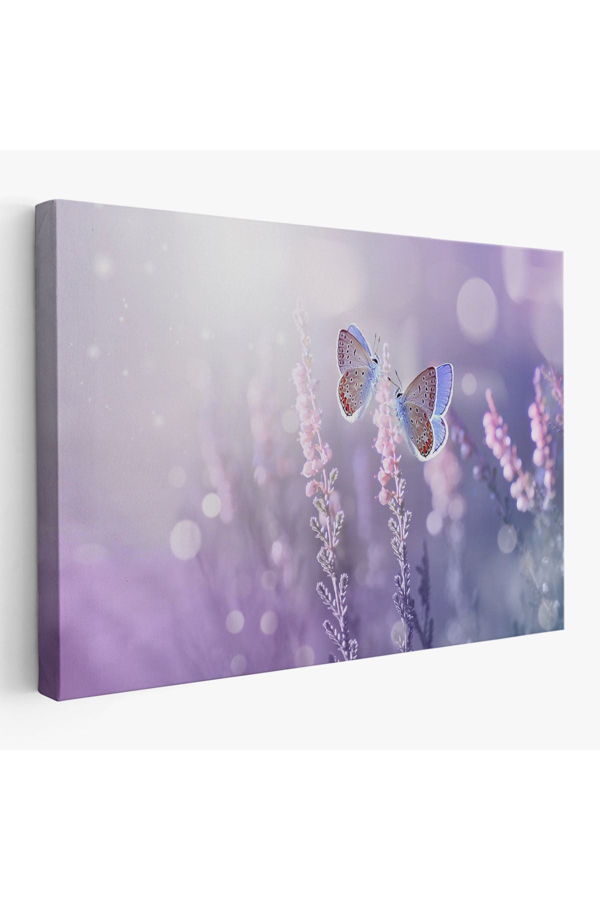 Dekoratif Kanvas Tablo-Lavanta Çiçeği ve Zarif Kelebekler Duvar Tablosu 3704