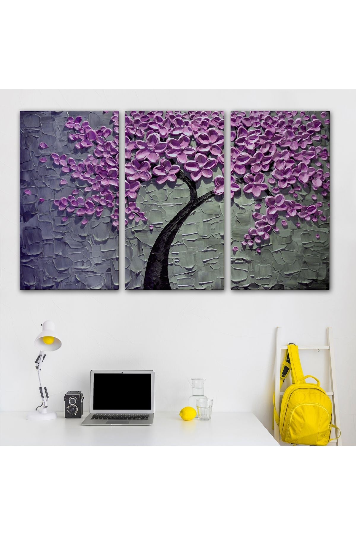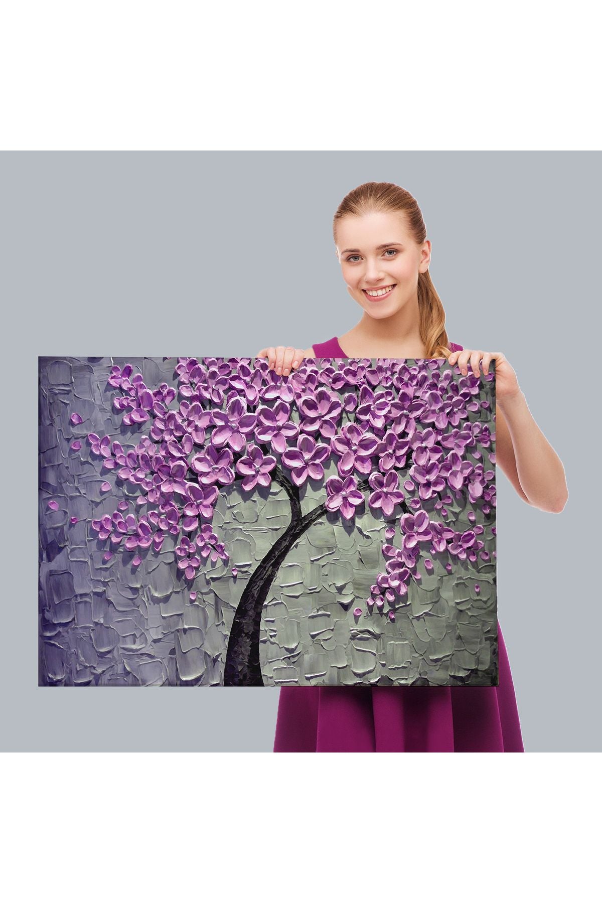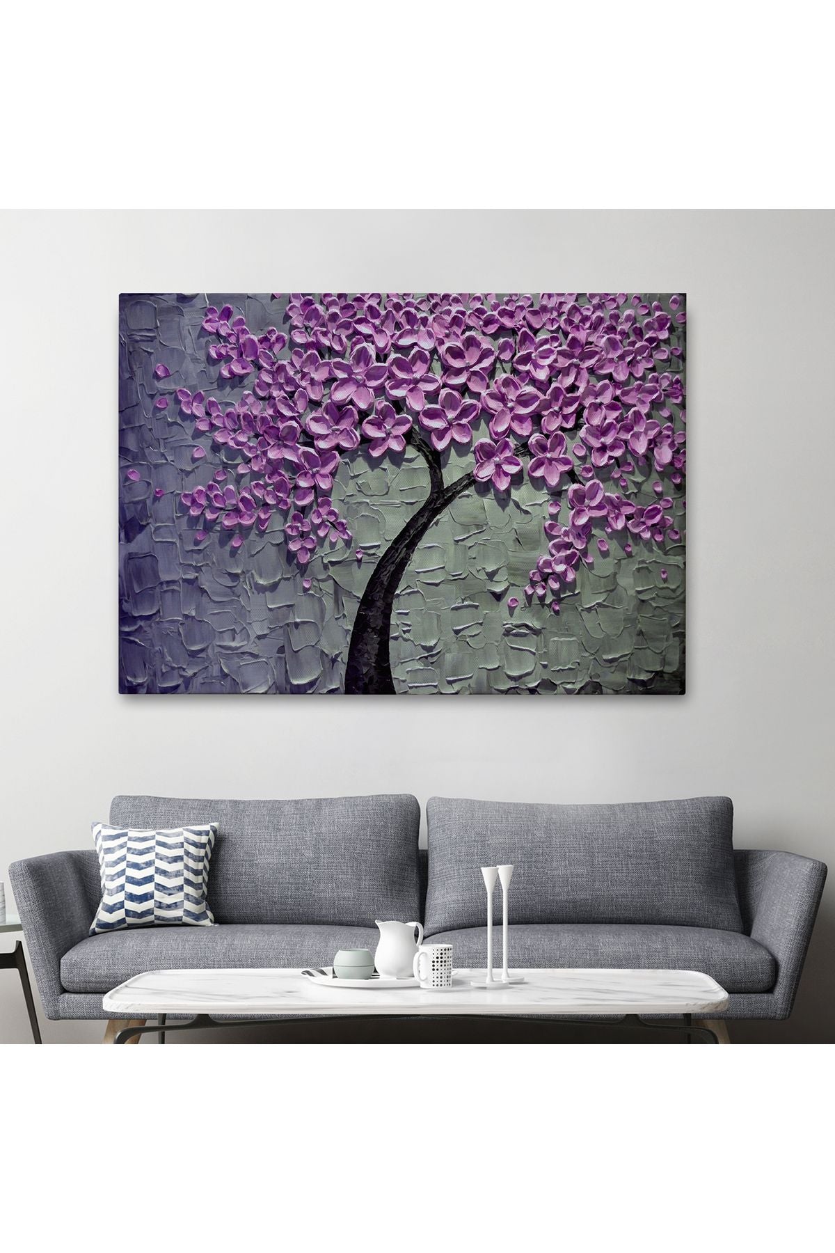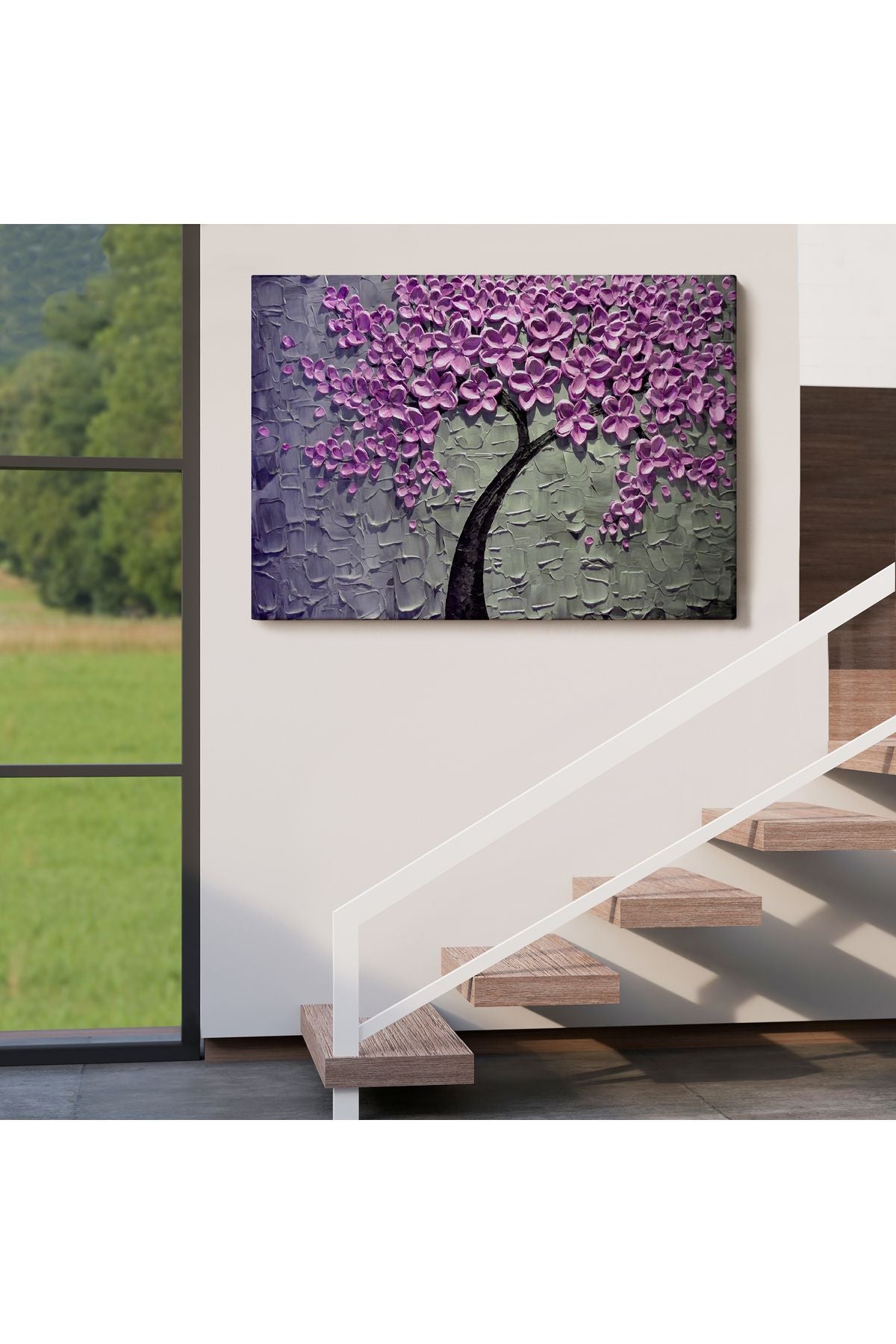 Pembe Çiçek Ağacı Yağlıboya Görünüm Dekoratif Kanvas Duvar Tablosu-3706