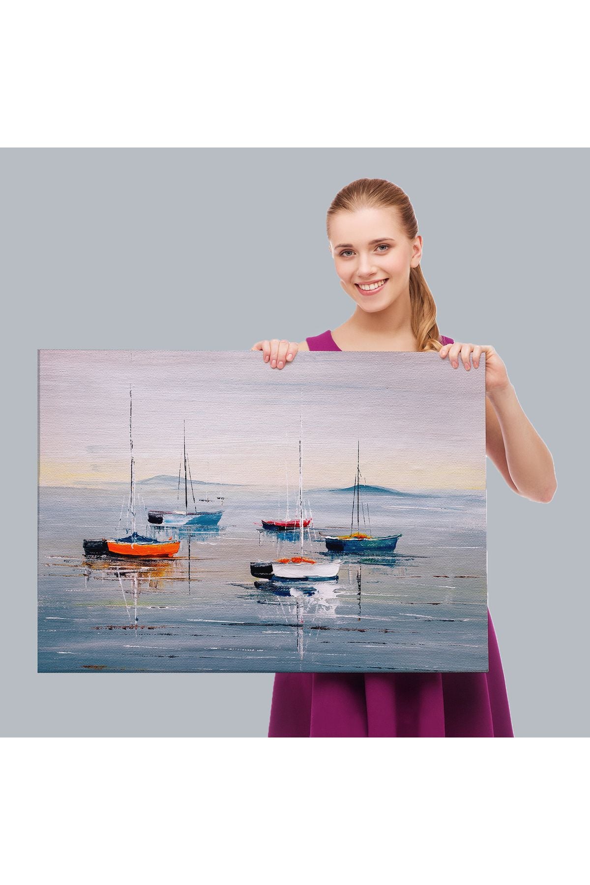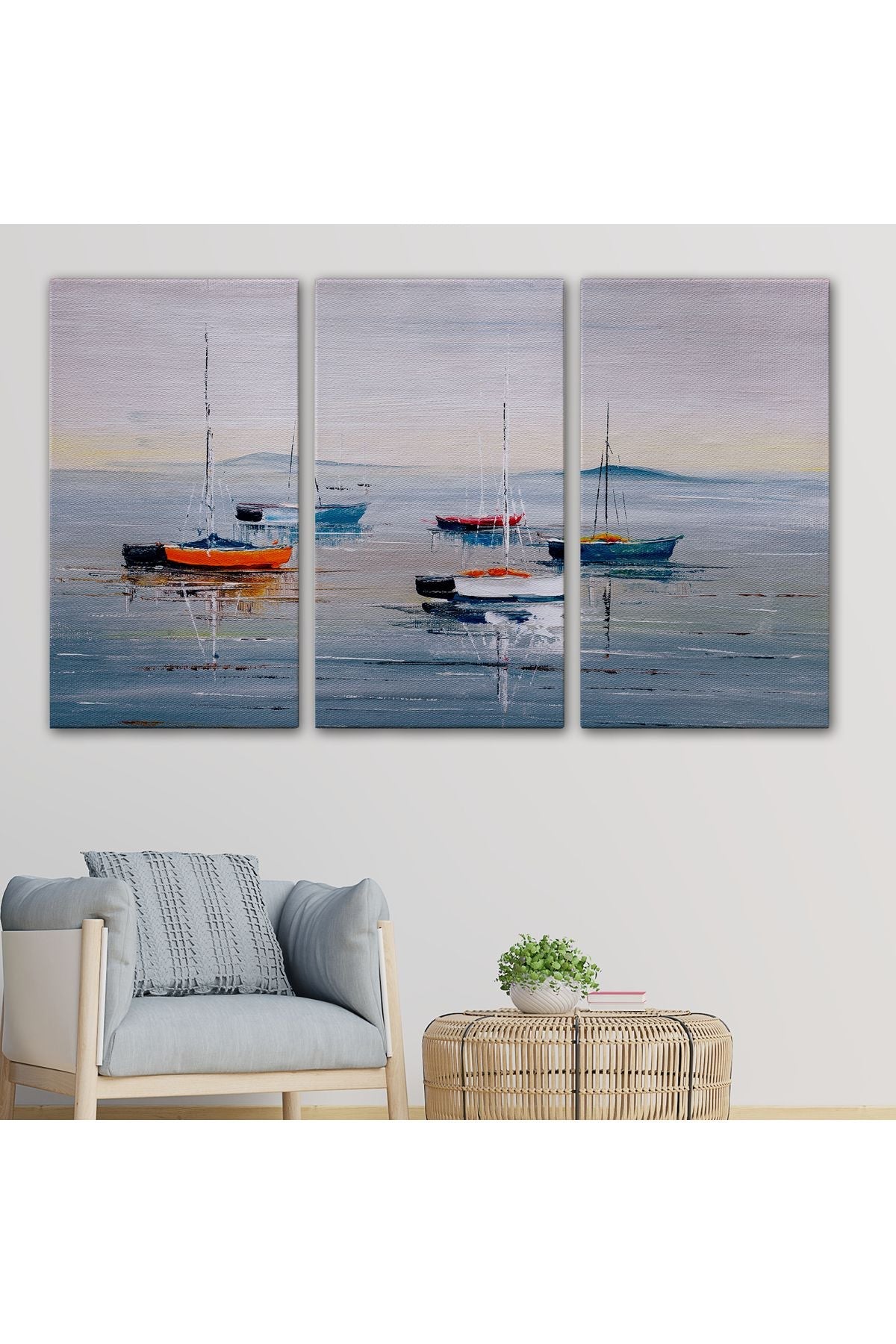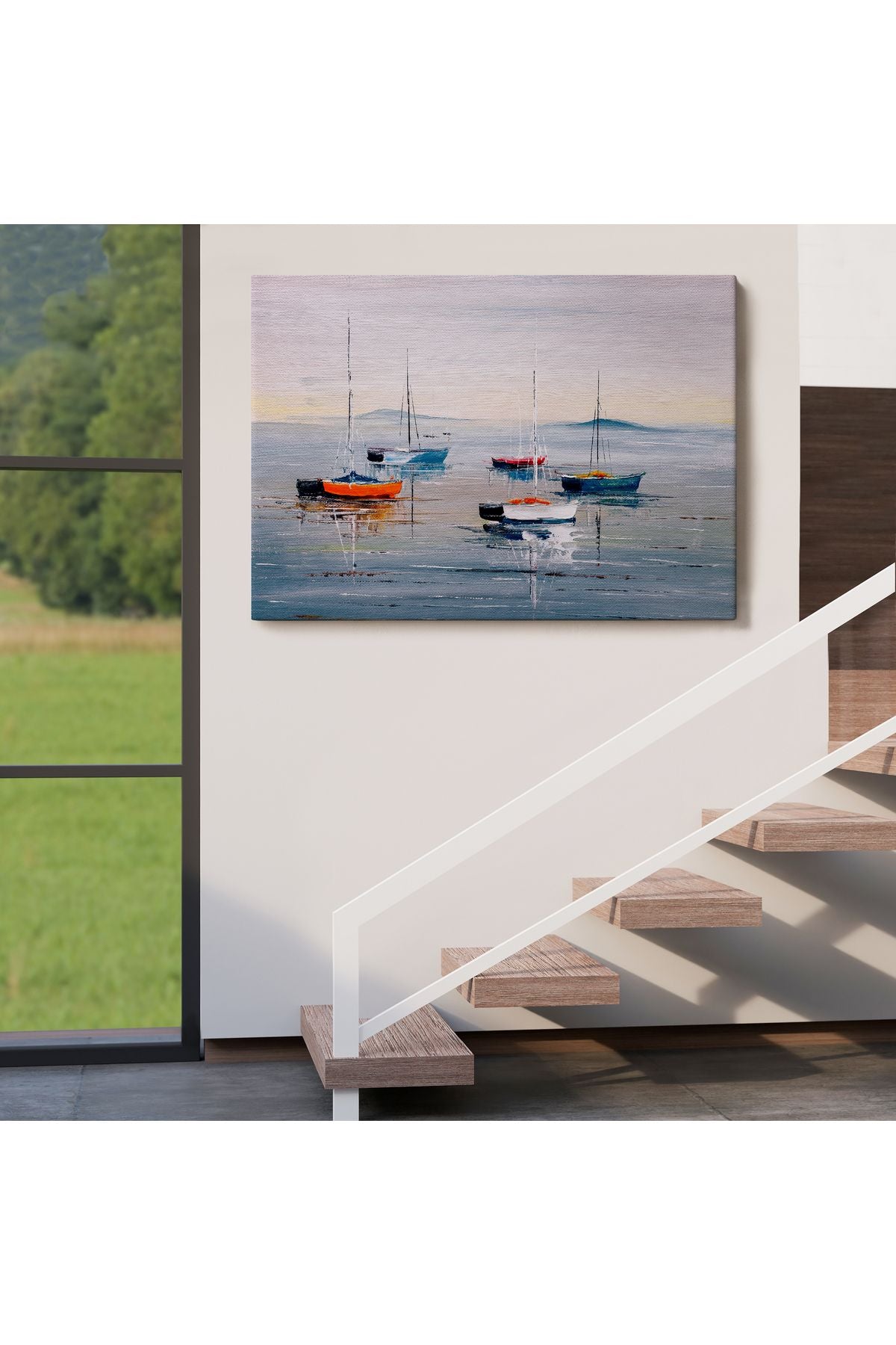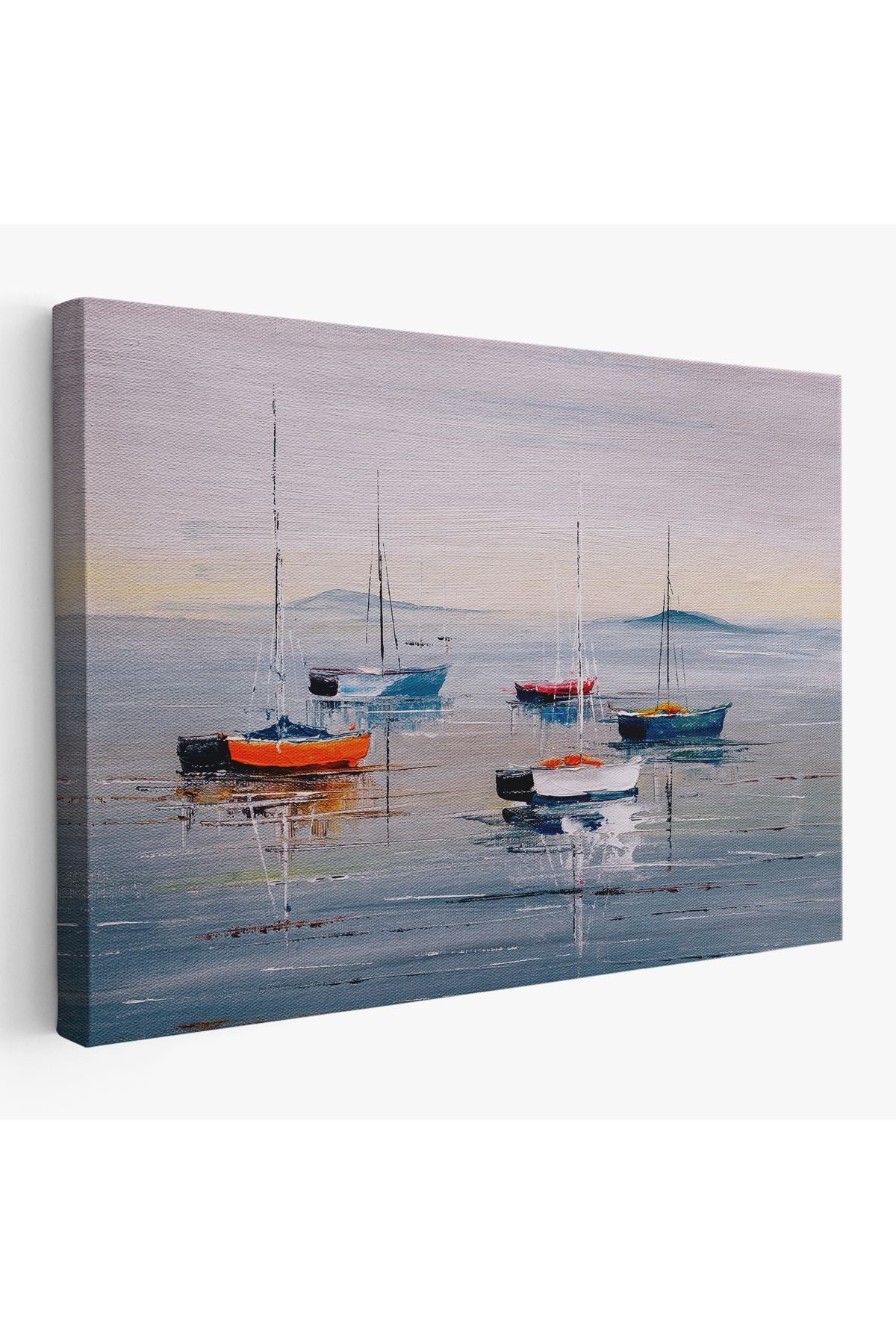 Deniz ve Yelkenliler Manzarası Yağlıboya Görünüm Dekoratif Kanvas Duvar Tablosu-3710