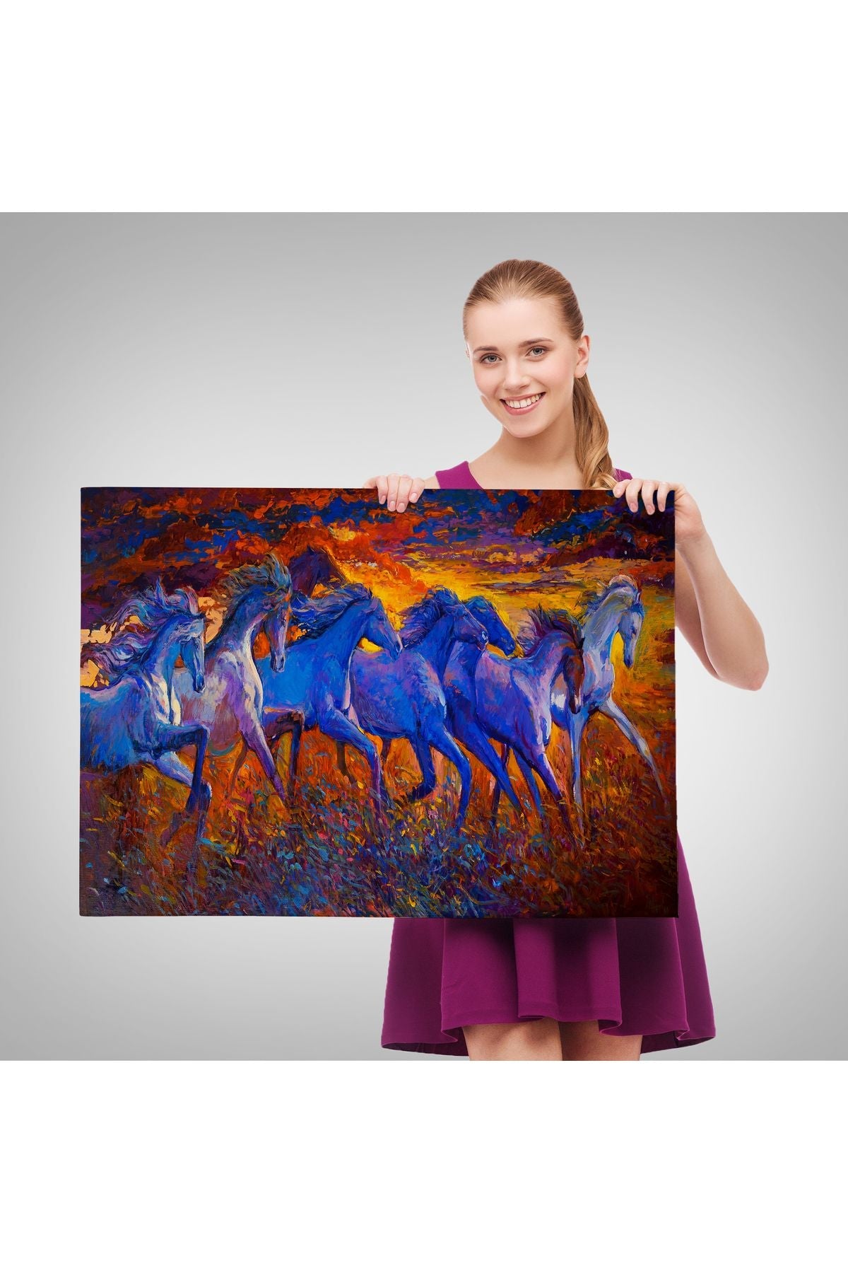 YB Koşan Atlar Dekoratif Kanvas Duvar Tablosu-3725