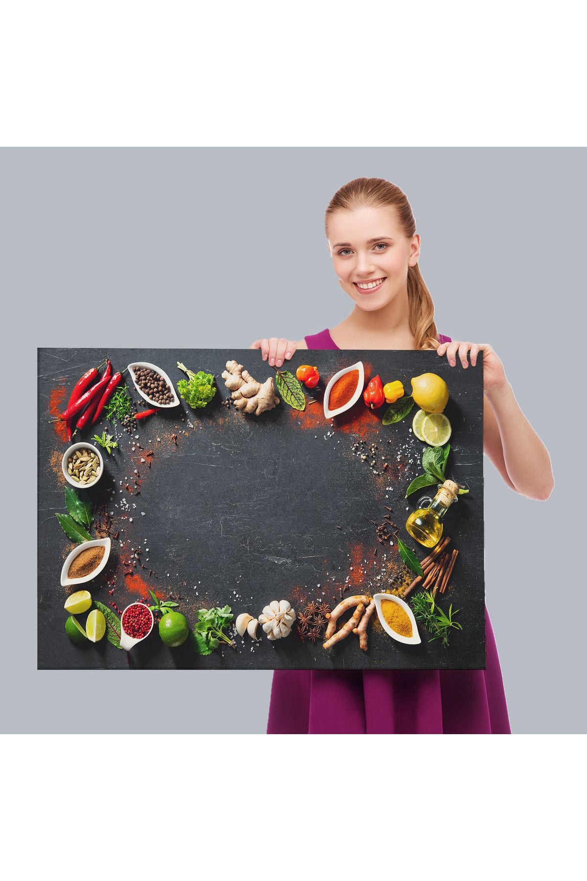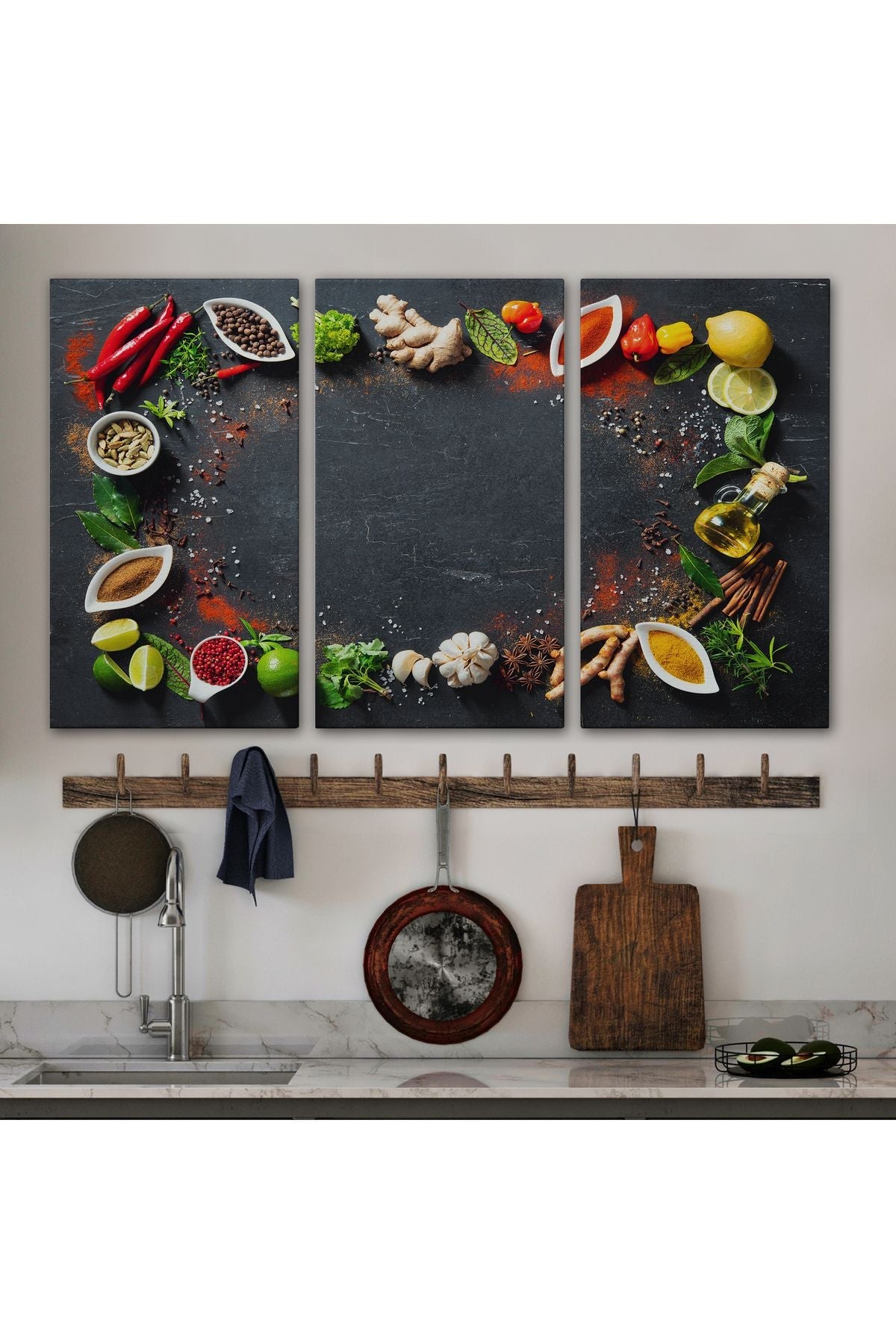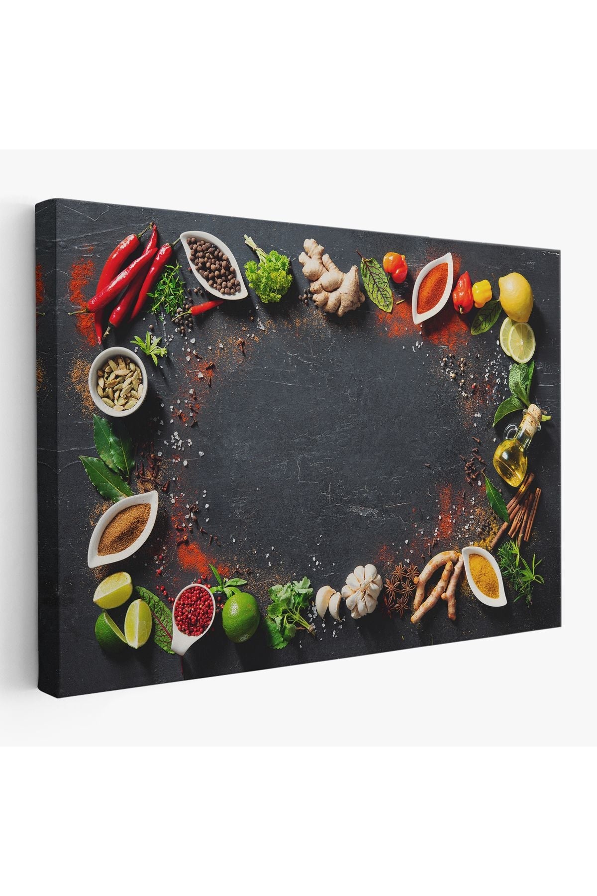 Mutfak Masasındaki Baharatlar Dekoratif Kanvas Duvar Tablosu-3727