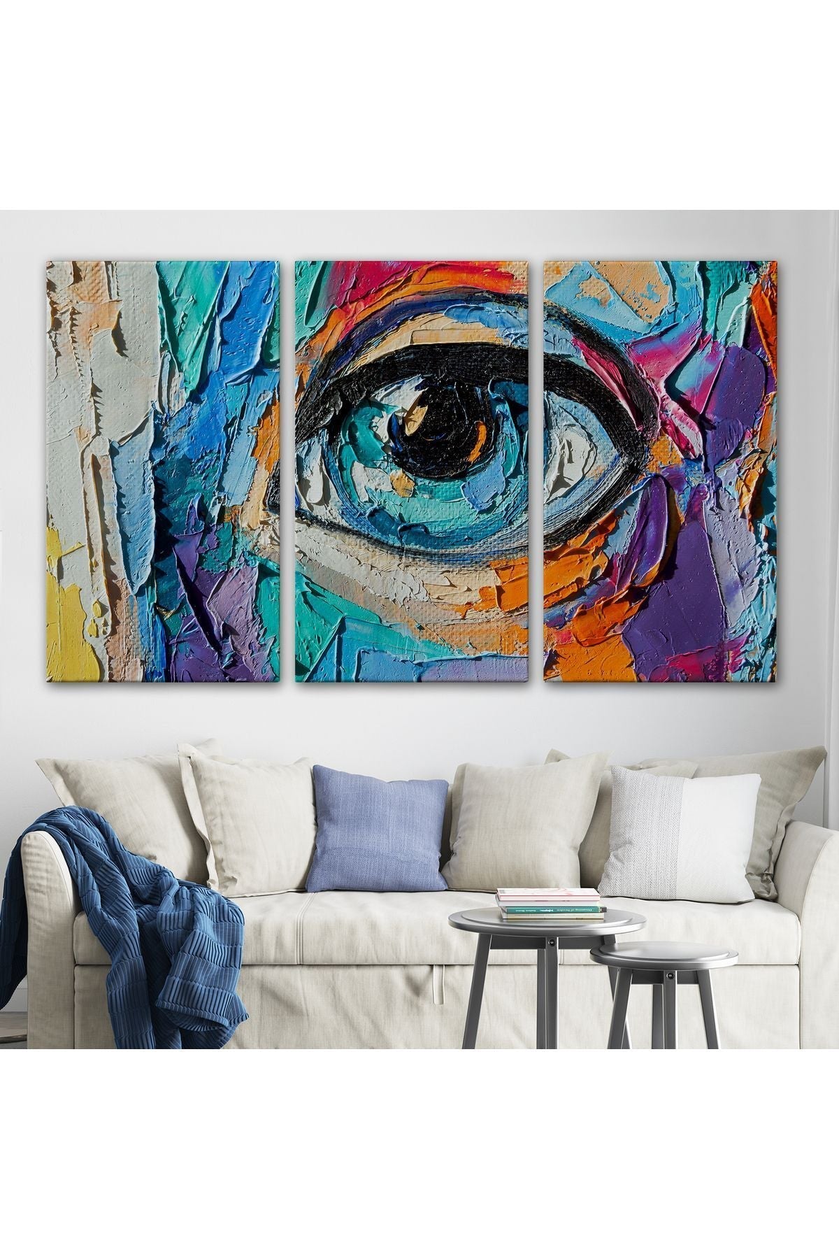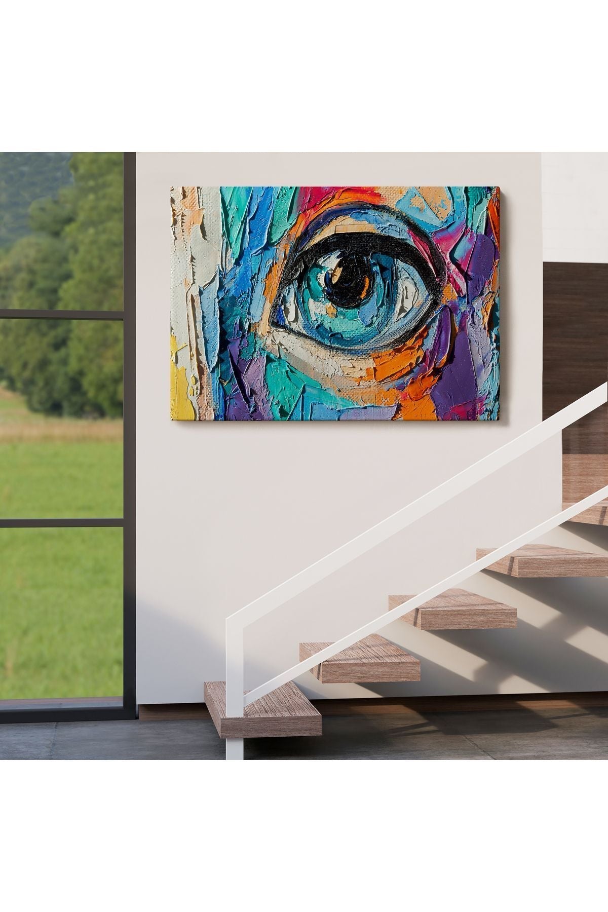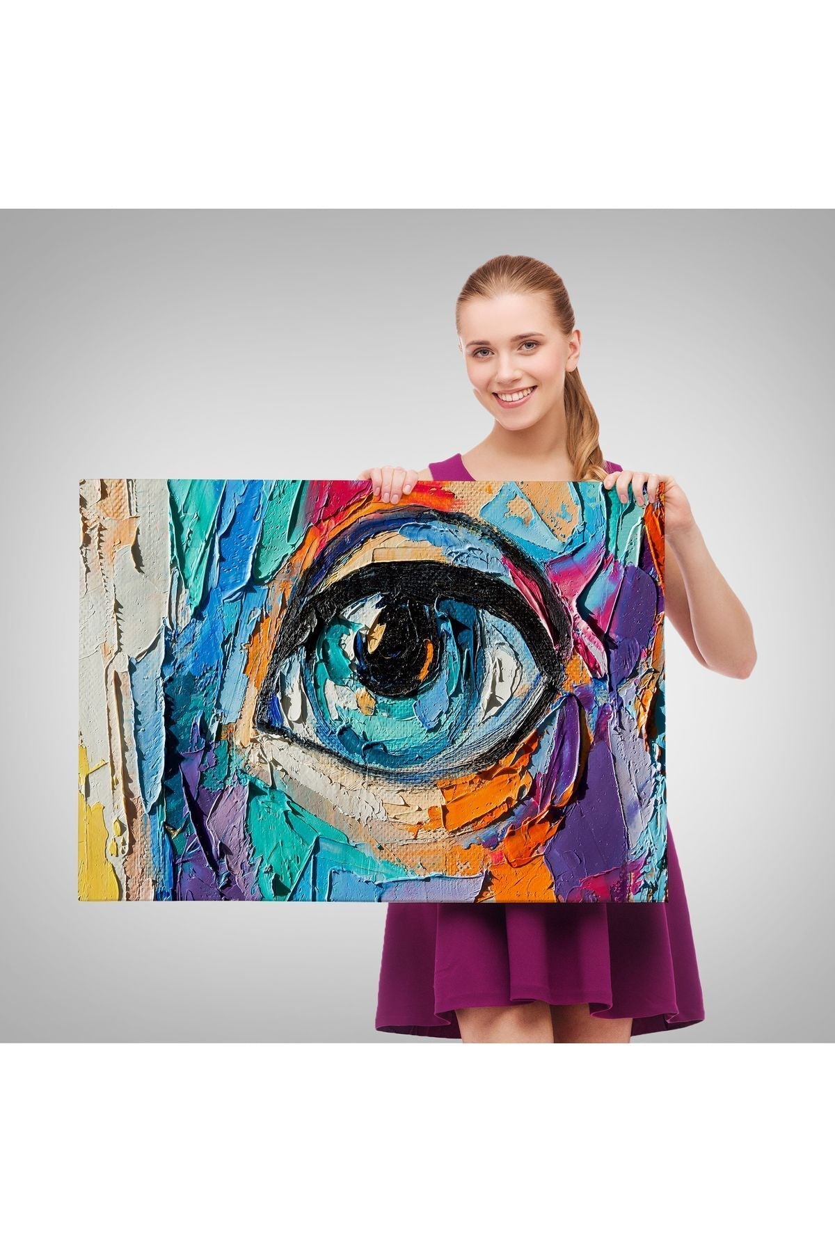 Kanvas Tablo, Duvar Dekoru, Yağlıboya Görünüm Renkli Kadın Gözü 3731 BUNGKNV