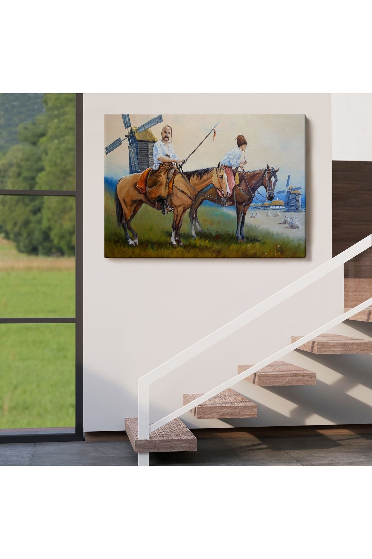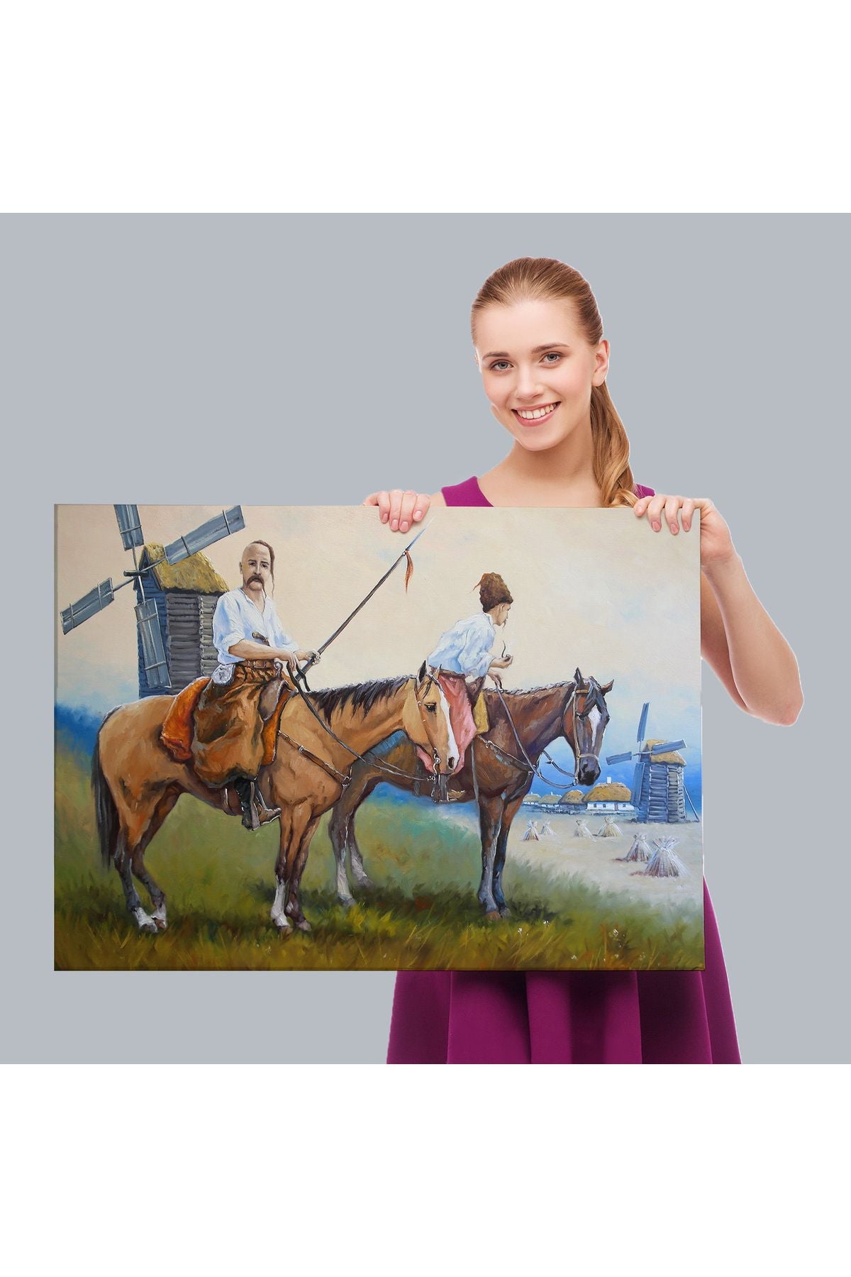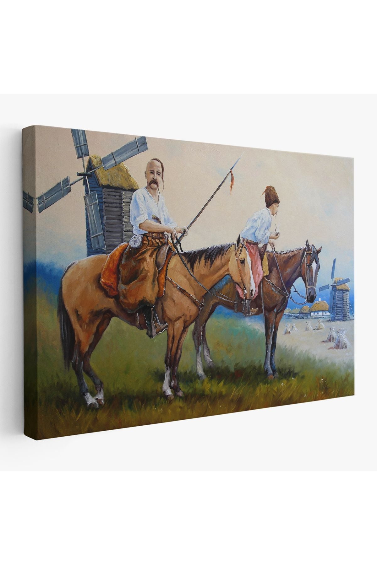 Kazakistan Kırsalında Atlı İnsanlar Yağlıboya Görünüm Kanvas Duvar Tablosu-3735