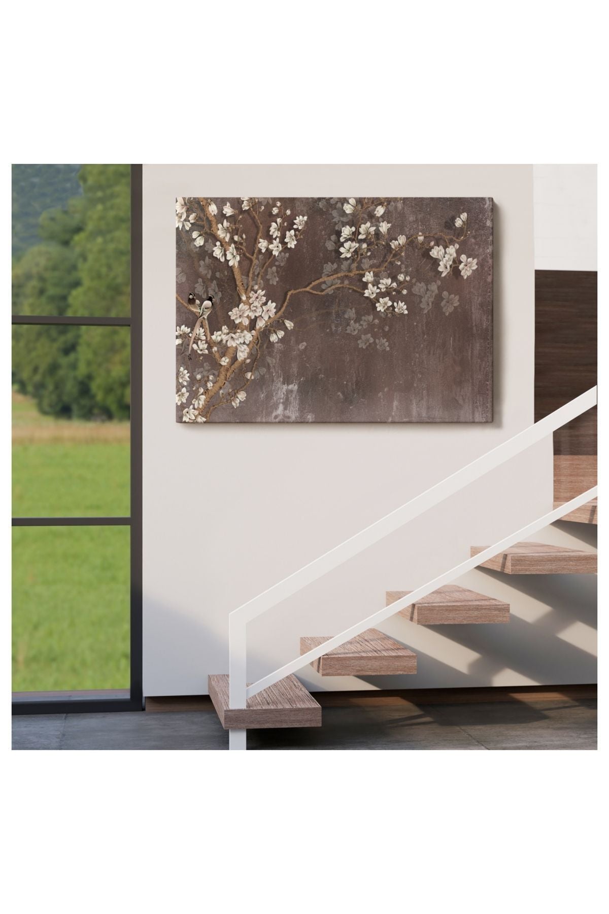 Kanvas, Duvar Tablosu, Dekoratif, Yağlıboya Görünüm Ağaçta Beyaz Çiçekler 3736 EGKNV
