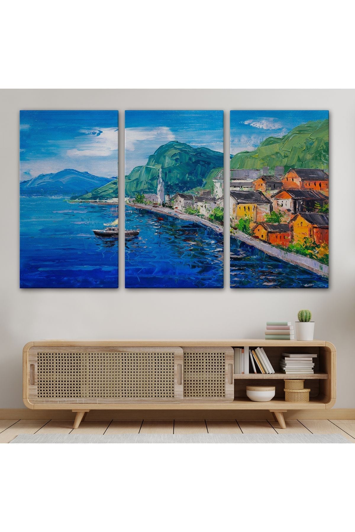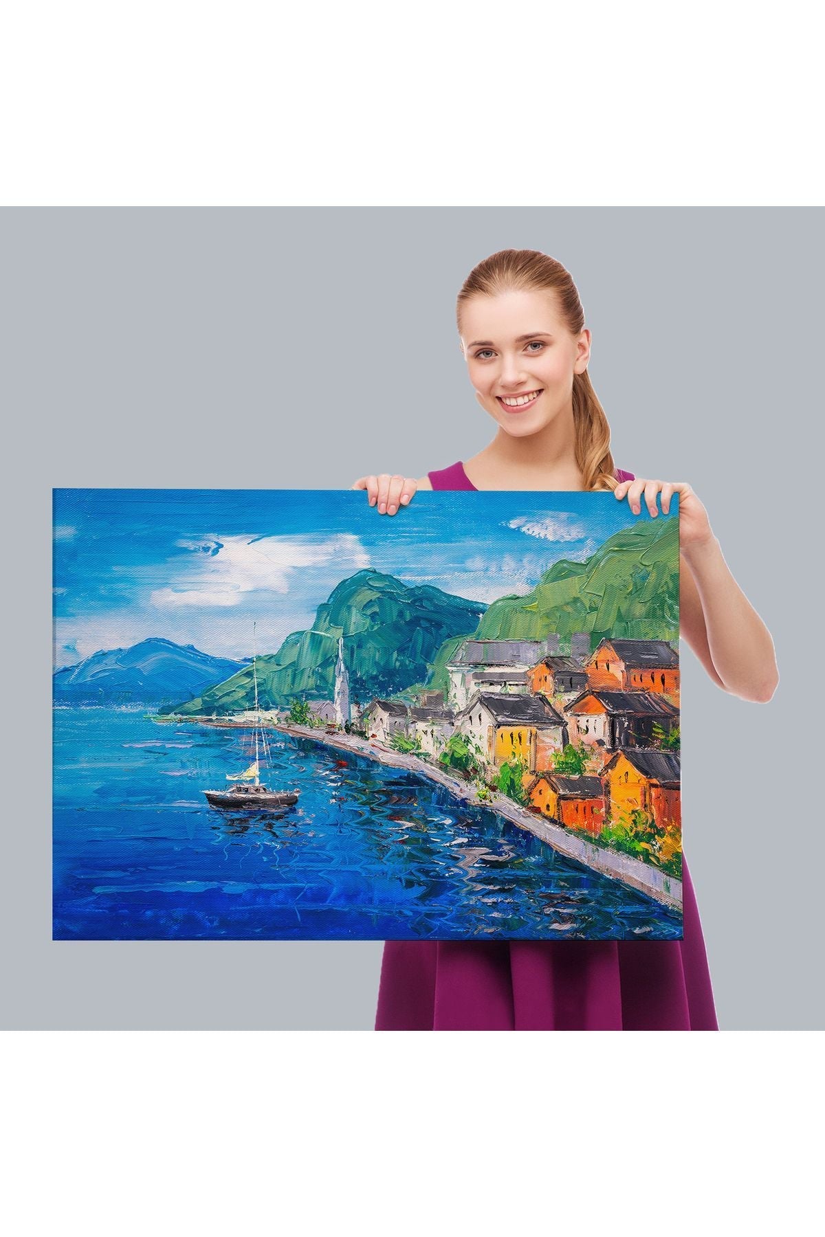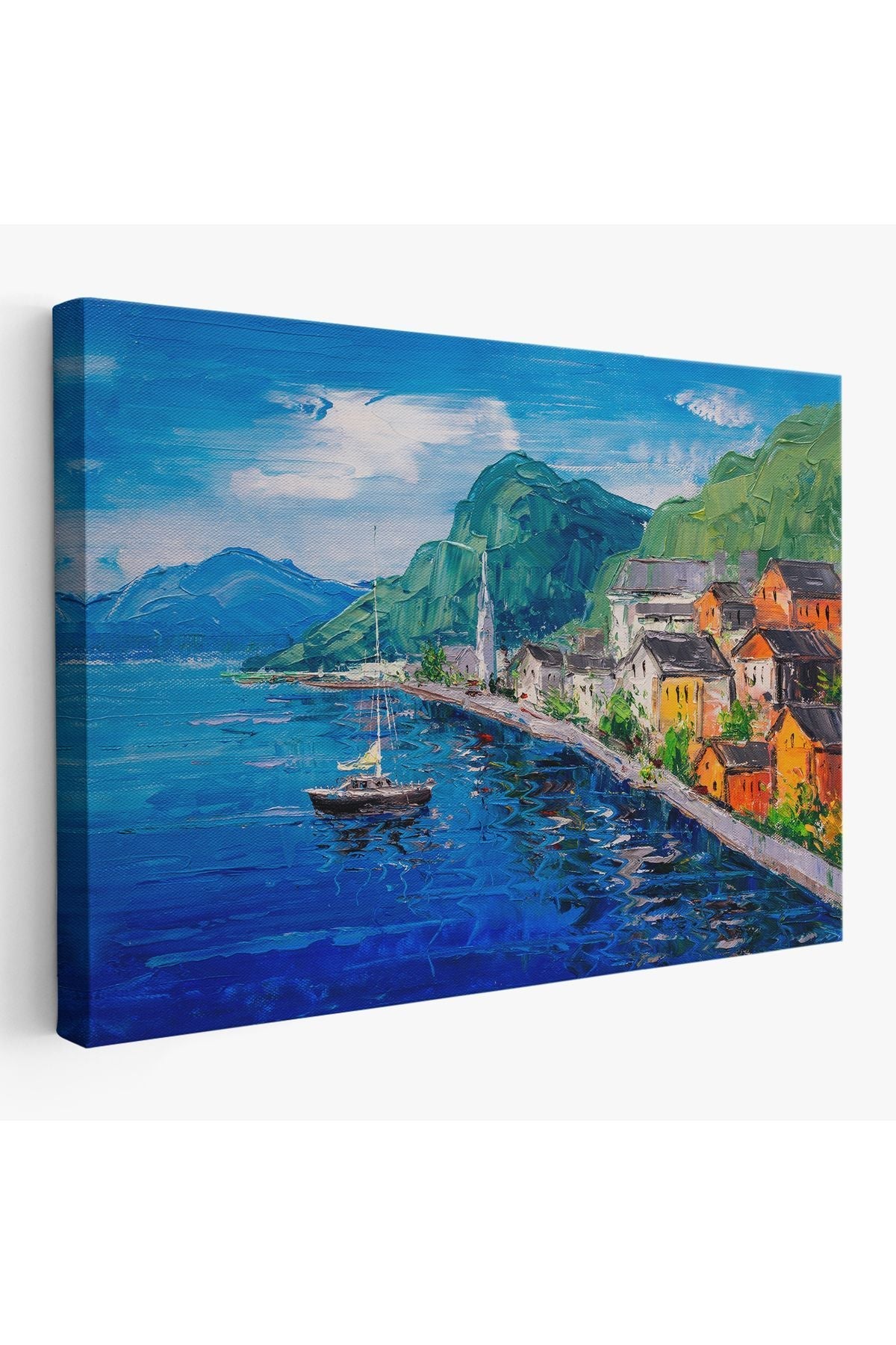 Hallstatt Avusturya Yağlıboya Görünüm Dekoratif Kanvas Duvar Tablosu-3742