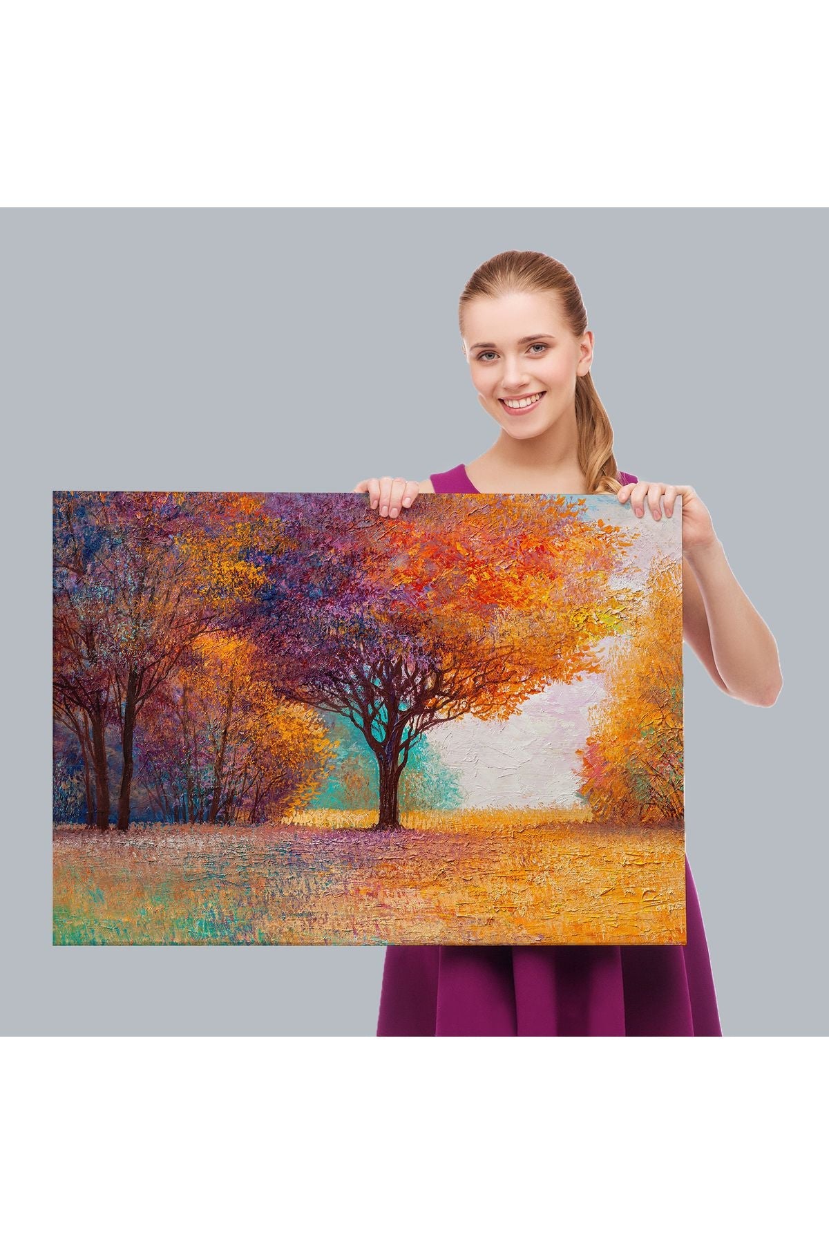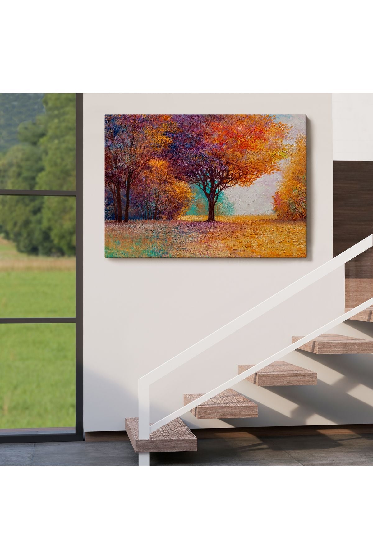 Sonbahar Manzarası Yağlıboya Görünüm Dekoratif Kanvas Duvar Tablosu-3748