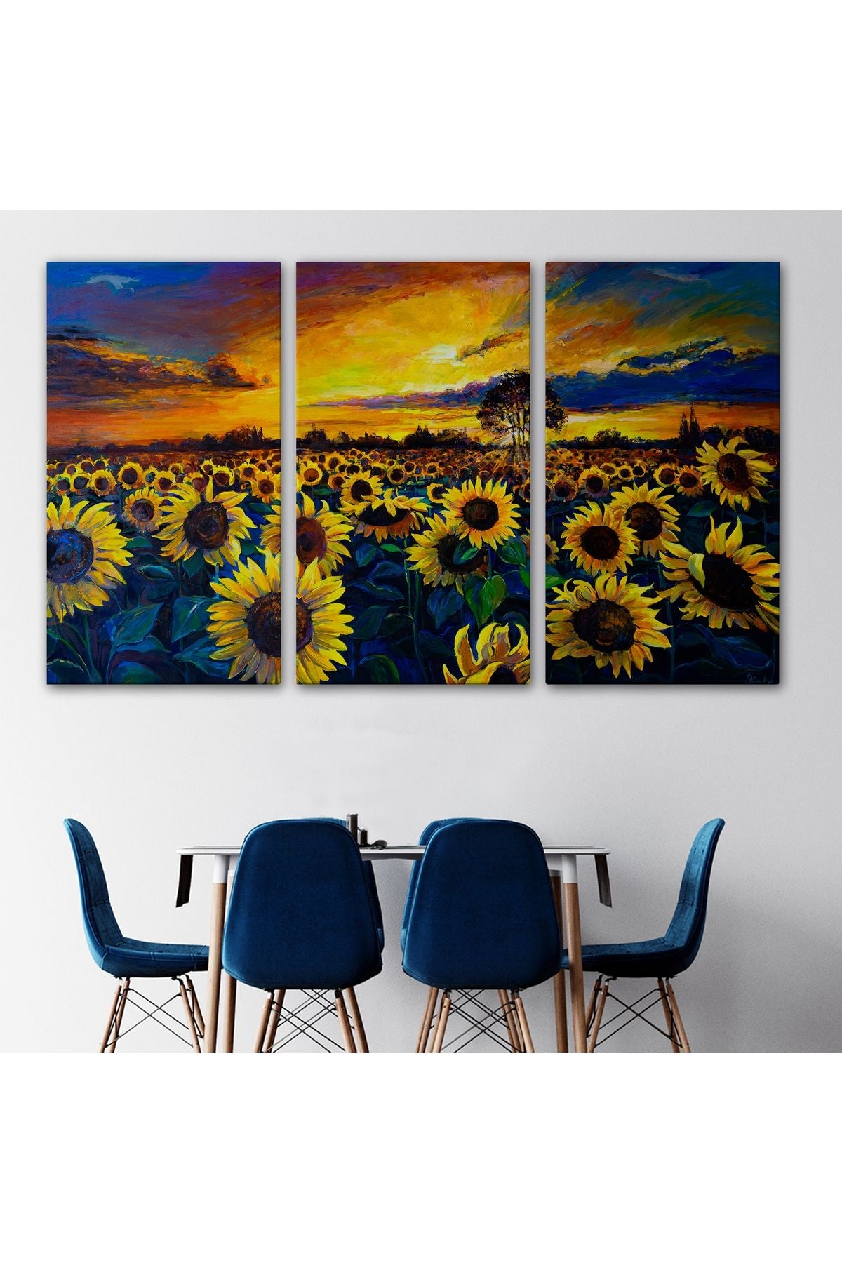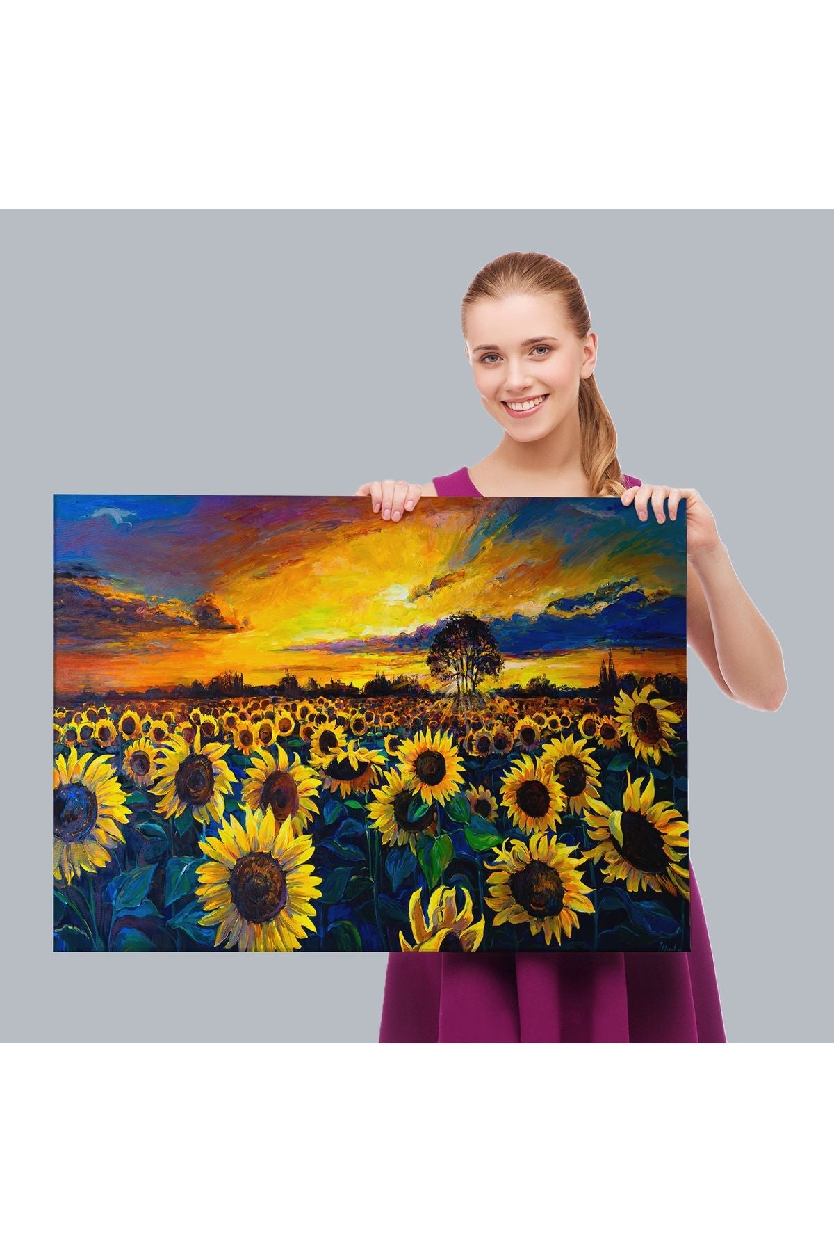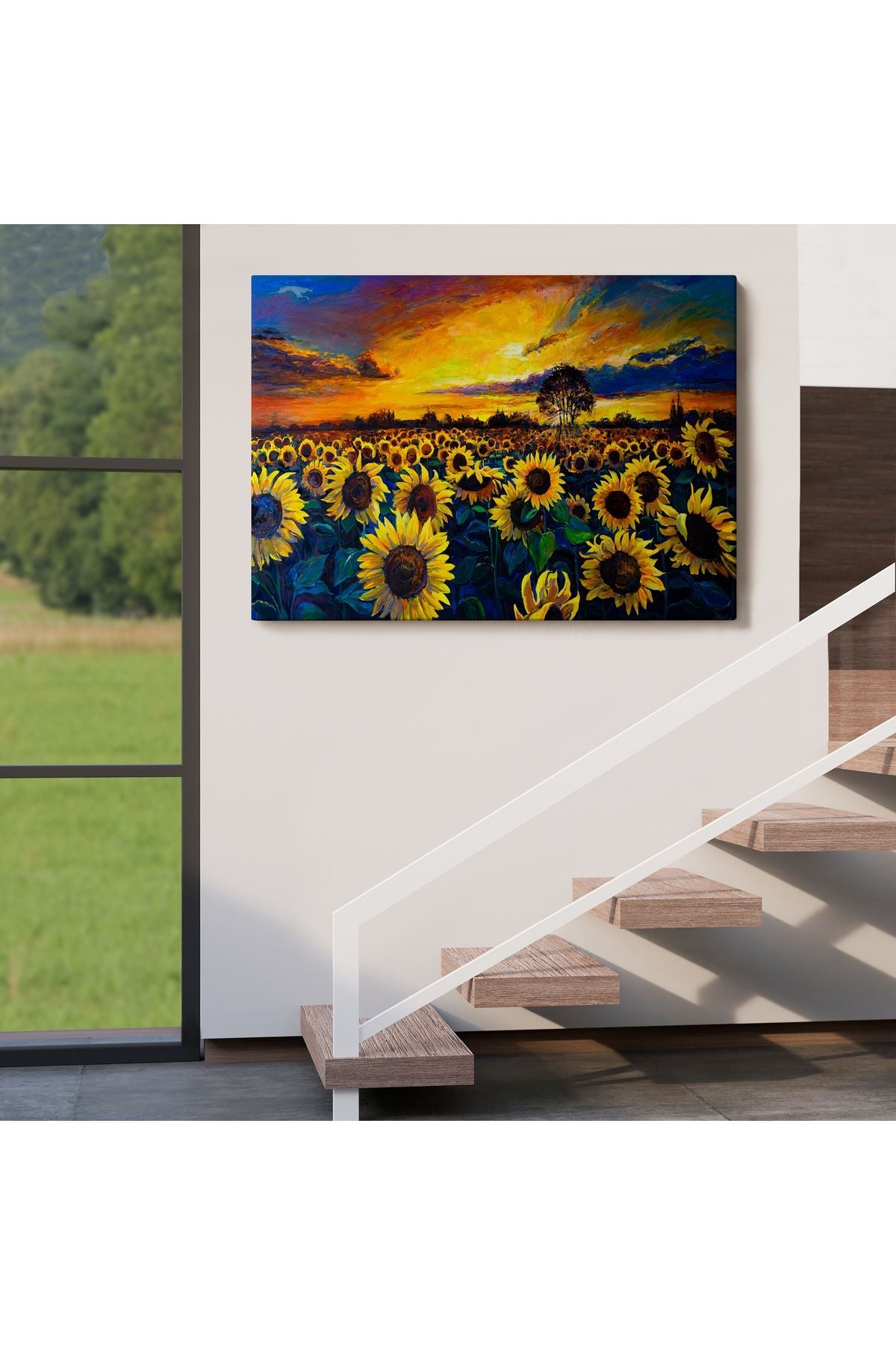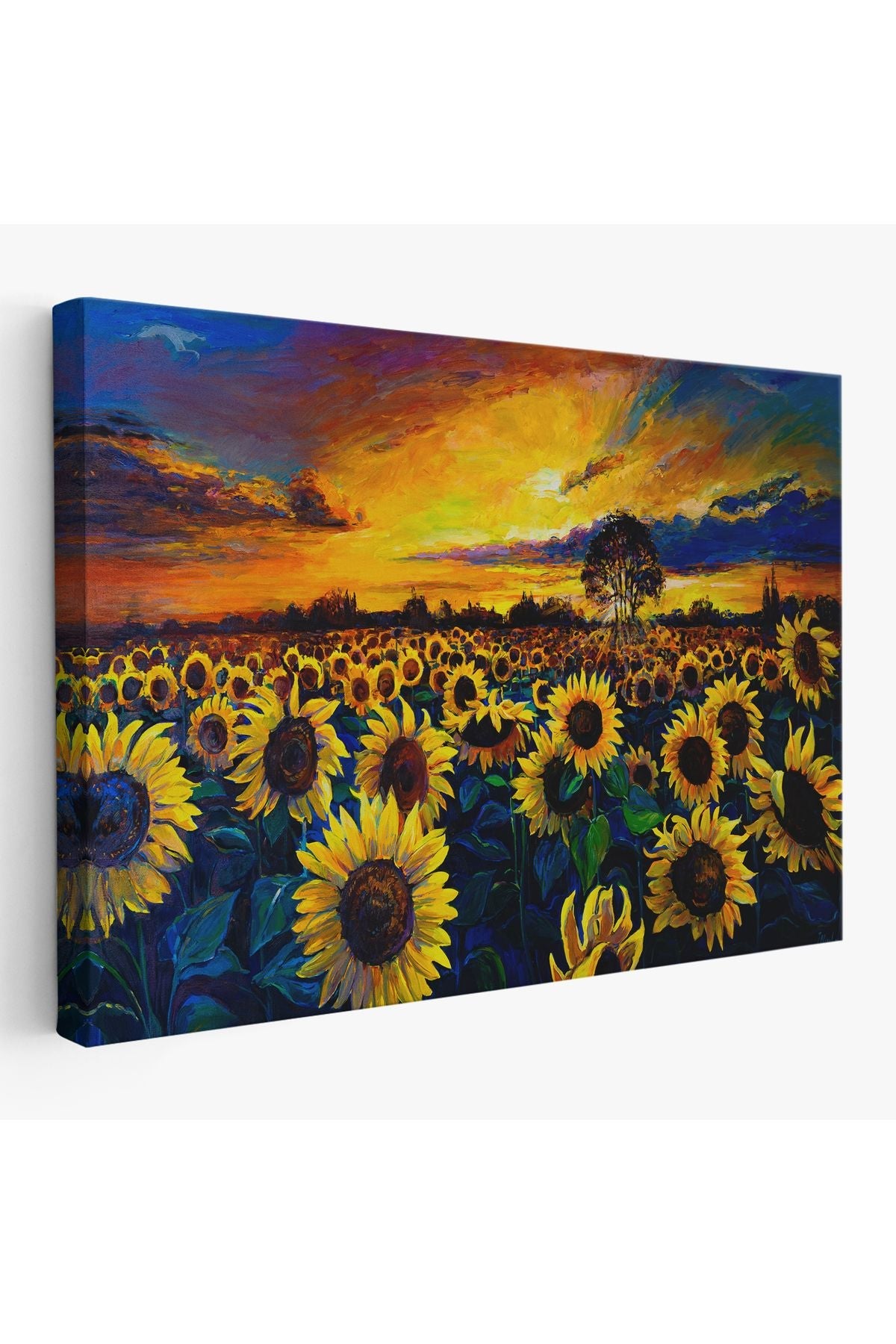 Ayçiçeği Tarlası Yağlıboya Görünüm Dekoratif Kanvas Duvar Tablosu-3751