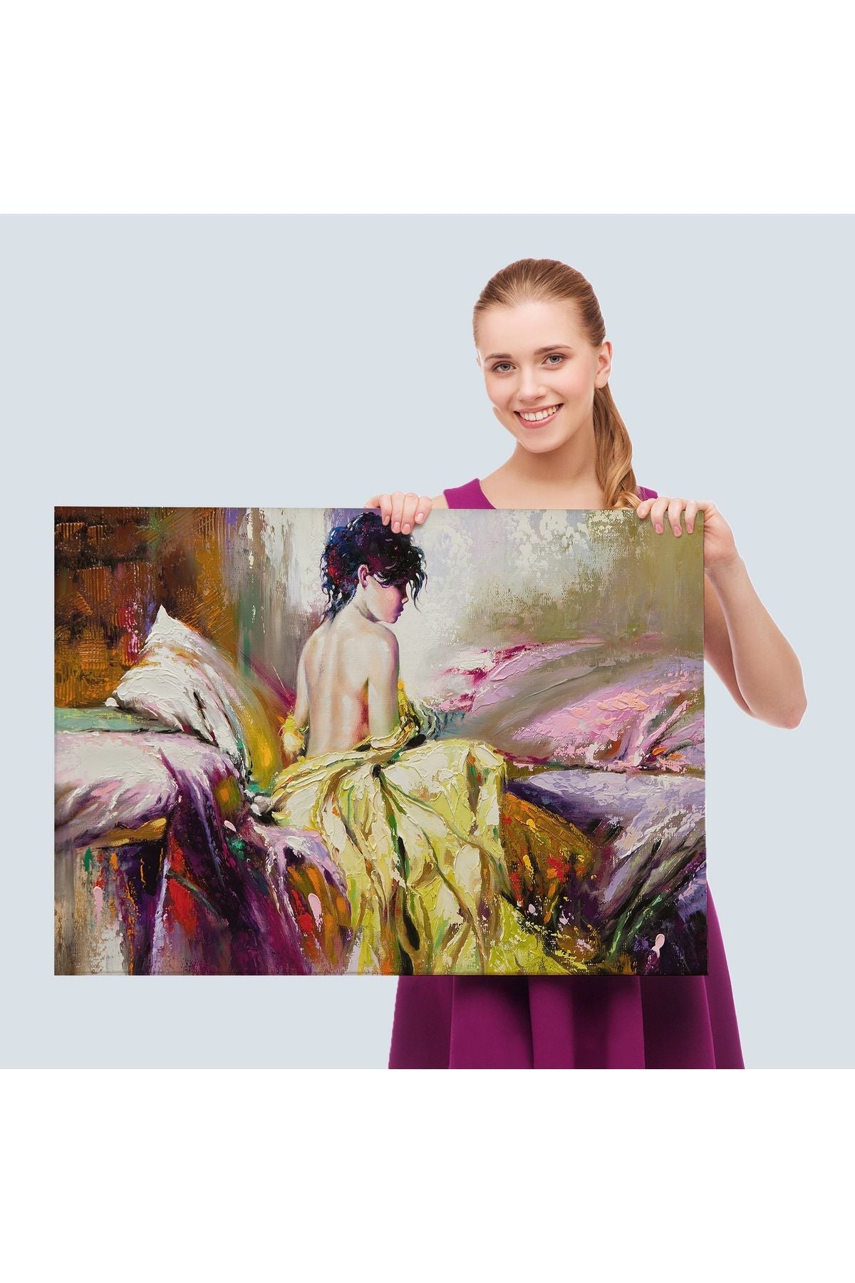 Yalnız Kadın Pastelboya Görünüm Dekoratif Kanvas Duvar Tablosu-3766