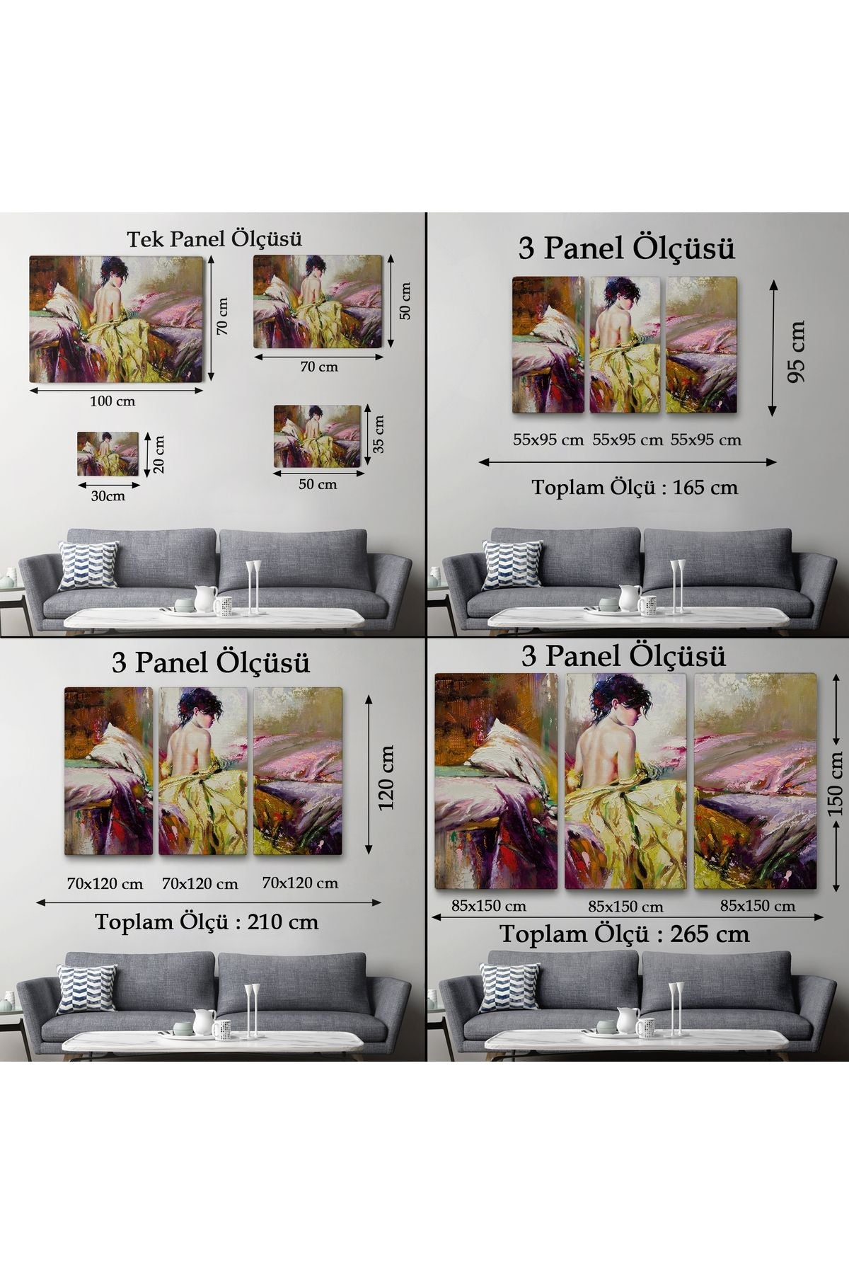 Yüksek nem, kanvasın gevşemesine, küflenmeye veya ahşap şasinin zarar görmesine yol açabilir. Banyo gibi nemli alanlarda kullanılmamalıdır.