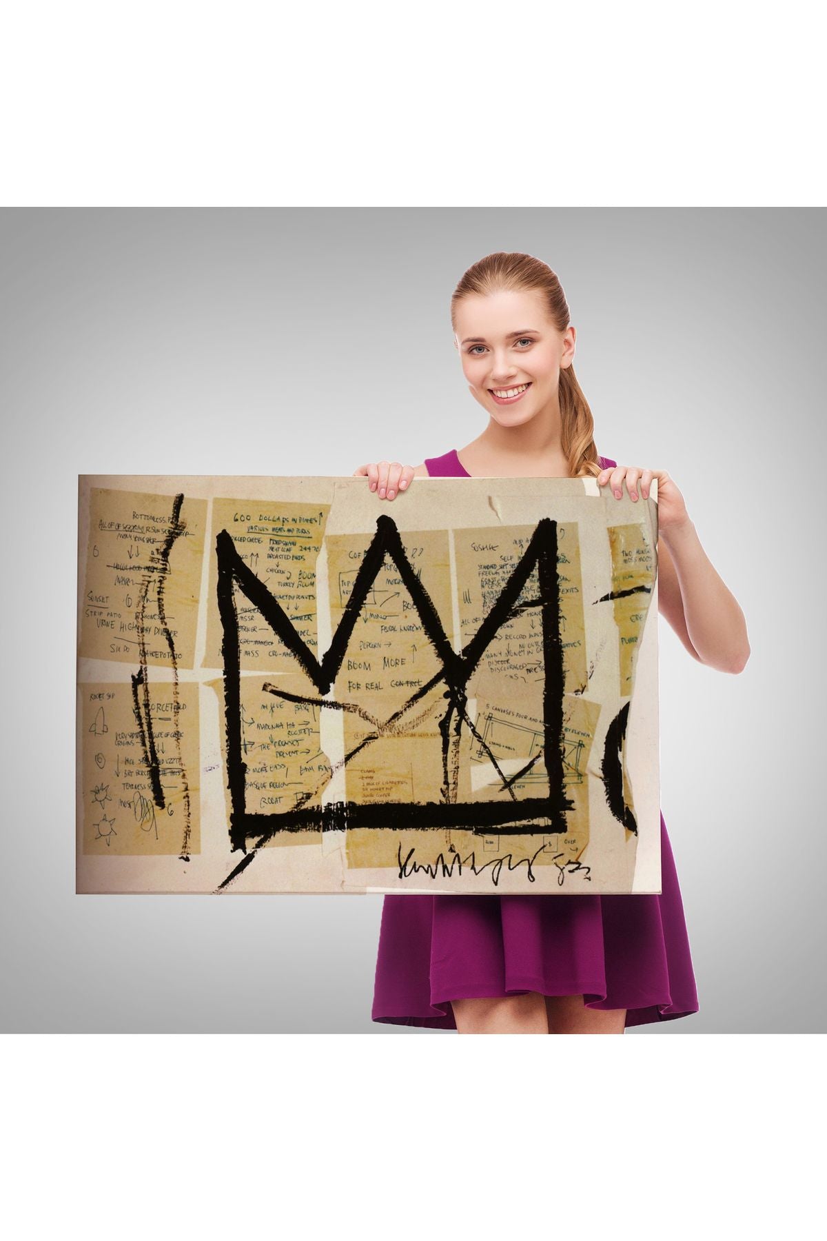 Jean Michel Basquiat Notlar ve Taç Eseri Kanvas Duvar Tablosu-5001