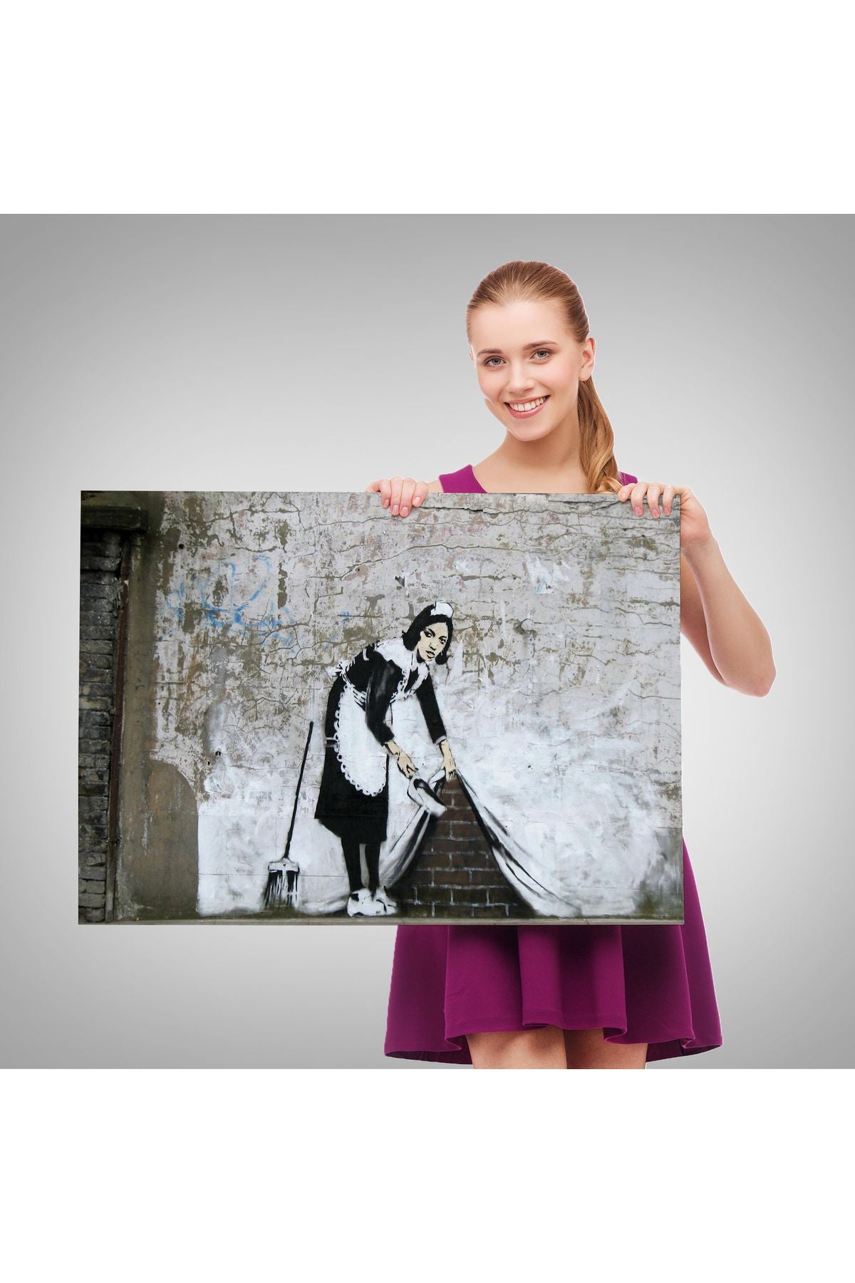 Banksy'nin Londra Sokaklarını Süpüren Temizlikçi Kadın Kanvas Tablosu-5004