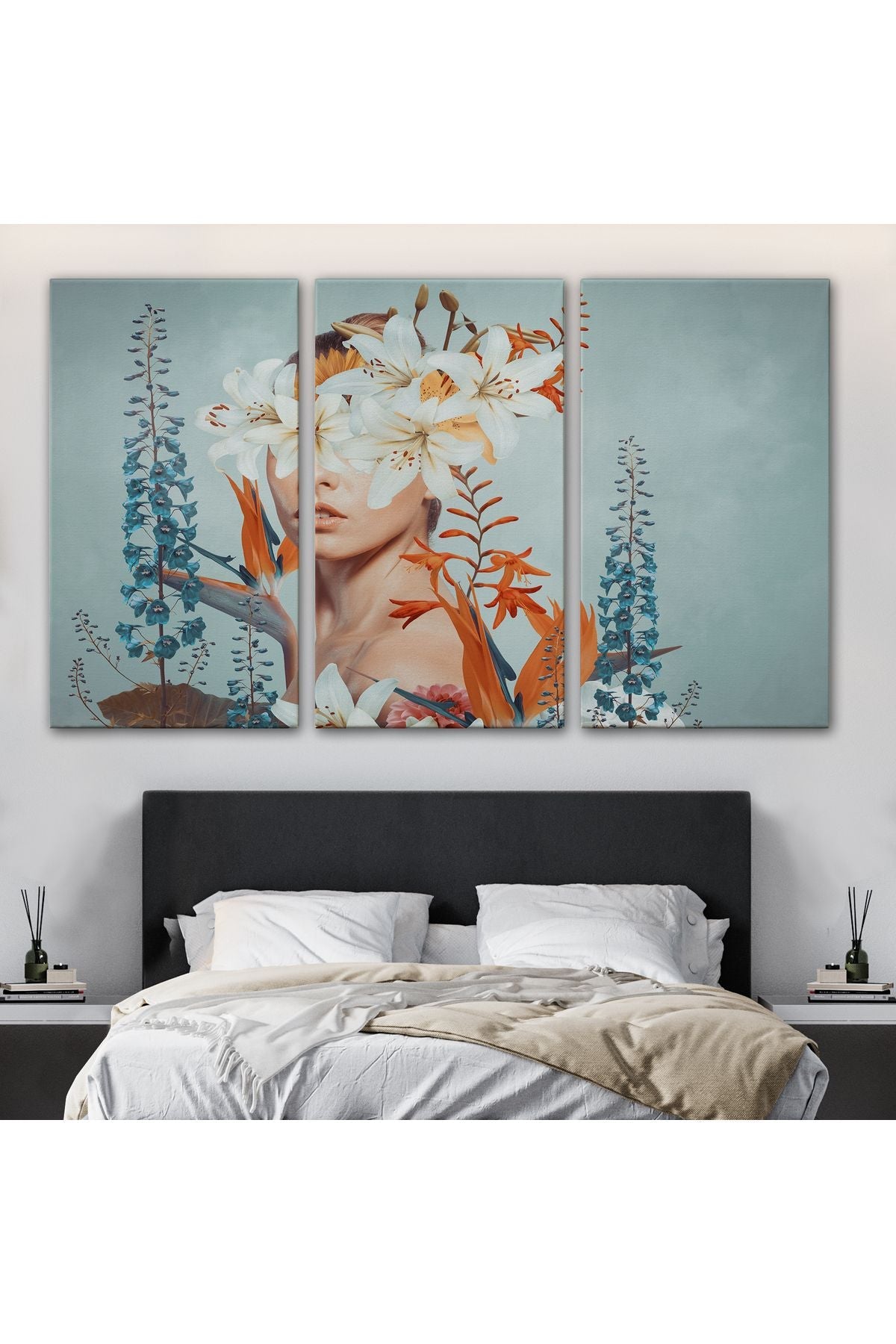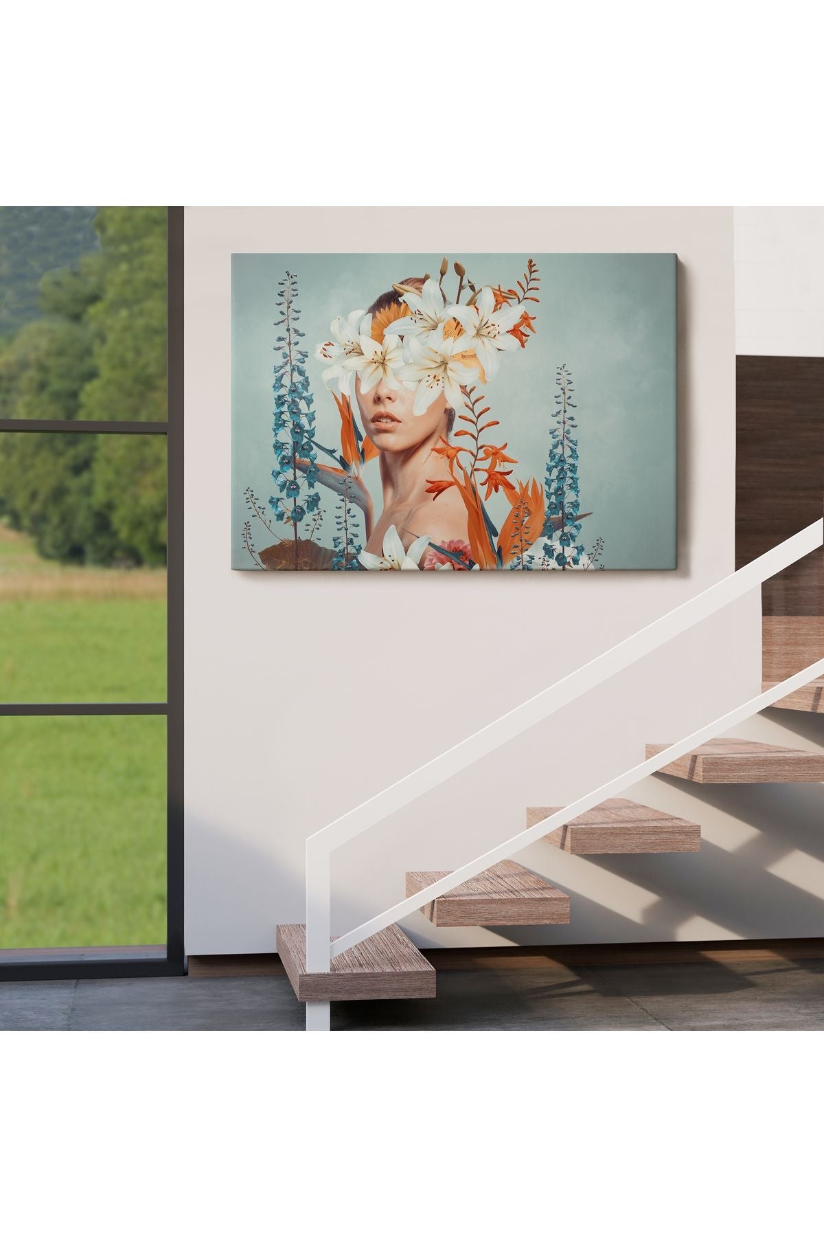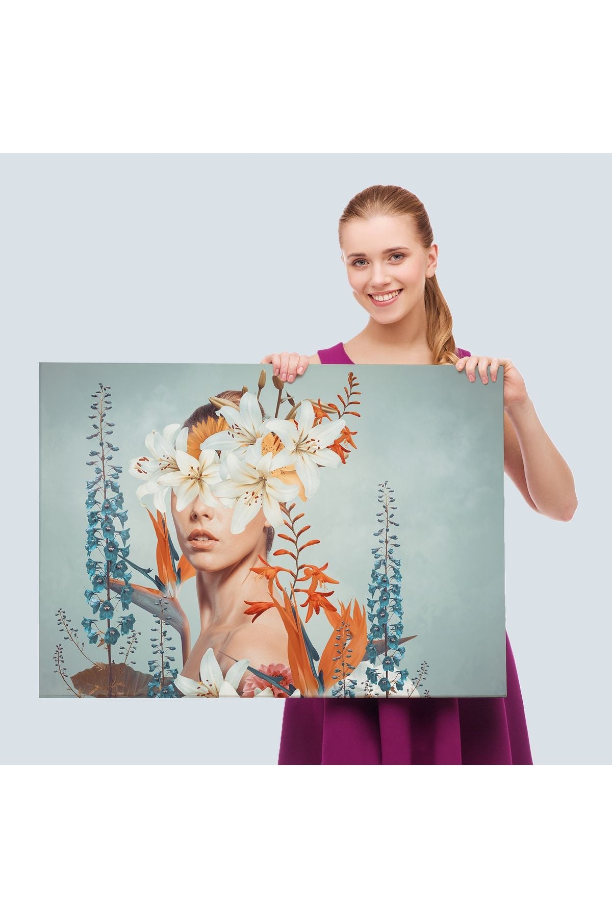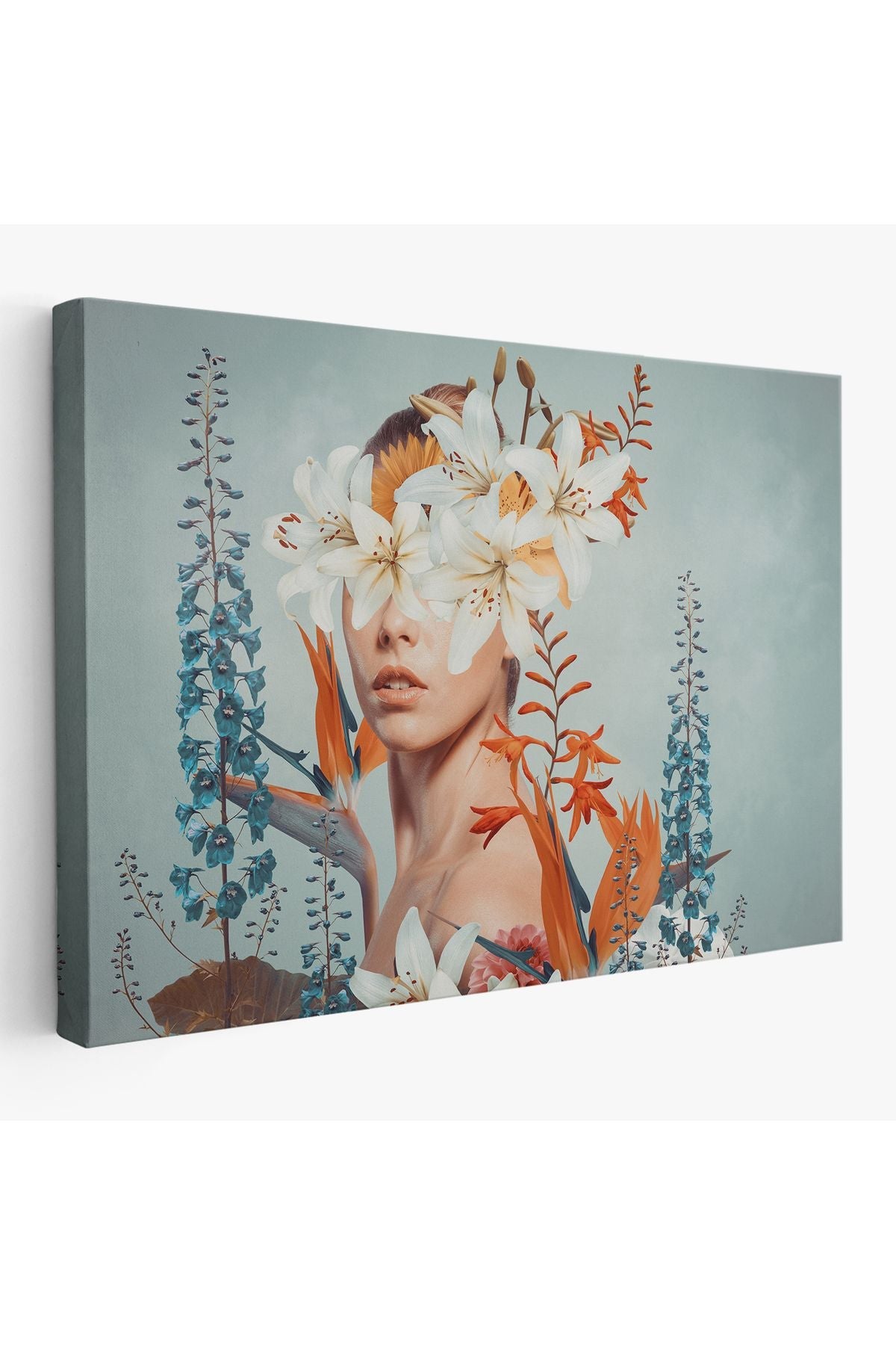 Çiçekler İçindeki Güzel Kadın Portresi Kanvas Tablo-5022