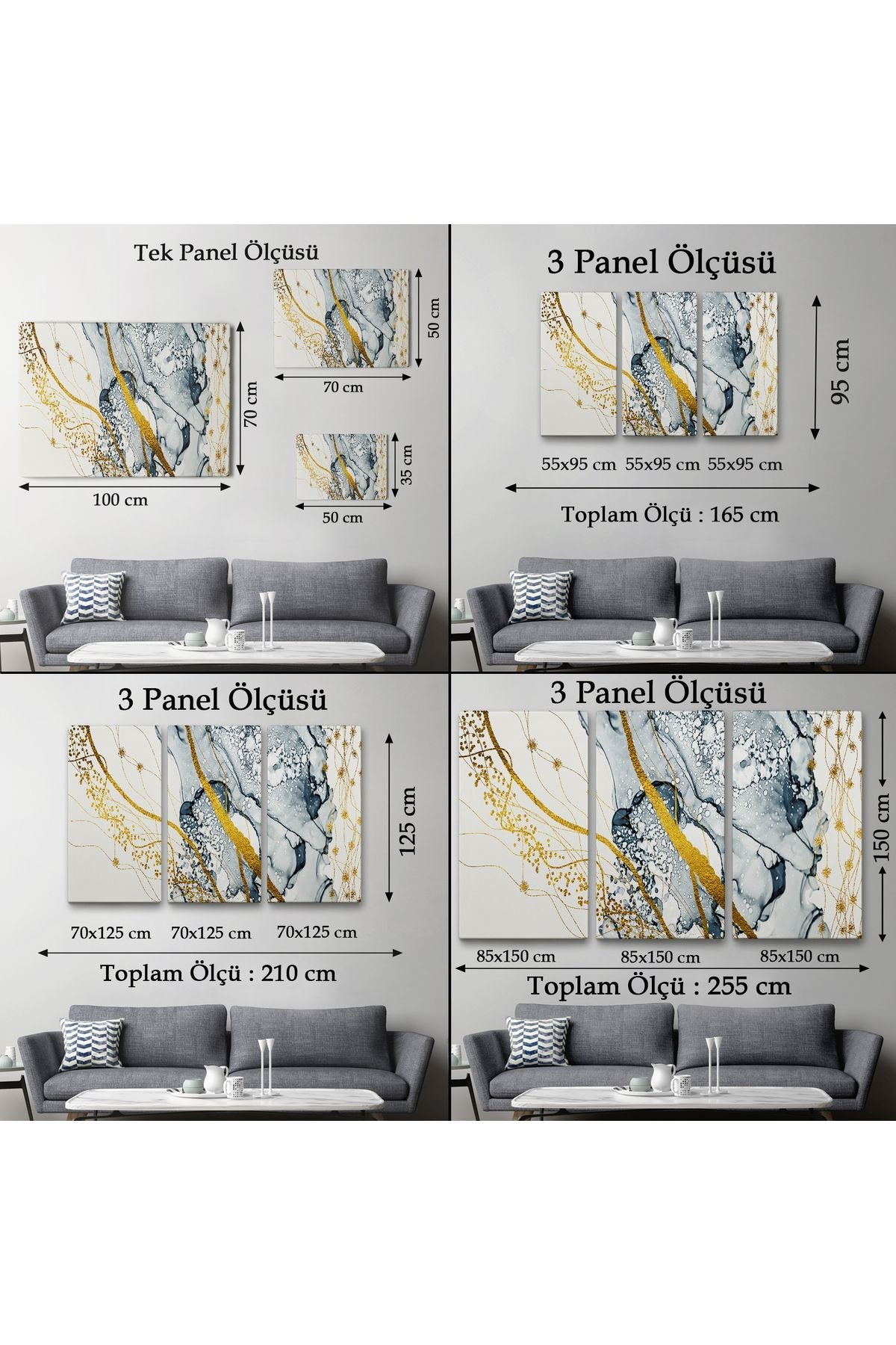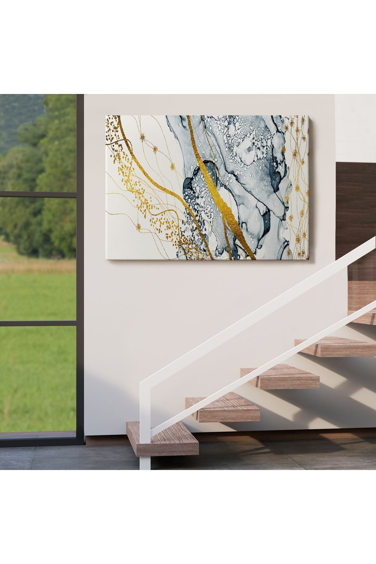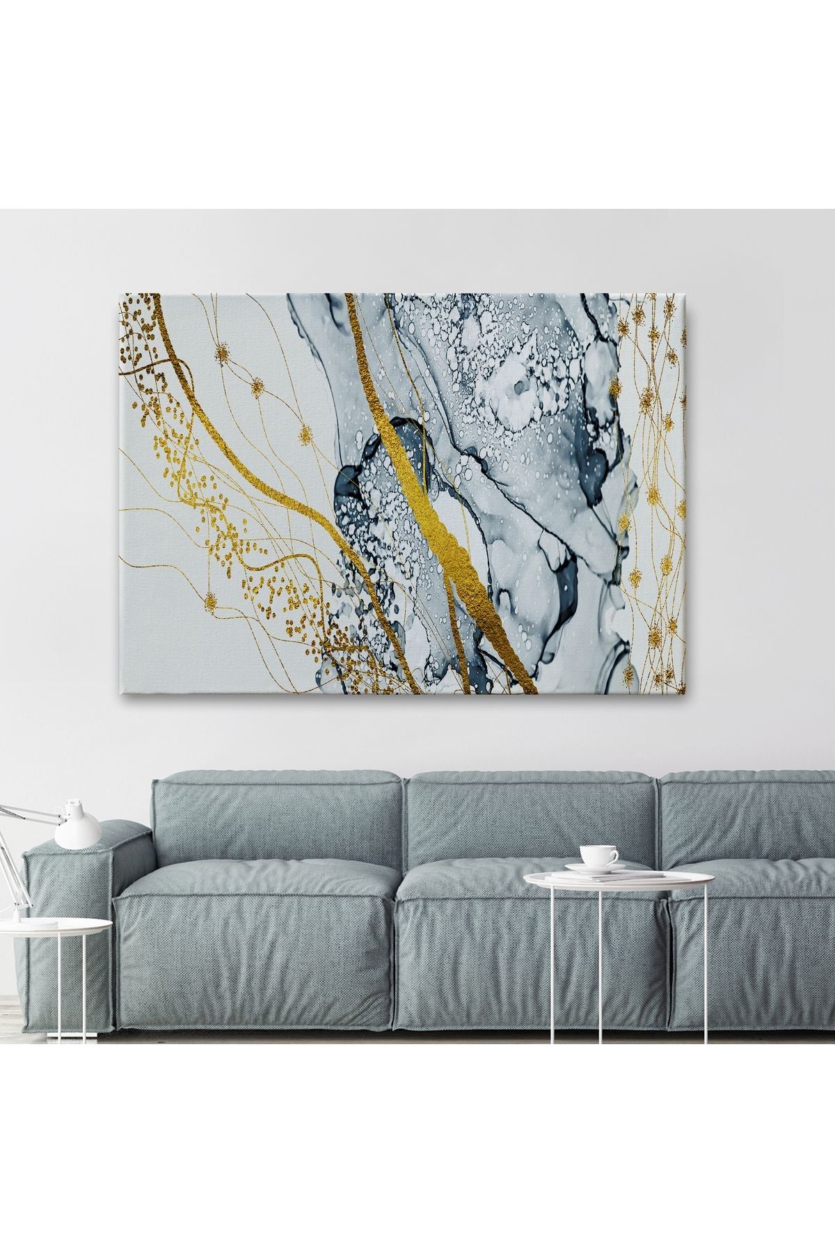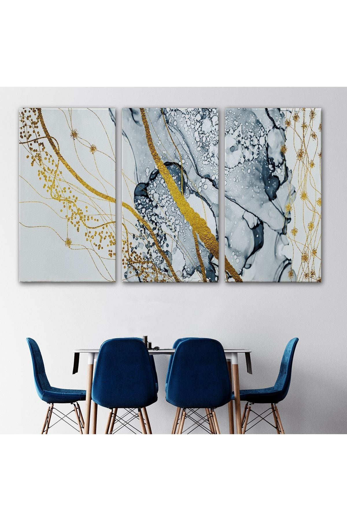 db01shp seri Mavi ve Altın Sarısı Renklerınde Soyut Modern Kanvas Tablo-5033