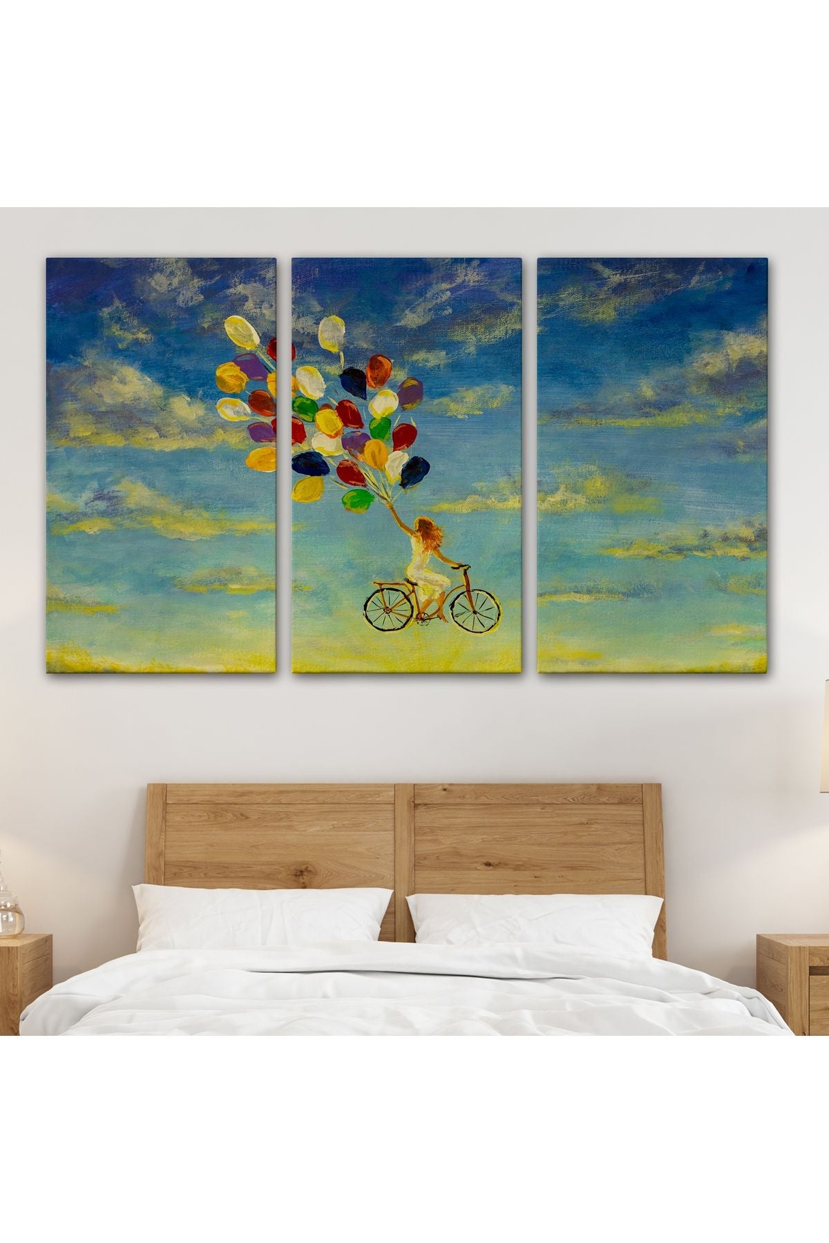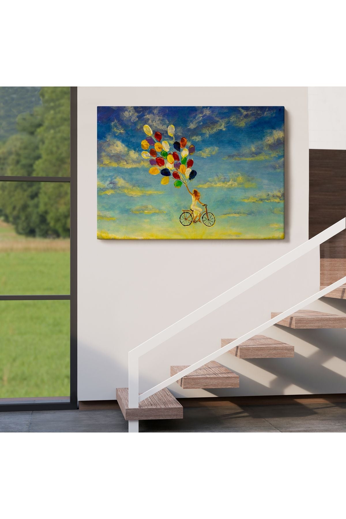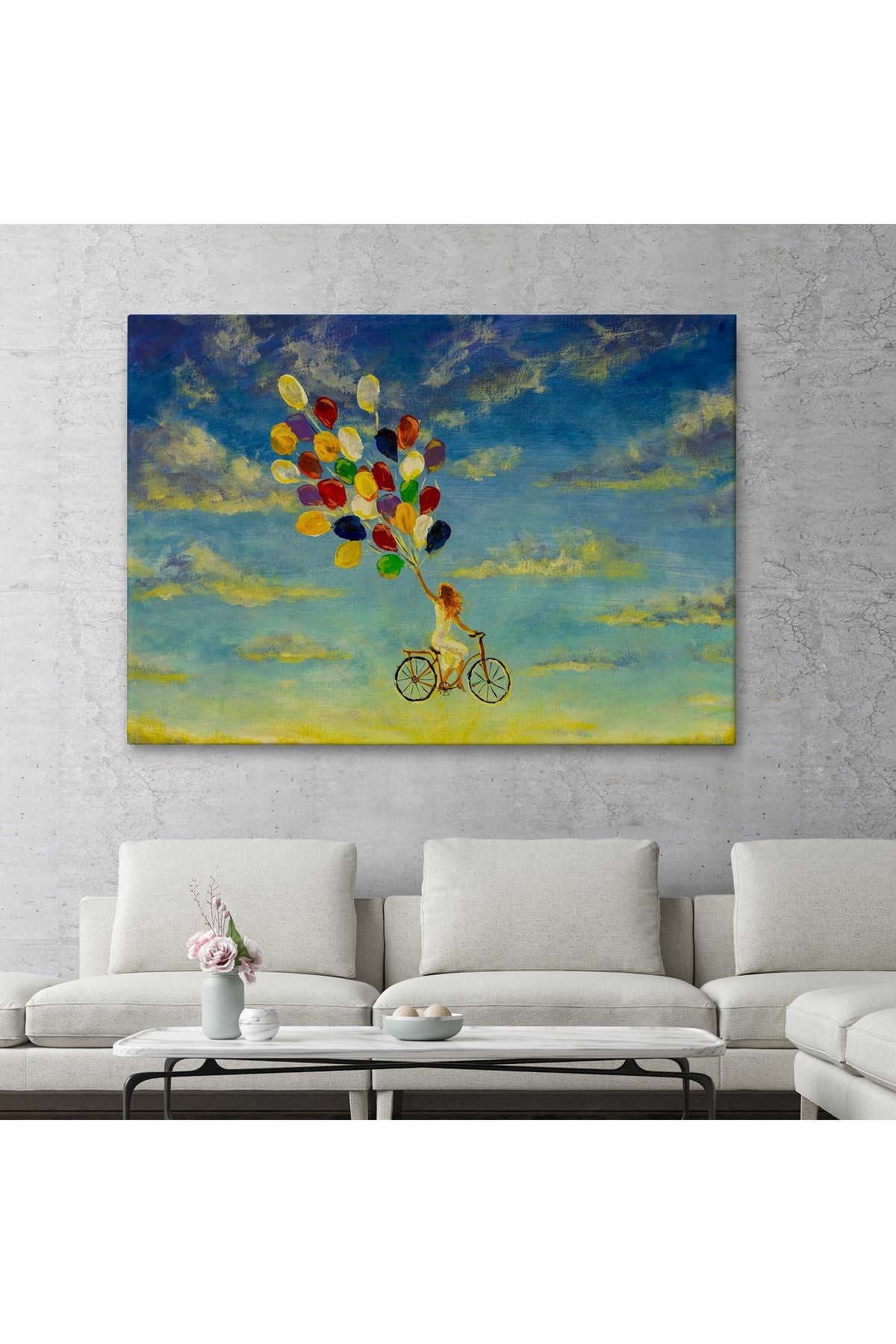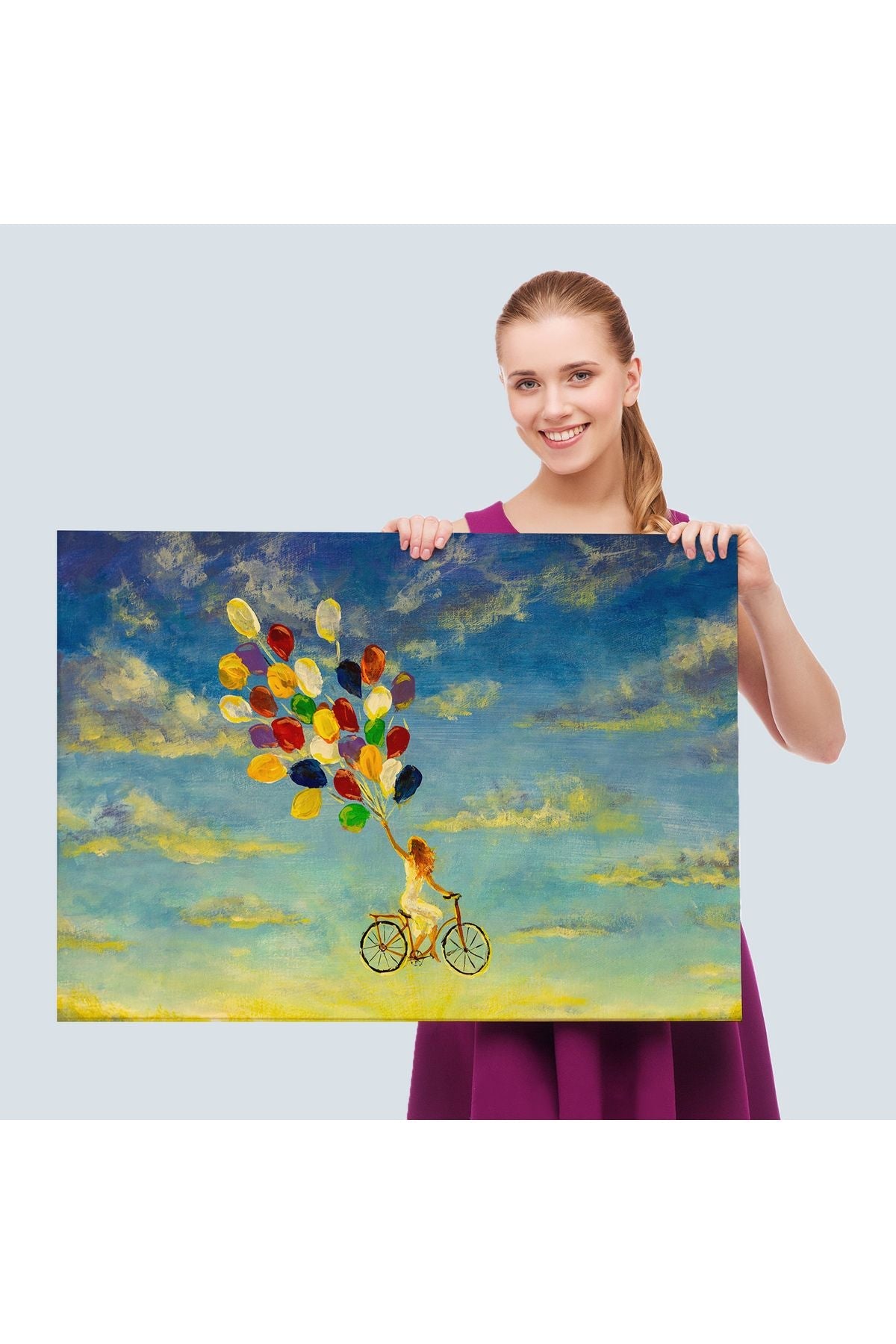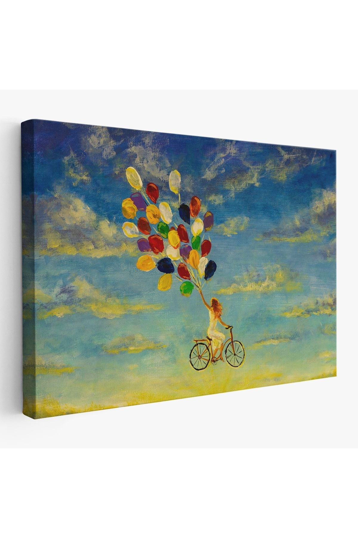 Renkli Balonlar İle Uçan Bisikletli Kız Kanvas Tablo-5036